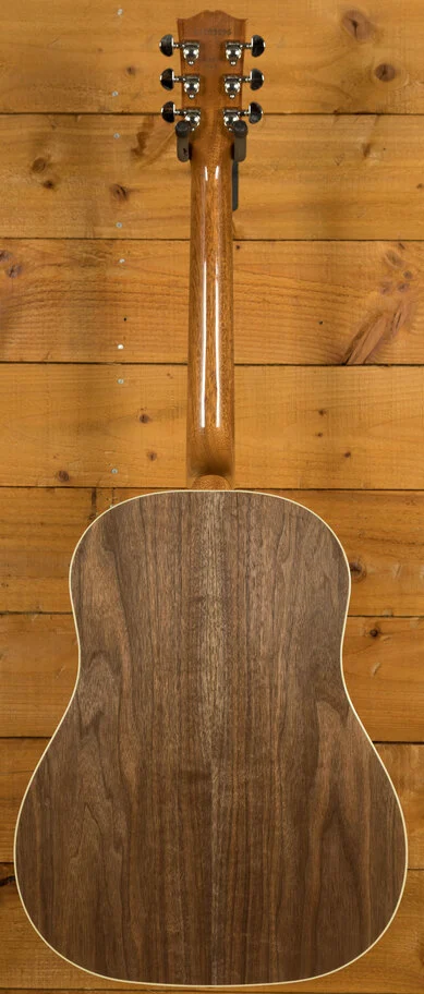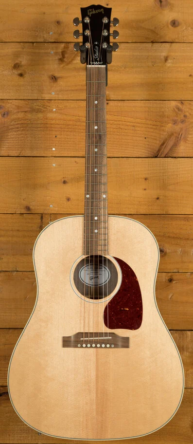 The Gibson J-45 Studio Walnut offers a distinct tonal character and practical features for both studio recording and live performance. This guitar is constructed with solid walnut back and sides, contributing to a warm, resonant sound. The solid Sitka spruce top complements the walnut, adding brightness and clarity to the overall tone. The traditional body depth of the J-45 contributes to its full sound.