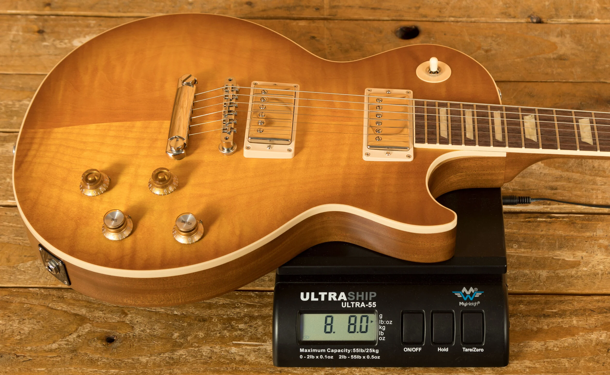 The Mahogany neck is topped with a crisp Rosewood fingerboard with classic Gibson Trapezoid inlays, this guitar looks every bit the real deal. With a 24.75" scale length and a 50s Vintage profile, it retains that classic Les Paul feel. The ABR1 Tune-O-Matic bridge and light weight tailpiece offer an authentic vintage vibe.