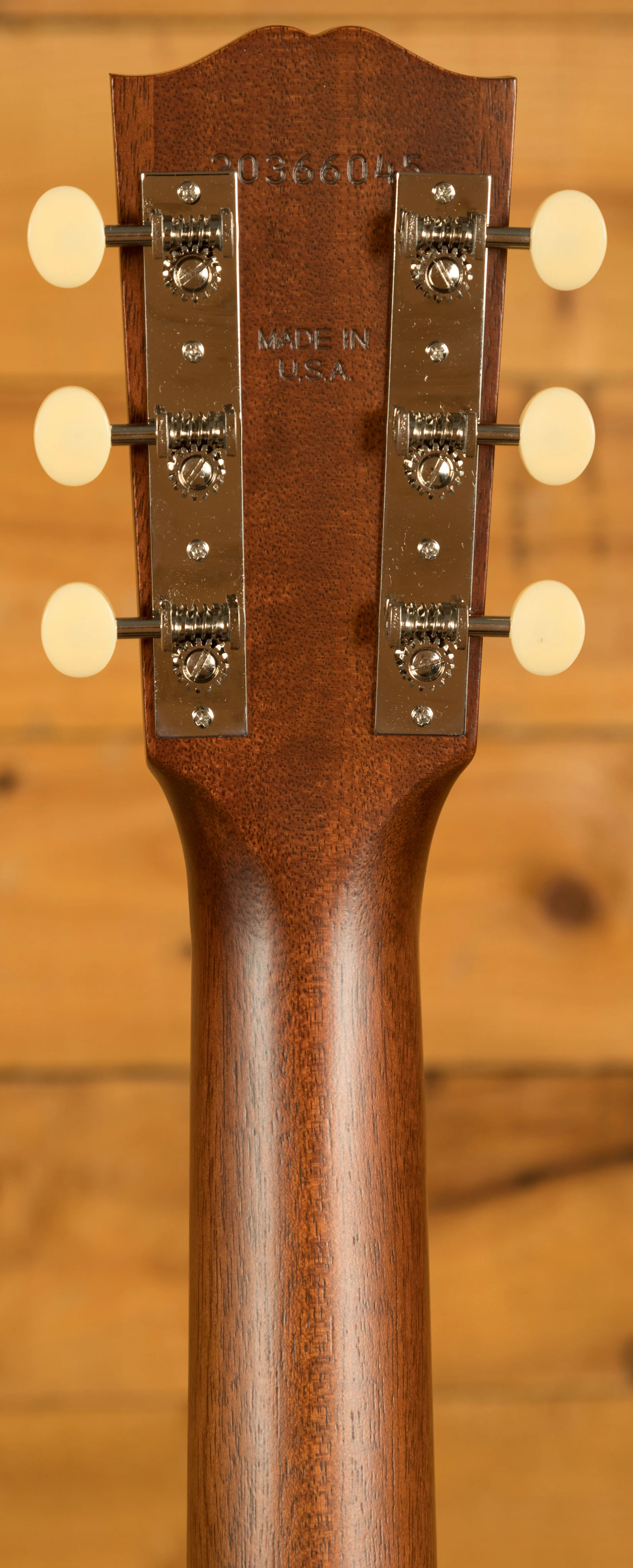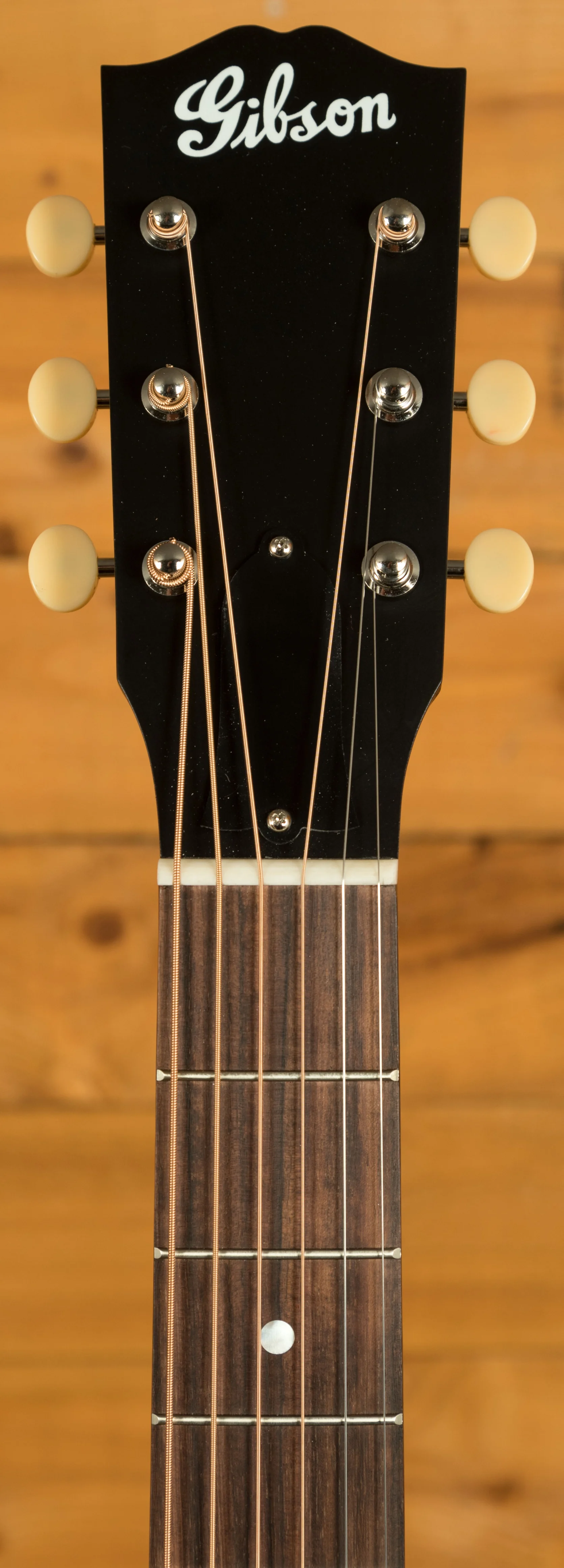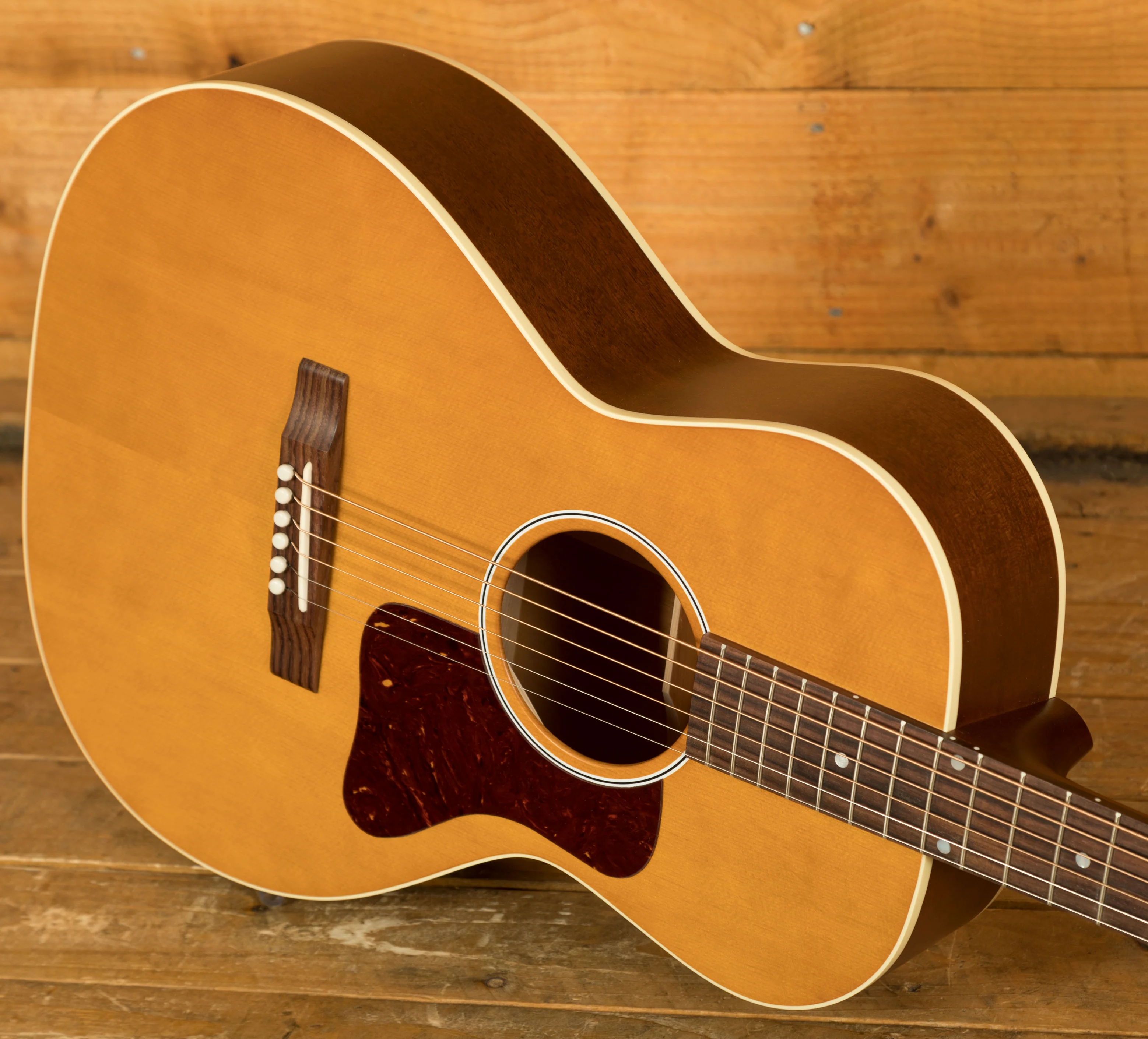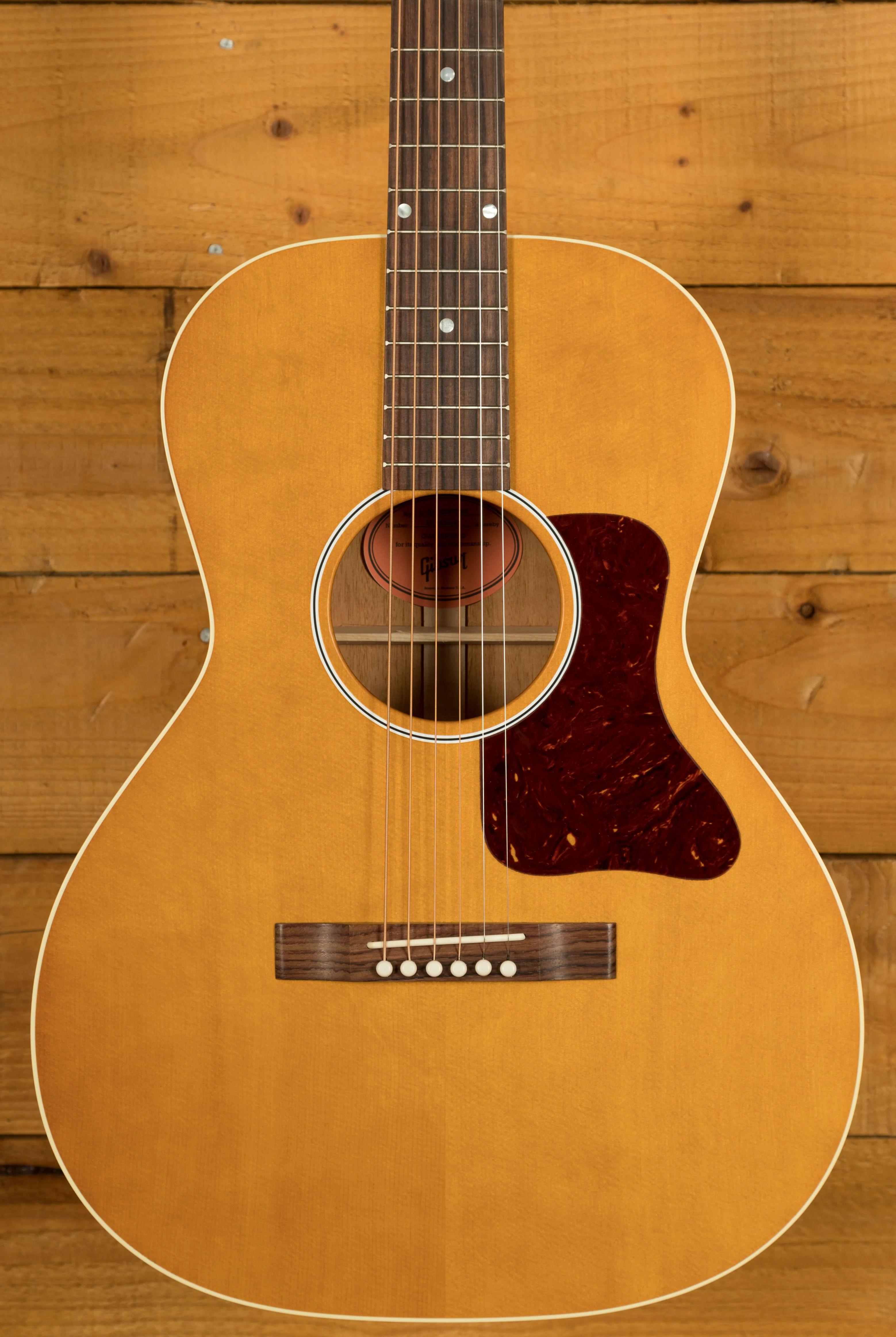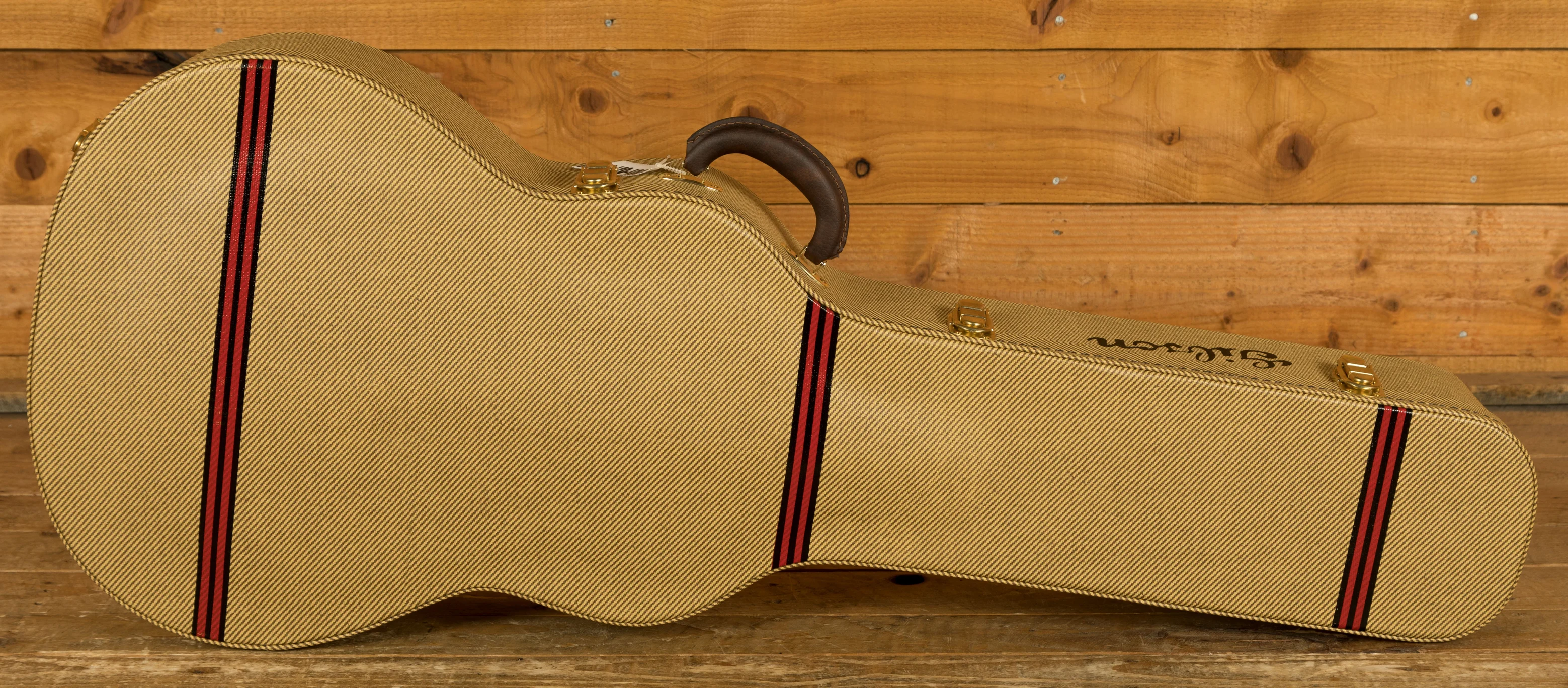 Across this model youve got a bunch of vintage inspired appointments that really make this guitar standout. The headstock features open-back Golden Age strap tuners, alongside an early 1900s-style Gibson script logo. The body also features a sloped-rectangle closed-slot bridge crafted from Rosewood.
