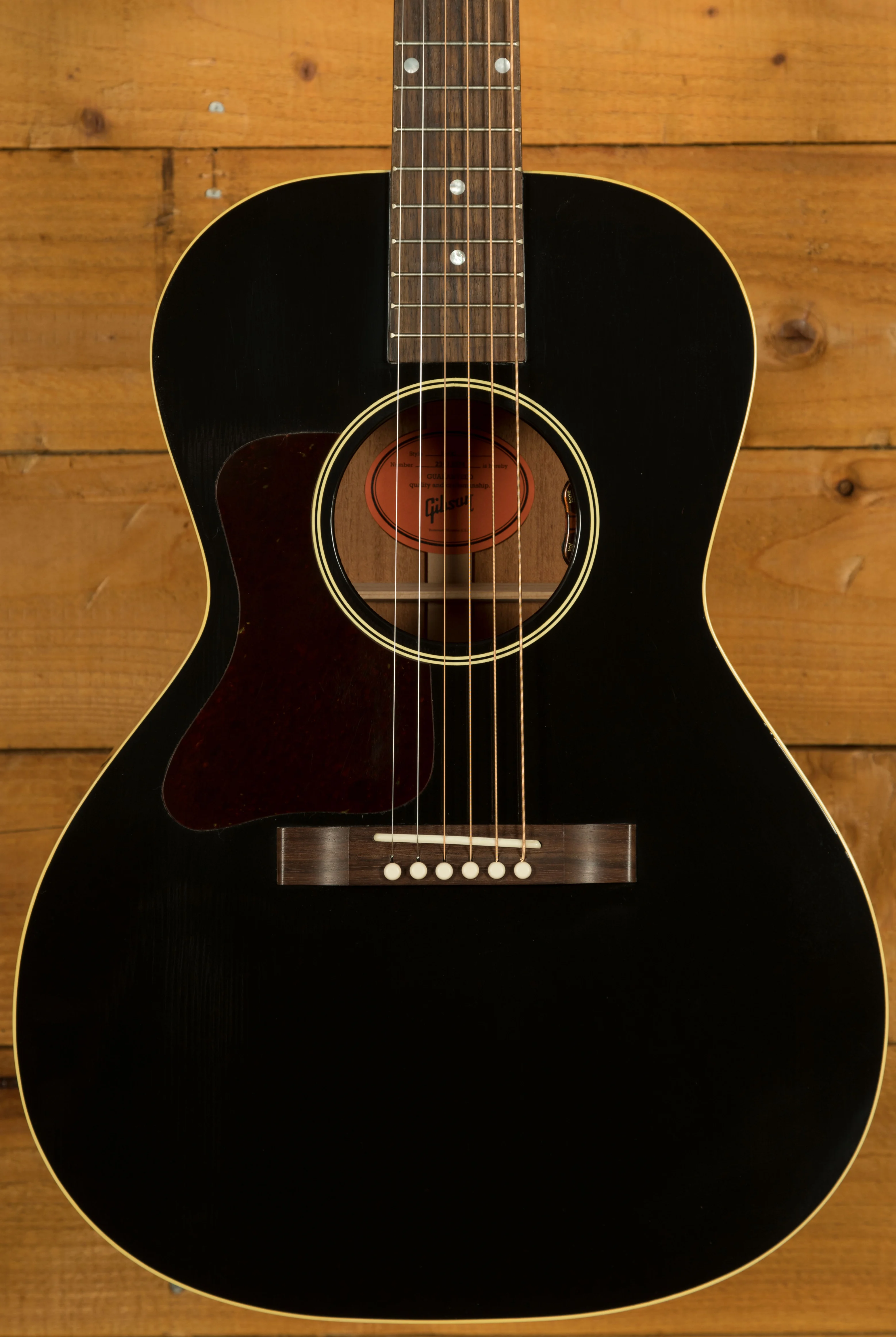 The Gibson L-OO features a Mahogany back and sides and fuses it with the tonal quality of Sitka Spruce. With an organic and beautifully balanced tone, Sitka Spruce offers plenty of mids and great harmonic overtones. Finished in a super slick Ebony with a dark torty pickguard. This L-00 looks the real deal.
