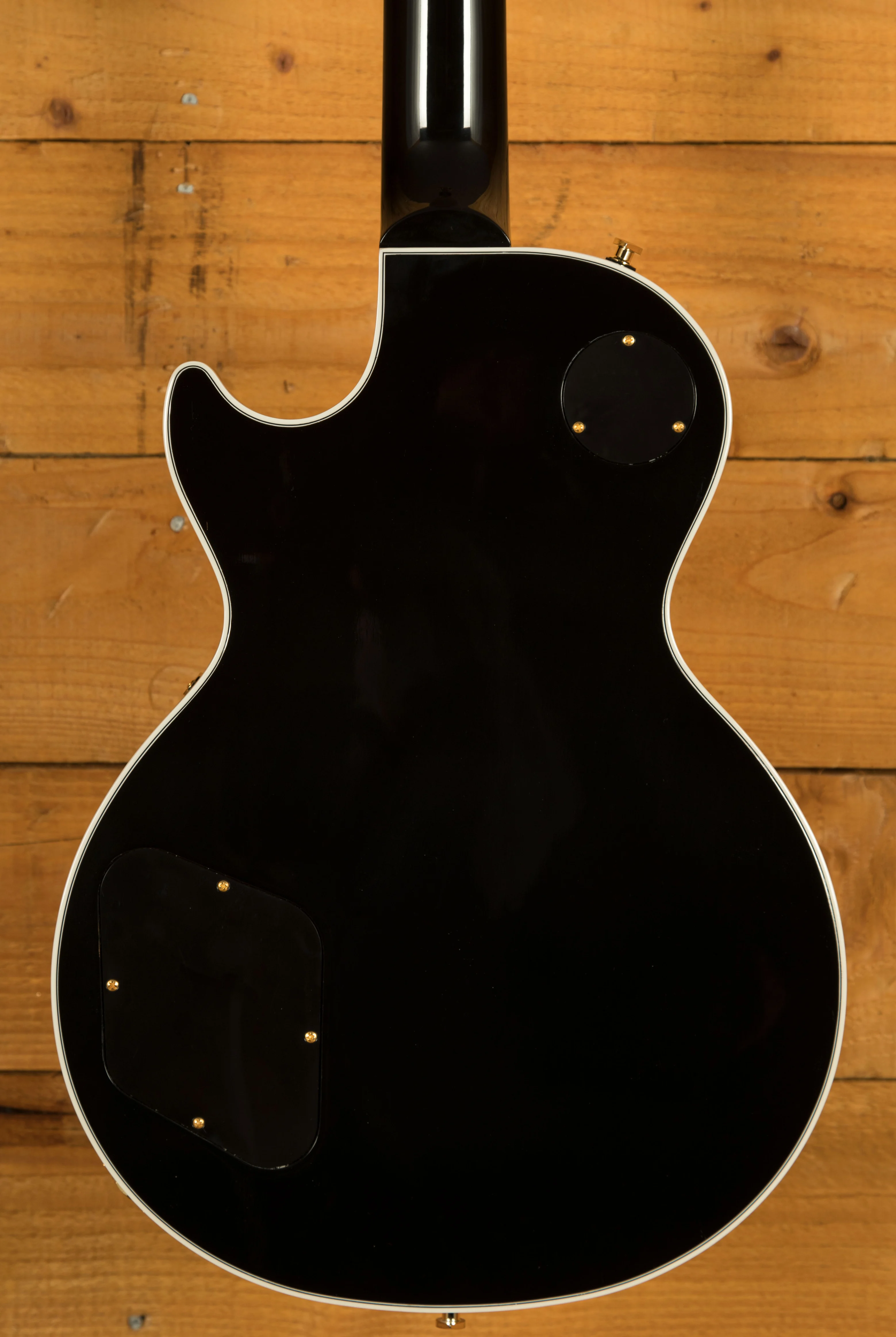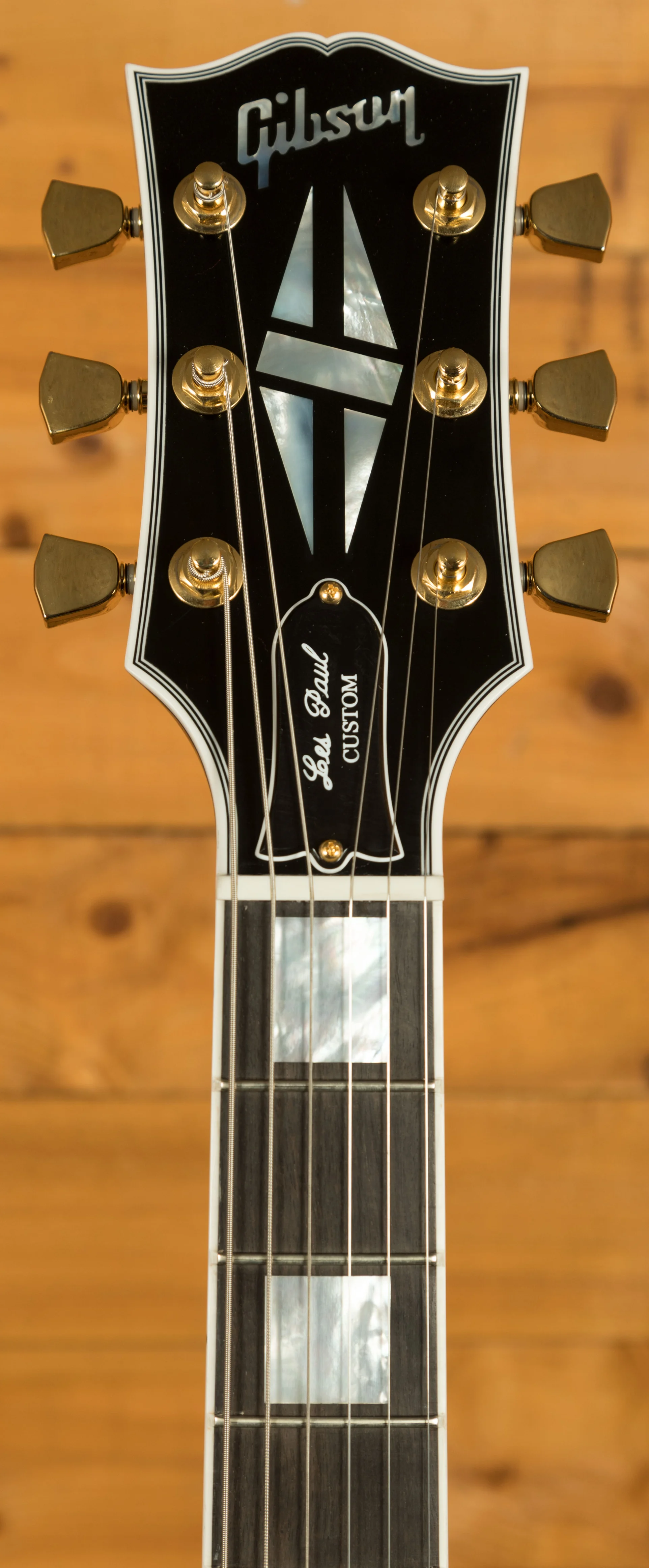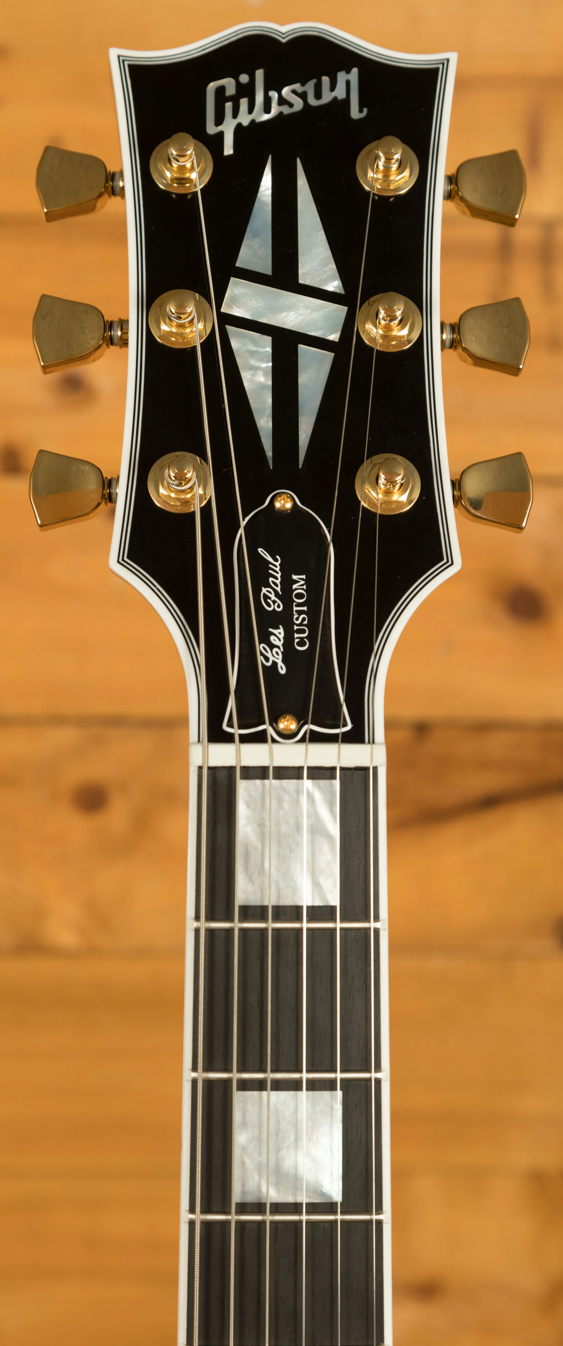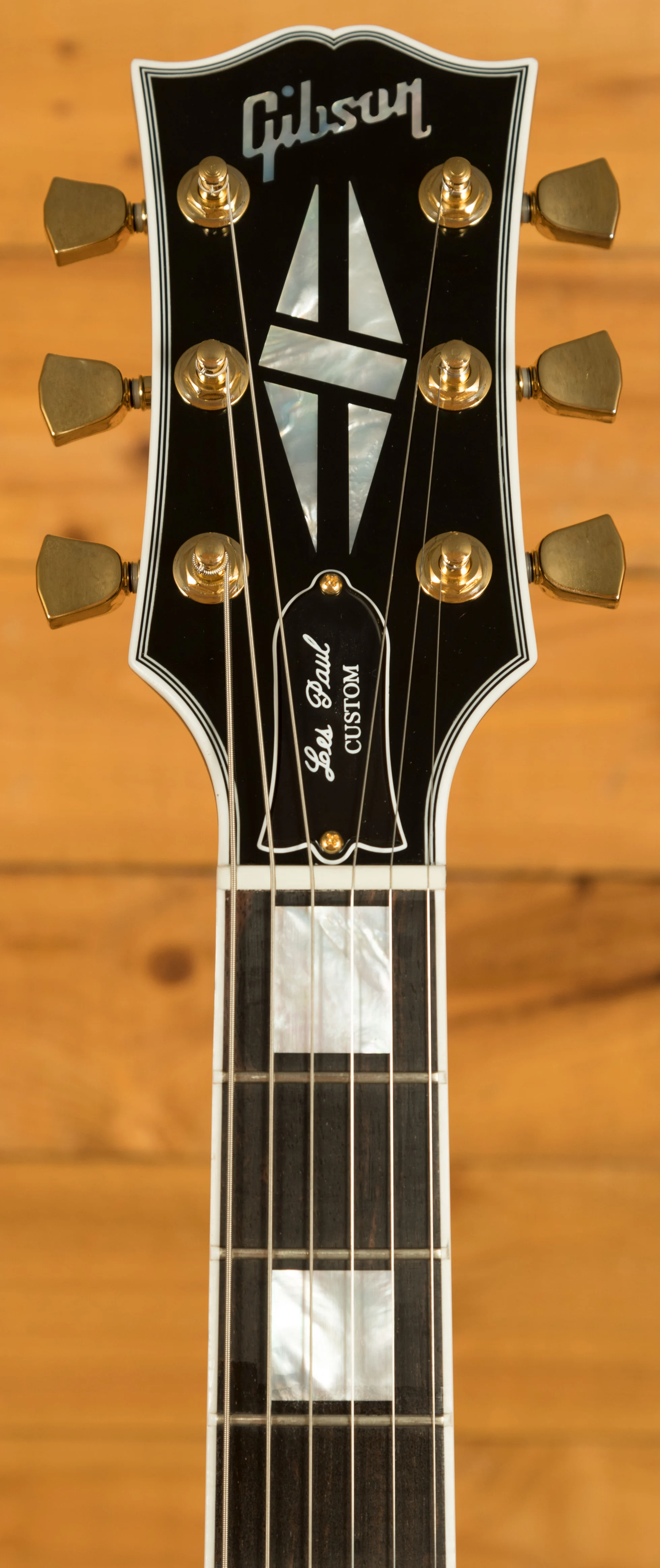 The Maple neck features a 70s-style profile with a volute and is paired with a bound Ebony fretboard, complete with 22 medium jumbo frets, a 24.75” scale length, a 1.695” nut width, and mother-of-pearl block inlays. The bound headstock is decorated with mother-of-pearl, showcasing the iconic Custom Split Diamond inlay. First seen on the Gibson Super 400, this design has since become a defining hallmark of the Les Paul Custom.