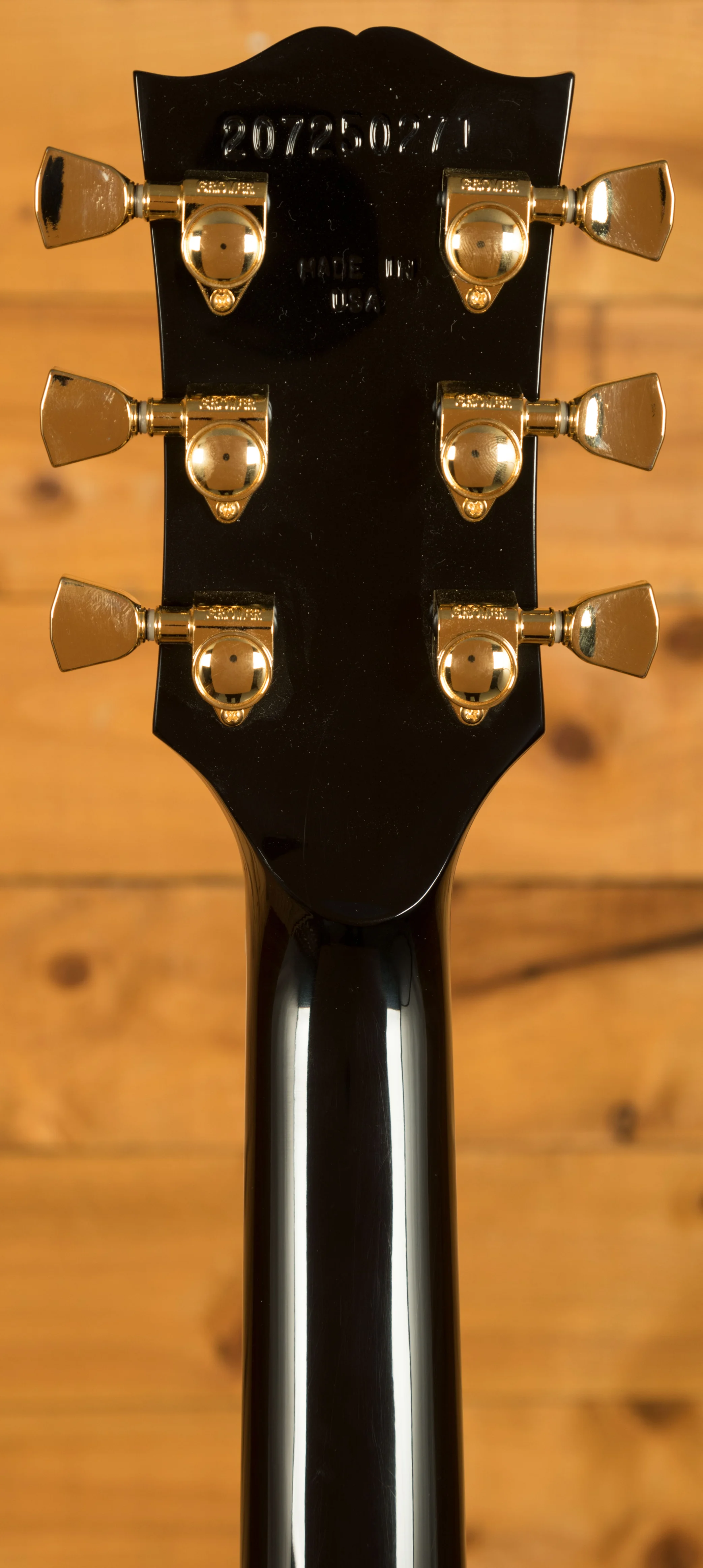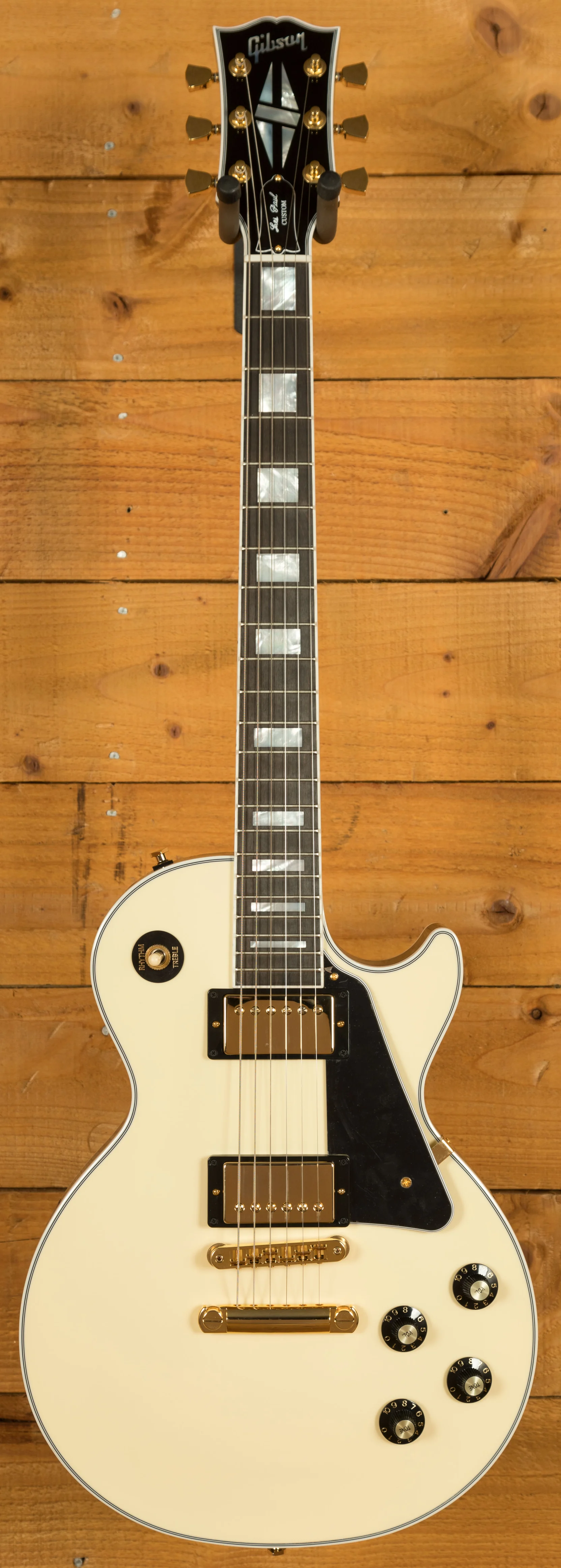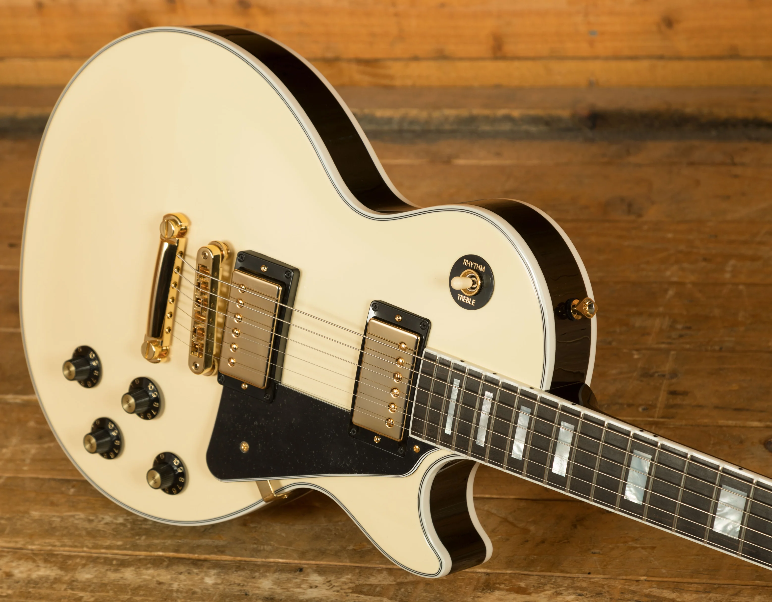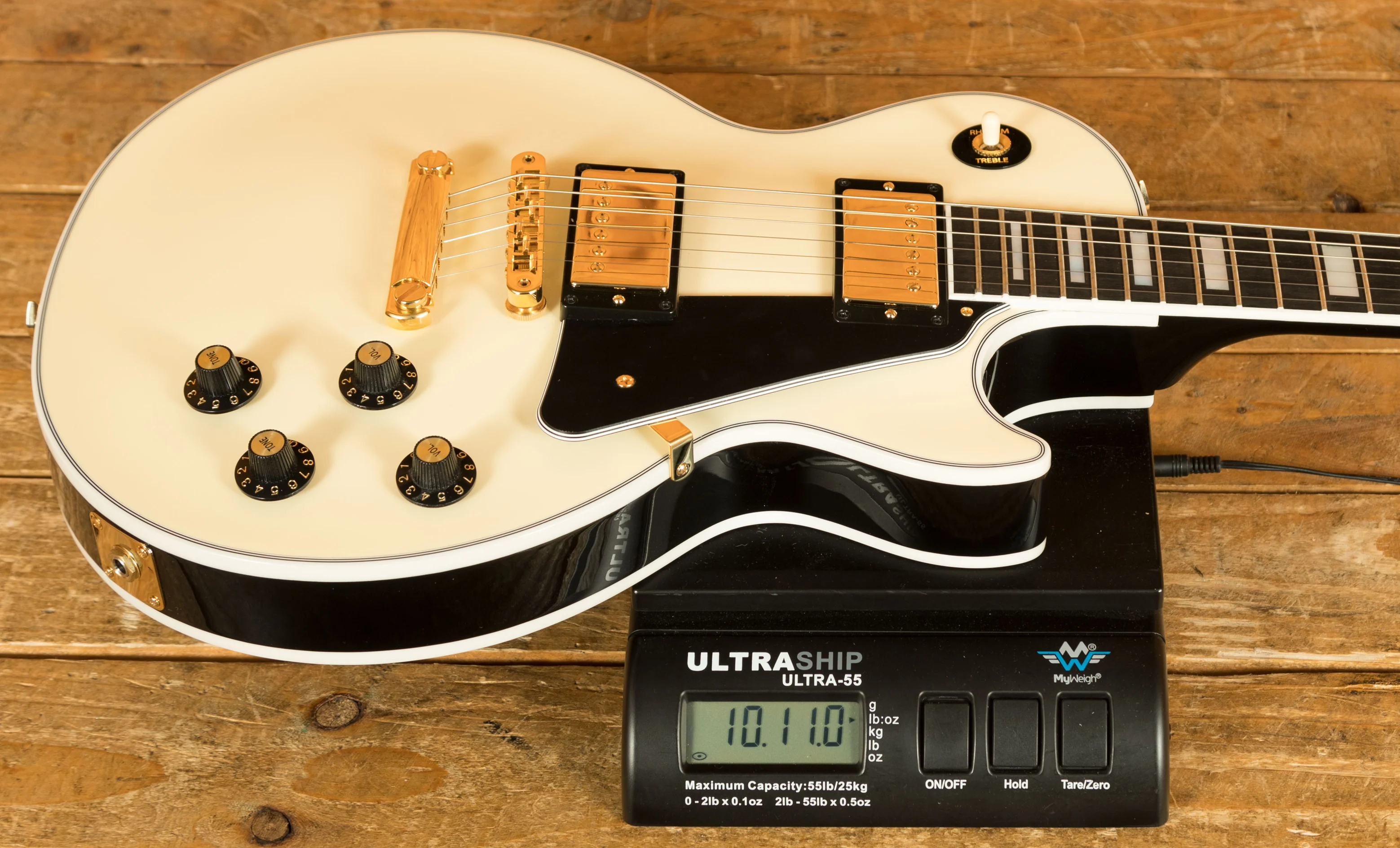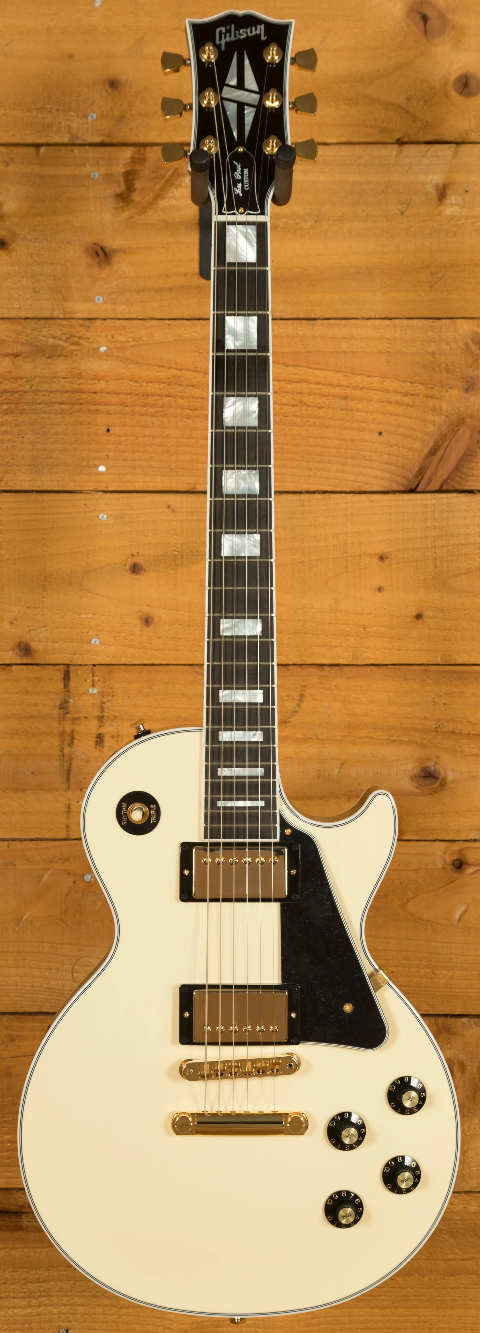 The Maple neck features a 70s-style profile with a volute and is paired with a bound Ebony fretboard, complete with 22 medium jumbo frets, a 24.75” scale length, a 1.695” nut width, and mother-of-pearl block inlays. The bound headstock is decorated with mother-of-pearl, showcasing the iconic Custom Split Diamond inlay. First seen on the Gibson Super 400, this design has since become a defining hallmark of the Les Paul Custom.