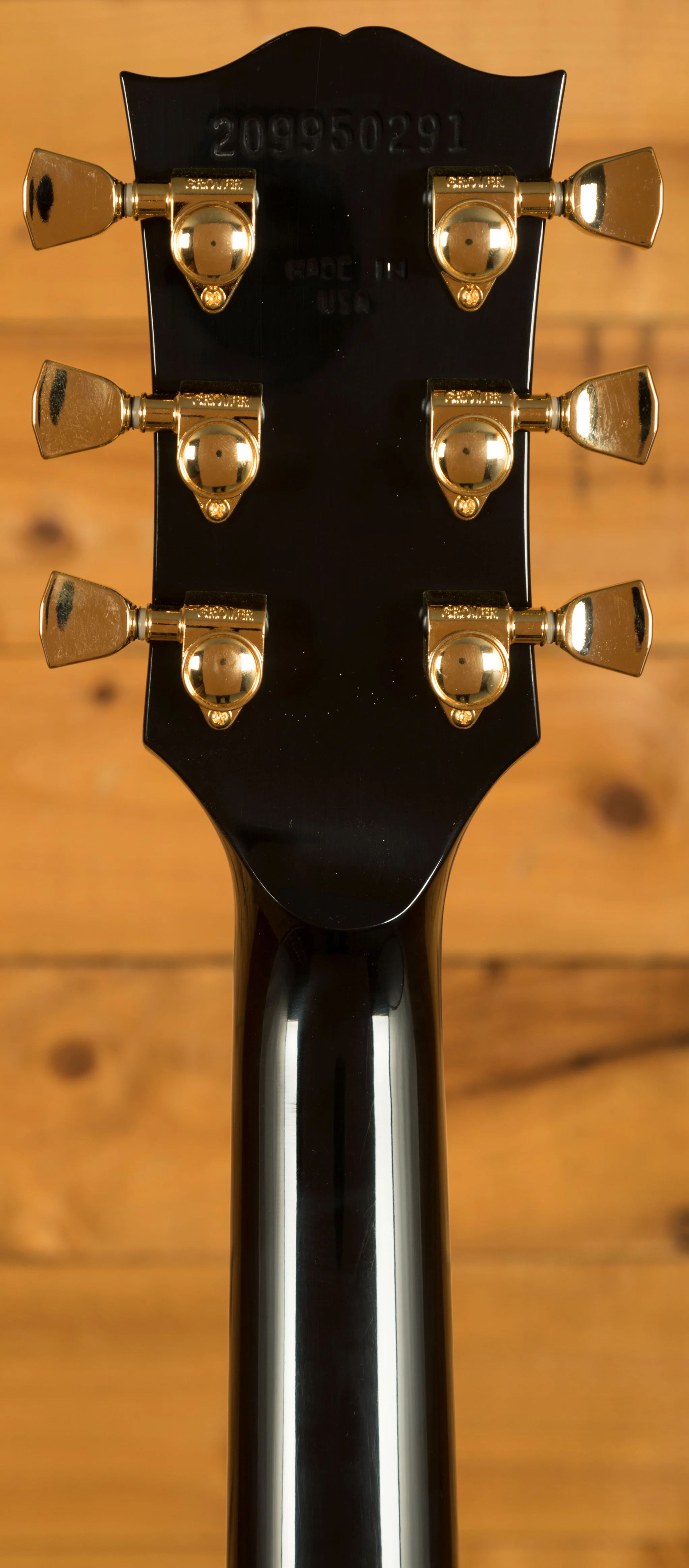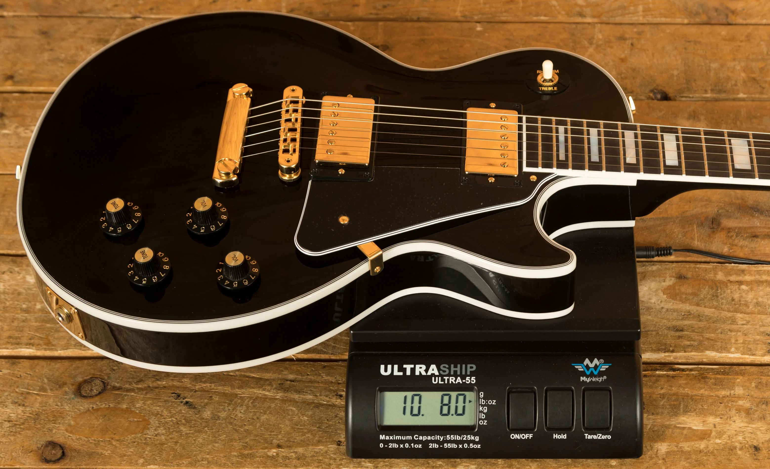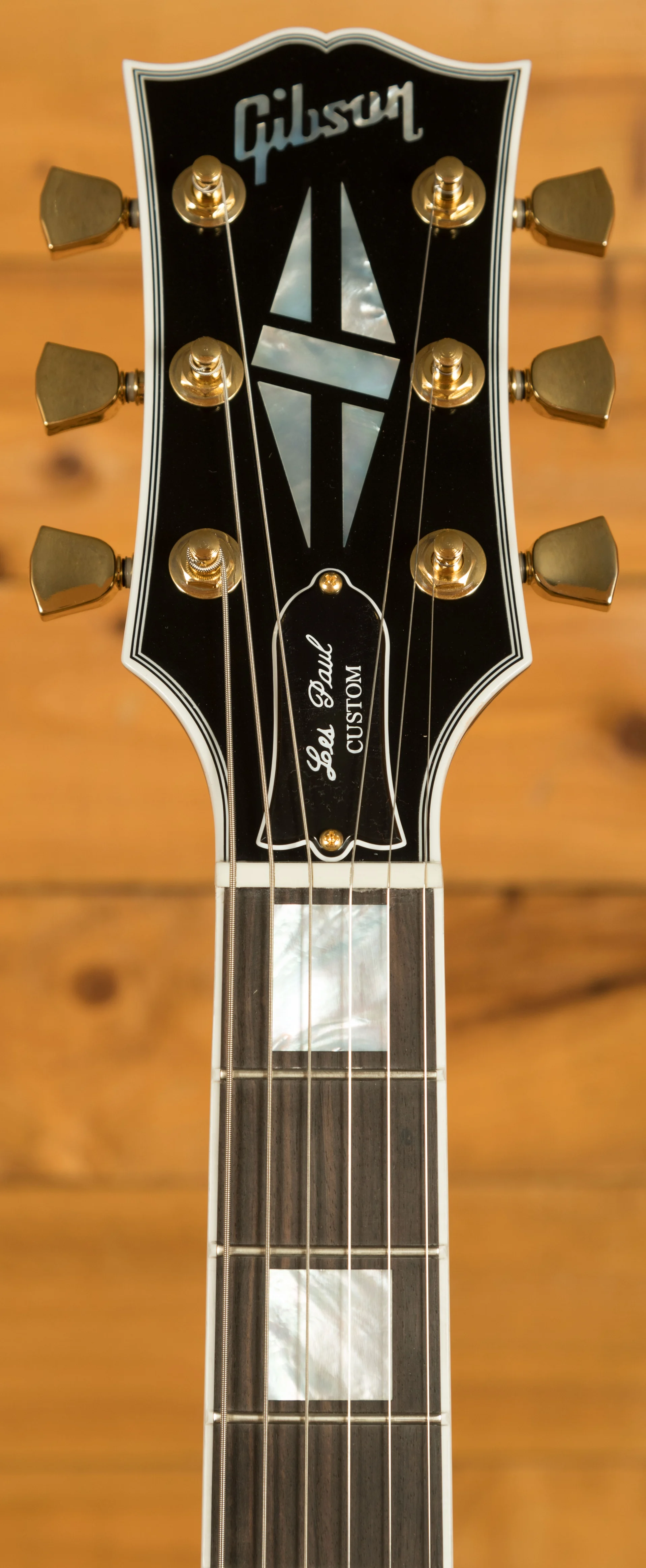 The Maple neck features a 70s-style profile with a volute and is paired with a bound Ebony fretboard, complete with 22 medium jumbo frets, a 24.75” scale length, a 1.695” nut width, and mother-of-pearl block inlays. The bound headstock is decorated with mother-of-pearl, showcasing the iconic Custom Split Diamond inlay. First seen on the Gibson Super 400, this design has since become a defining hallmark of the Les Paul Custom.