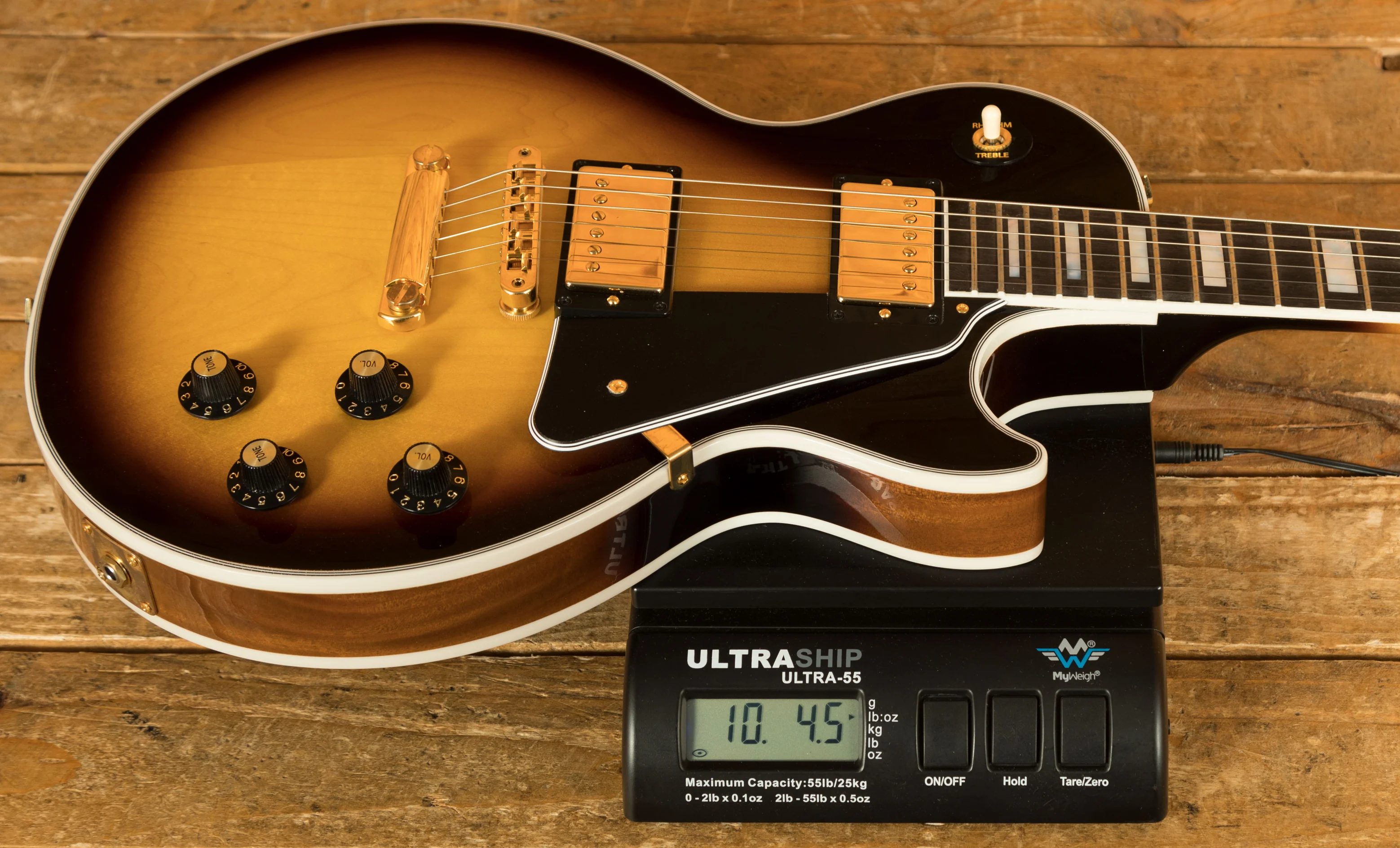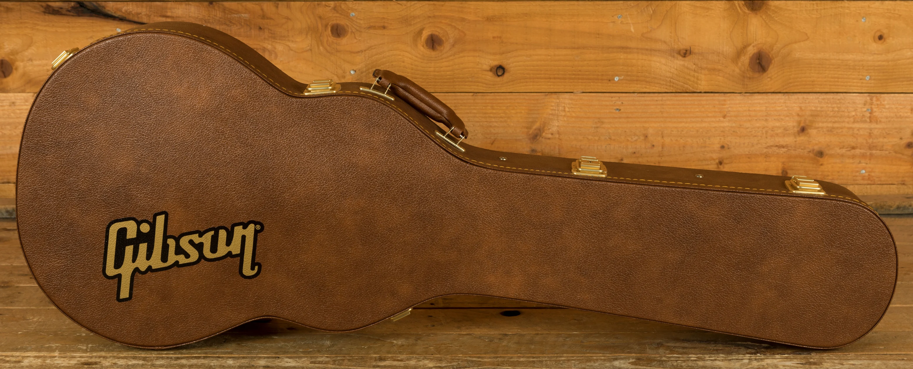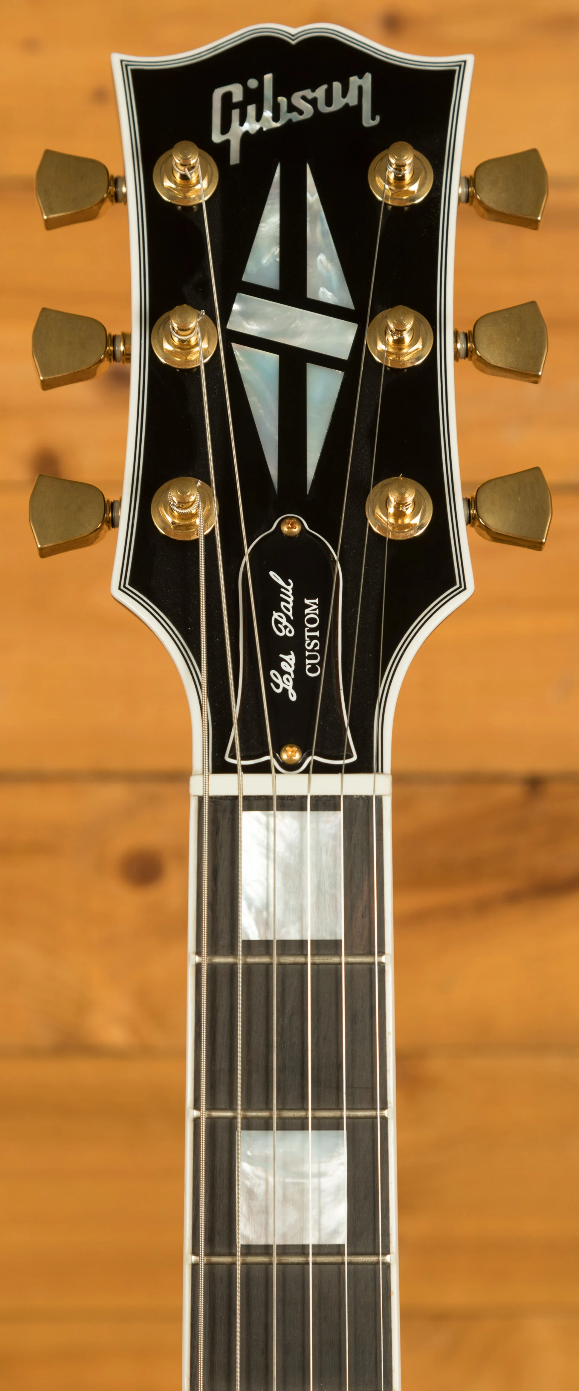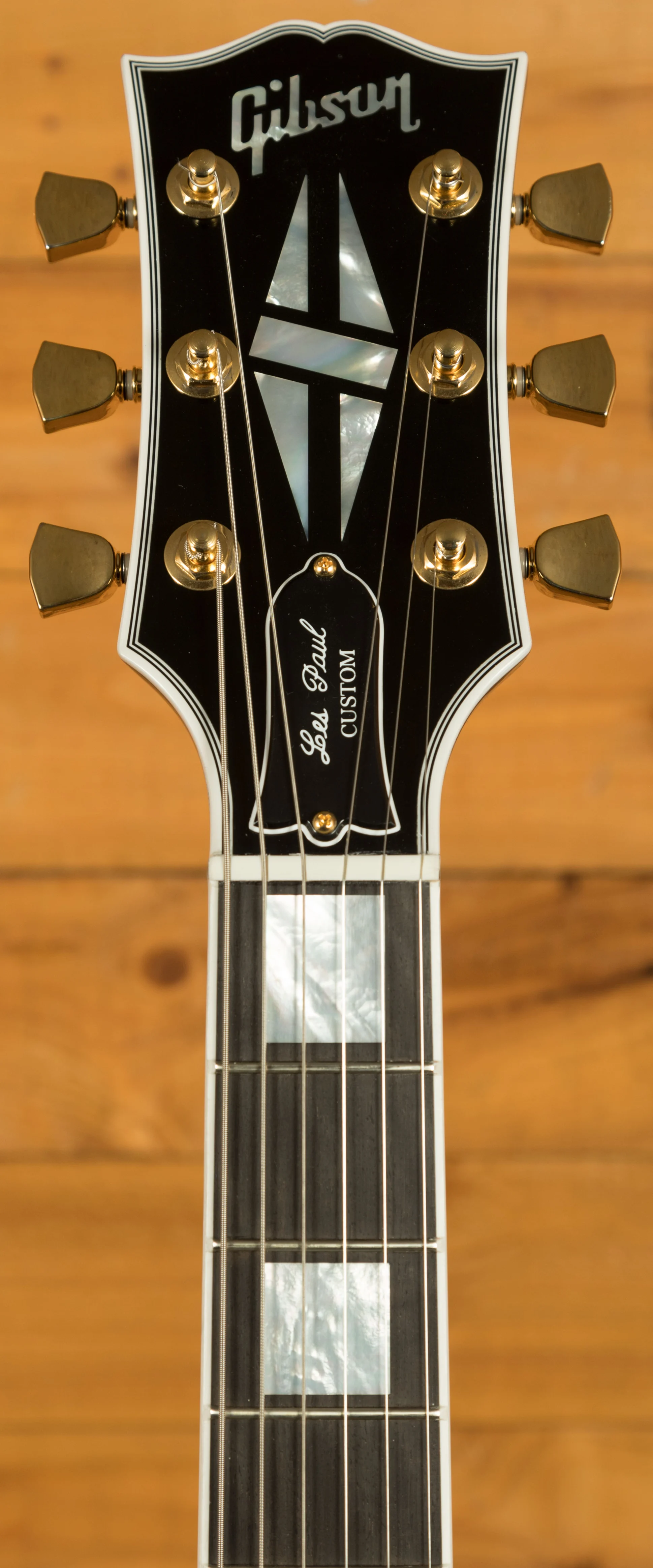 The Maple neck features a 70s-style profile with a volute and is paired with a bound Ebony fretboard, complete with 22 medium jumbo frets, a 24.75” scale length, a 1.695” nut width, and mother-of-pearl block inlays. The bound headstock is decorated with mother-of-pearl, showcasing the iconic Custom Split Diamond inlay. First seen on the Gibson Super 400, this design has since become a defining hallmark of the Les Paul Custom.