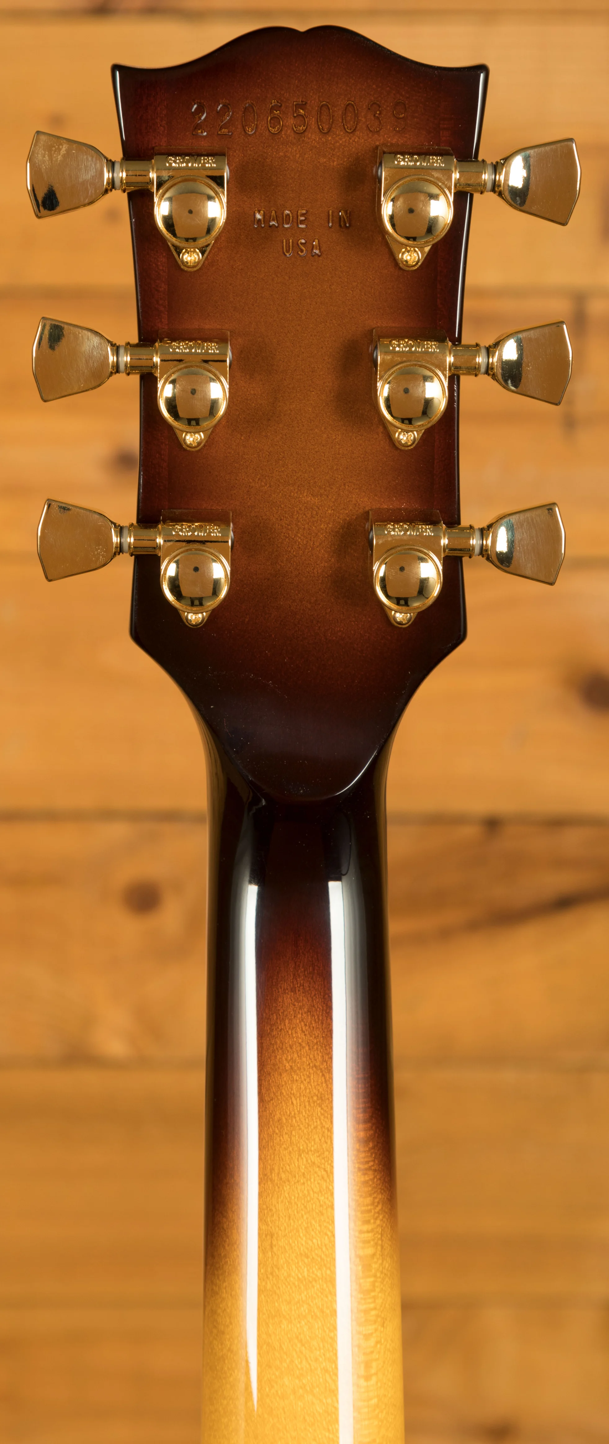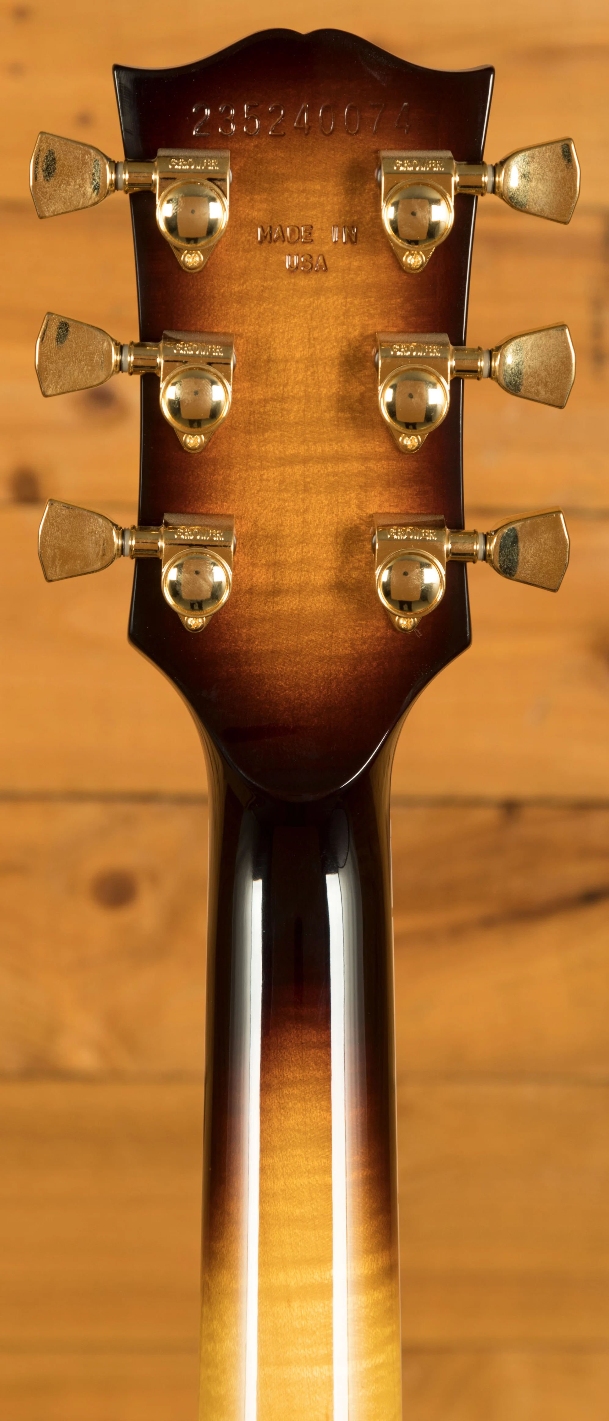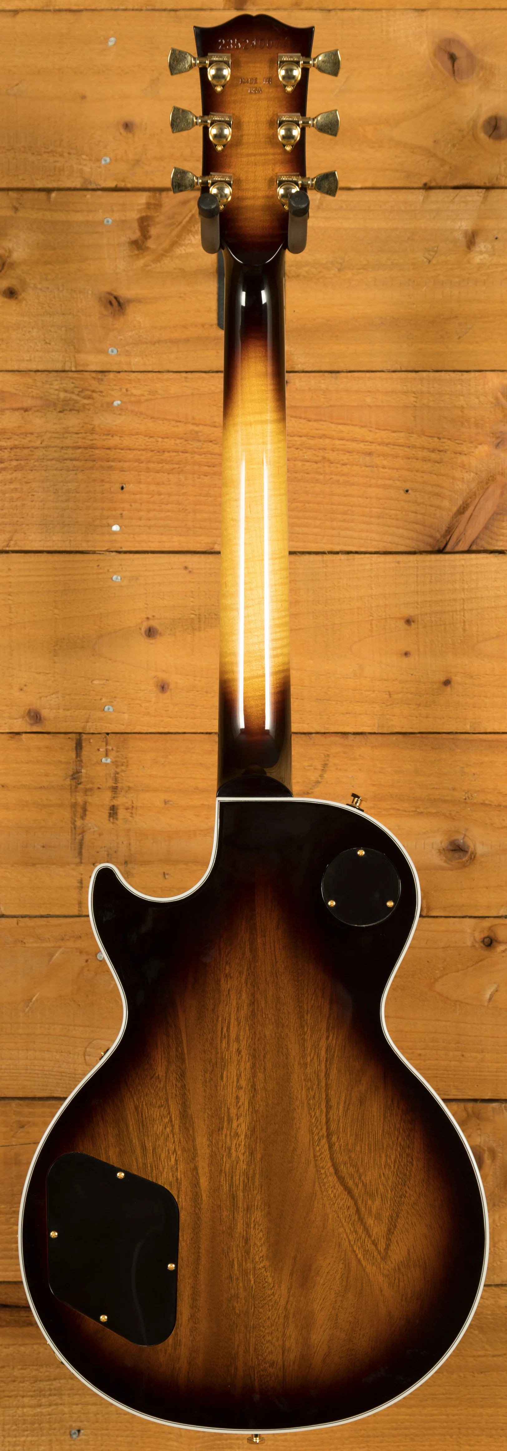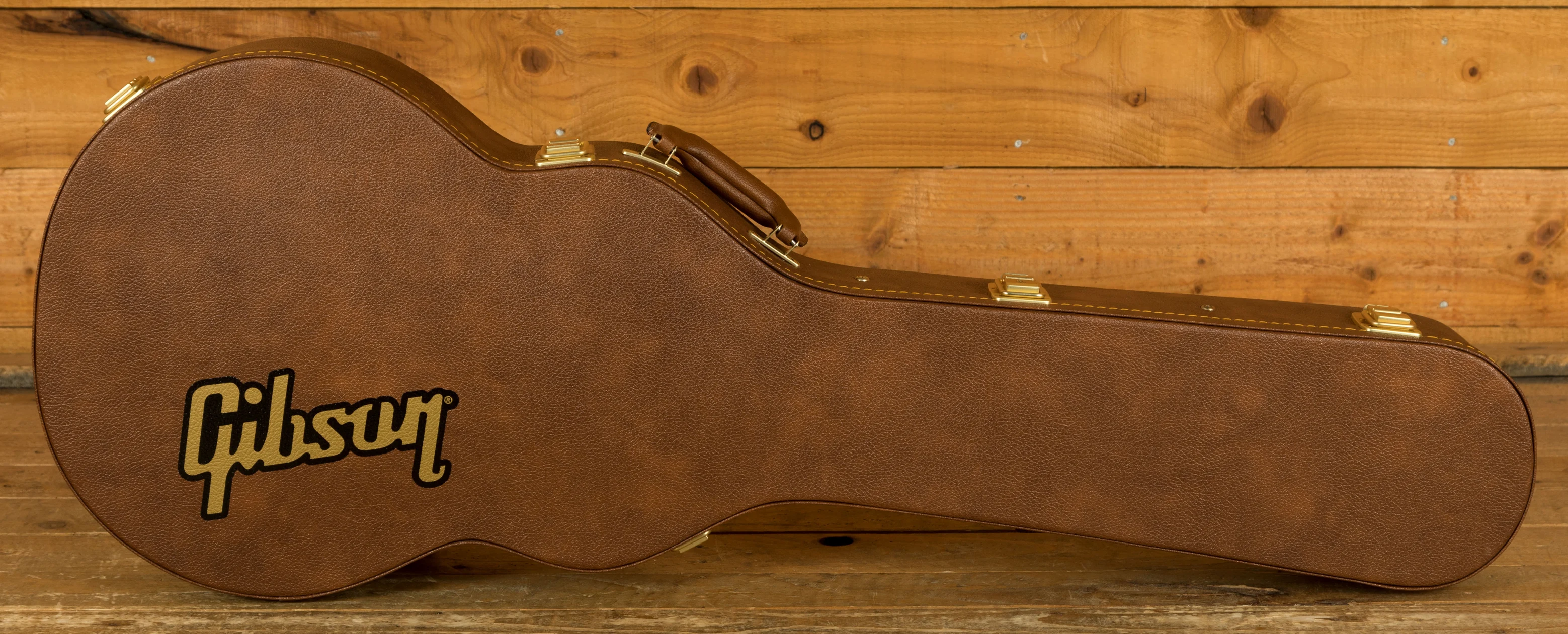 The Maple neck features a 70s-style profile with a volute and is paired with a bound Ebony fretboard, complete with 22 medium jumbo frets, a 24.75” scale length, a 1.695” nut width, and mother-of-pearl block inlays. The bound headstock is decorated with mother-of-pearl, showcasing the iconic Custom Split Diamond inlay. First seen on the Gibson Super 400, this design has since become a defining hallmark of the Les Paul Custom.