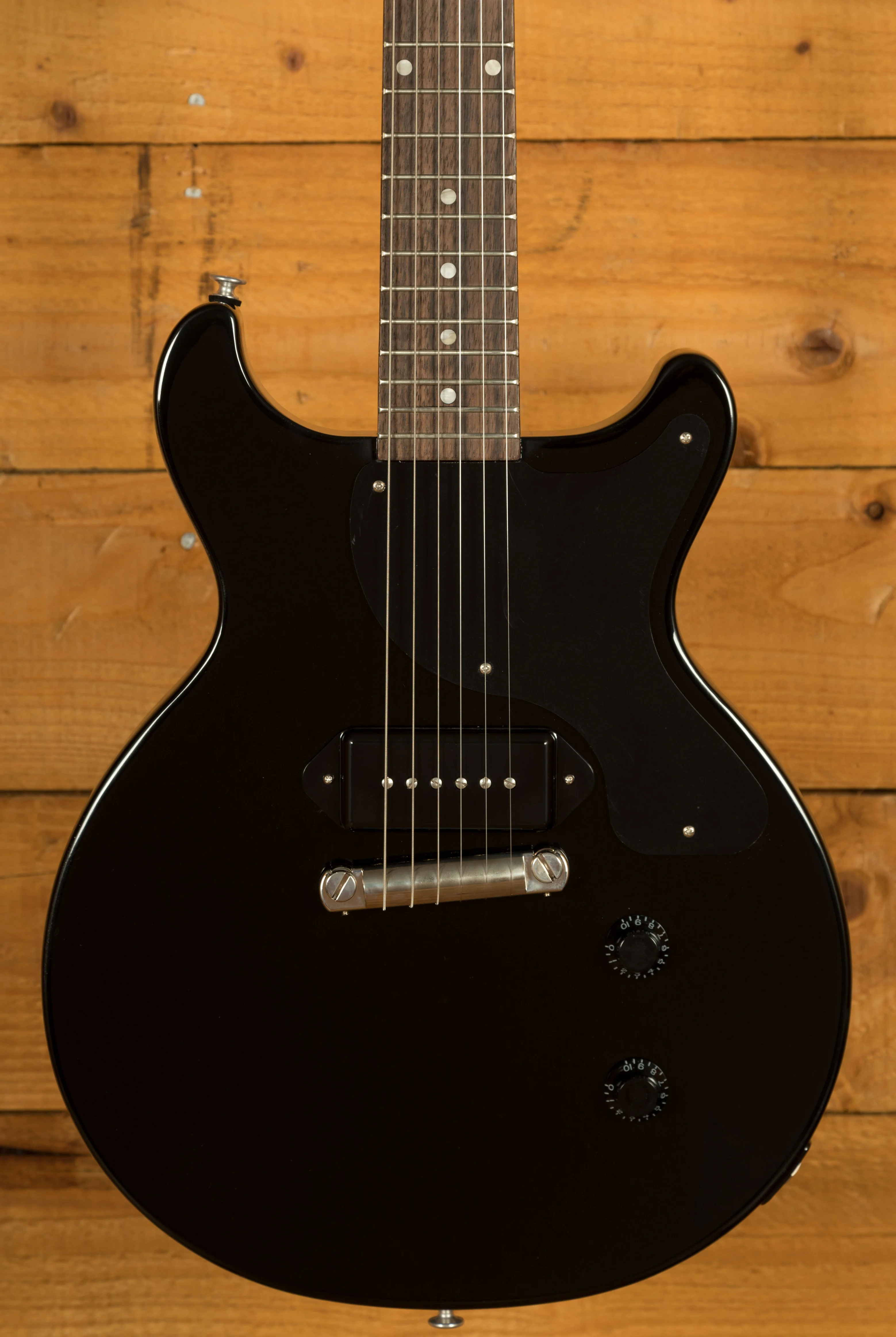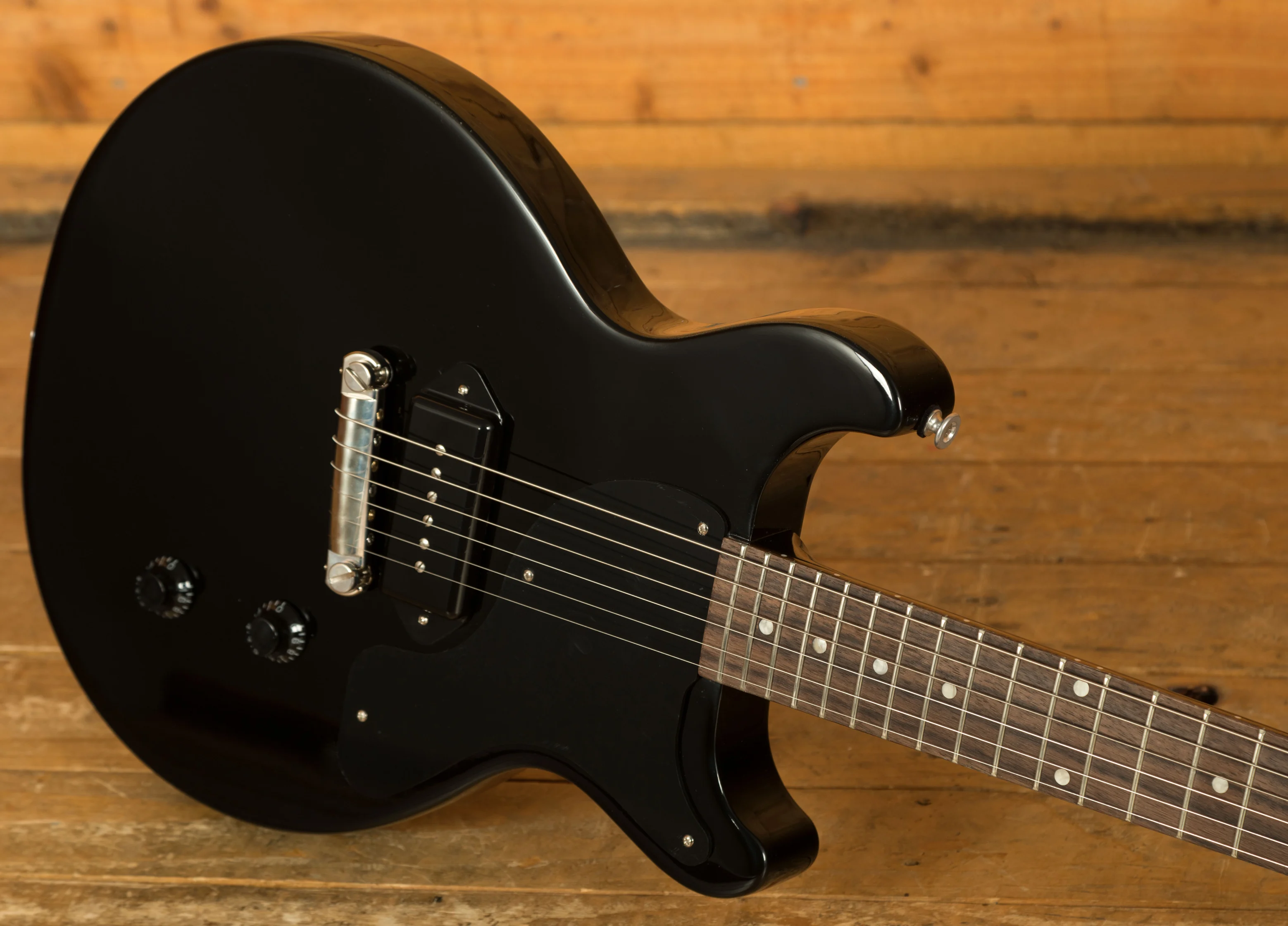 A single Dogear P90 pickup in the bridge position gives the Les Paul Junior Double Cut its signature voice. It can move easily from bright and clear to raw and gritty with just a twist of the volume control, delivering a wide range of character from one simple setup. A single tone control with an Orange Drop capacitor adds even more flexibility, letting you fine tune your sound without losing that classic P90 bite.