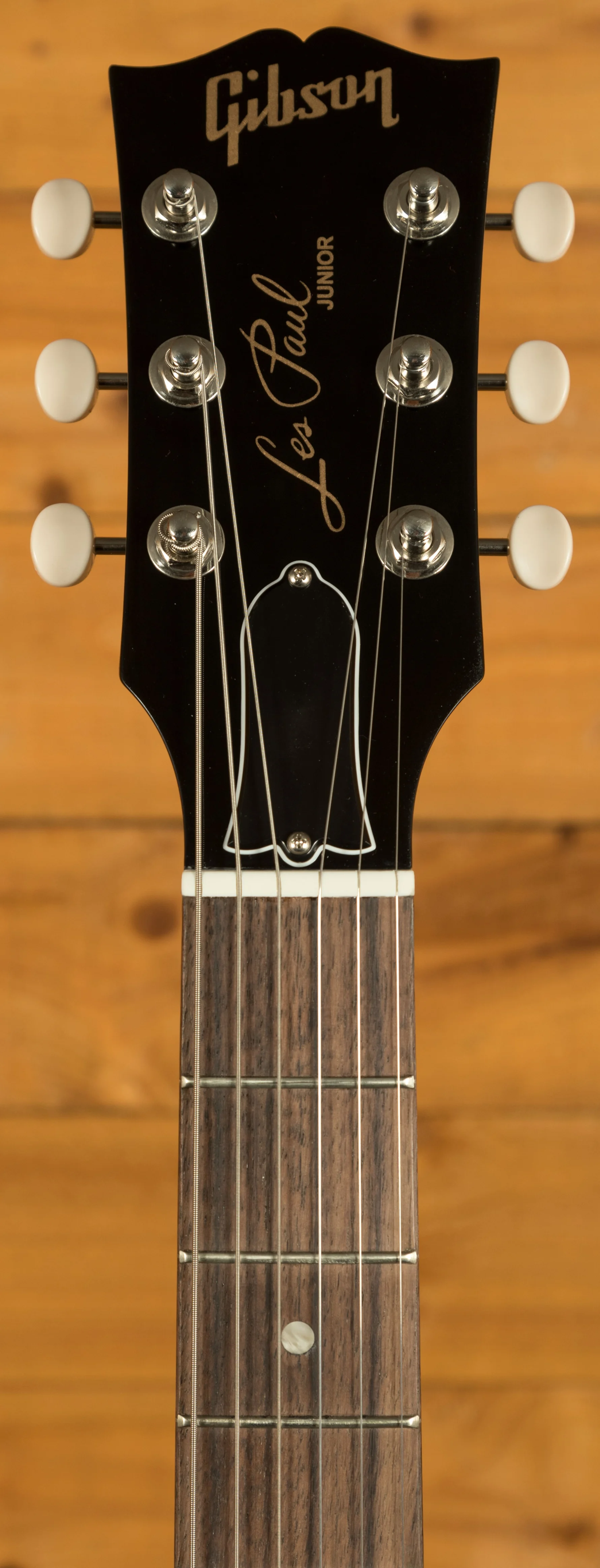 The Les Paul Junior Double Cut features a solid mahogany neck with the classic SlimTaper profile, a key part of what gives this model its fast, comfortable feel. It sits naturally in the hand and allows effortless movement across the fingerboard, whether you are playing rhythm or lead. The rosewood fingerboard has a 24.75 inch scale length, a 43 mm nut width, 22 frets and simple acrylic dot inlays for a traditional look. At the headstock, Gibson Vintage Deluxe tuners with white buttons work with a Graph Tech nut to ensure smooth and stable tuning. The wraparound bridge and tailpiece mount directly to the mahogany body, providing excellent resonance, sustain and the unmistakable tone that the Les Paul Junior Double Cut is celebrated for.