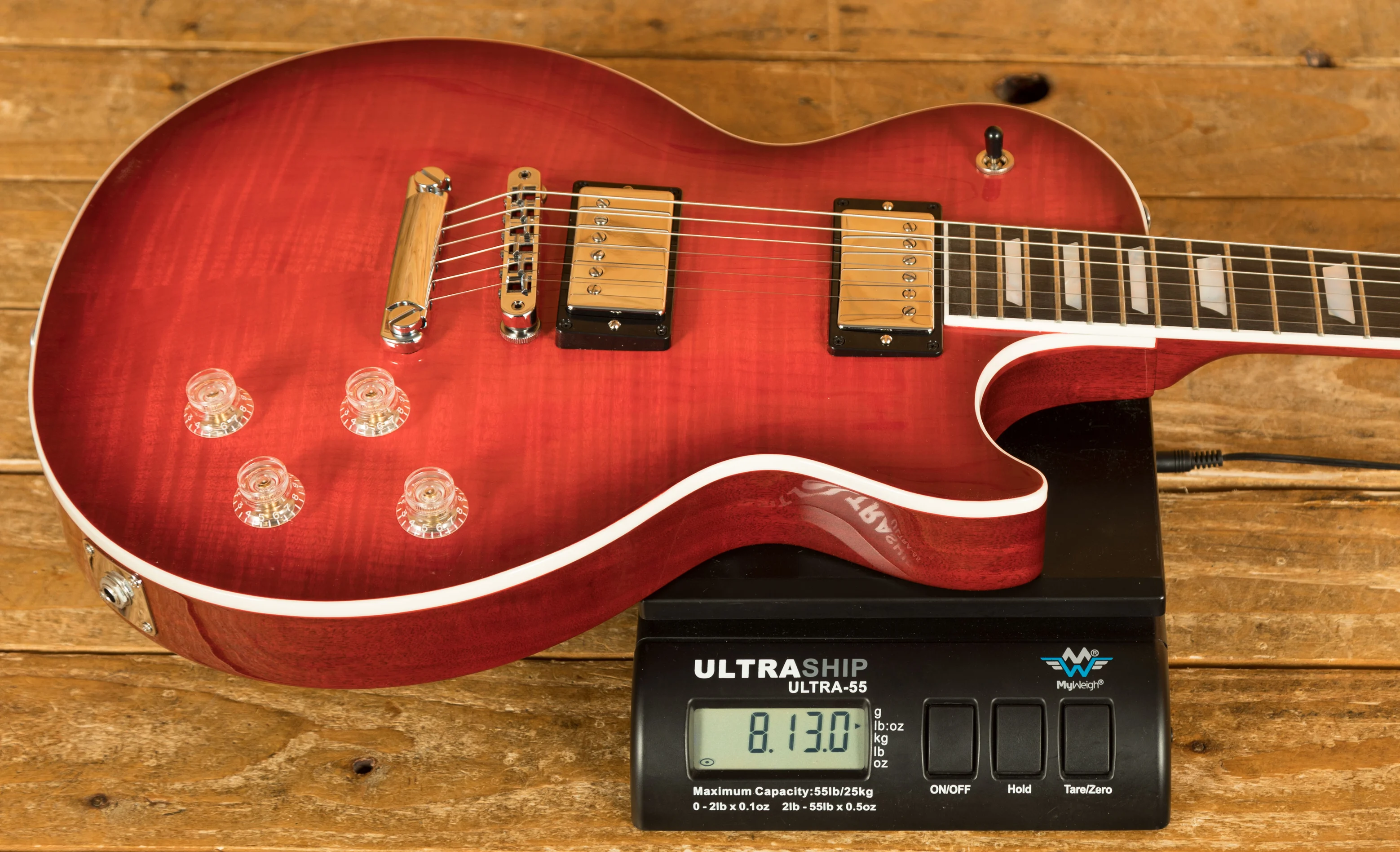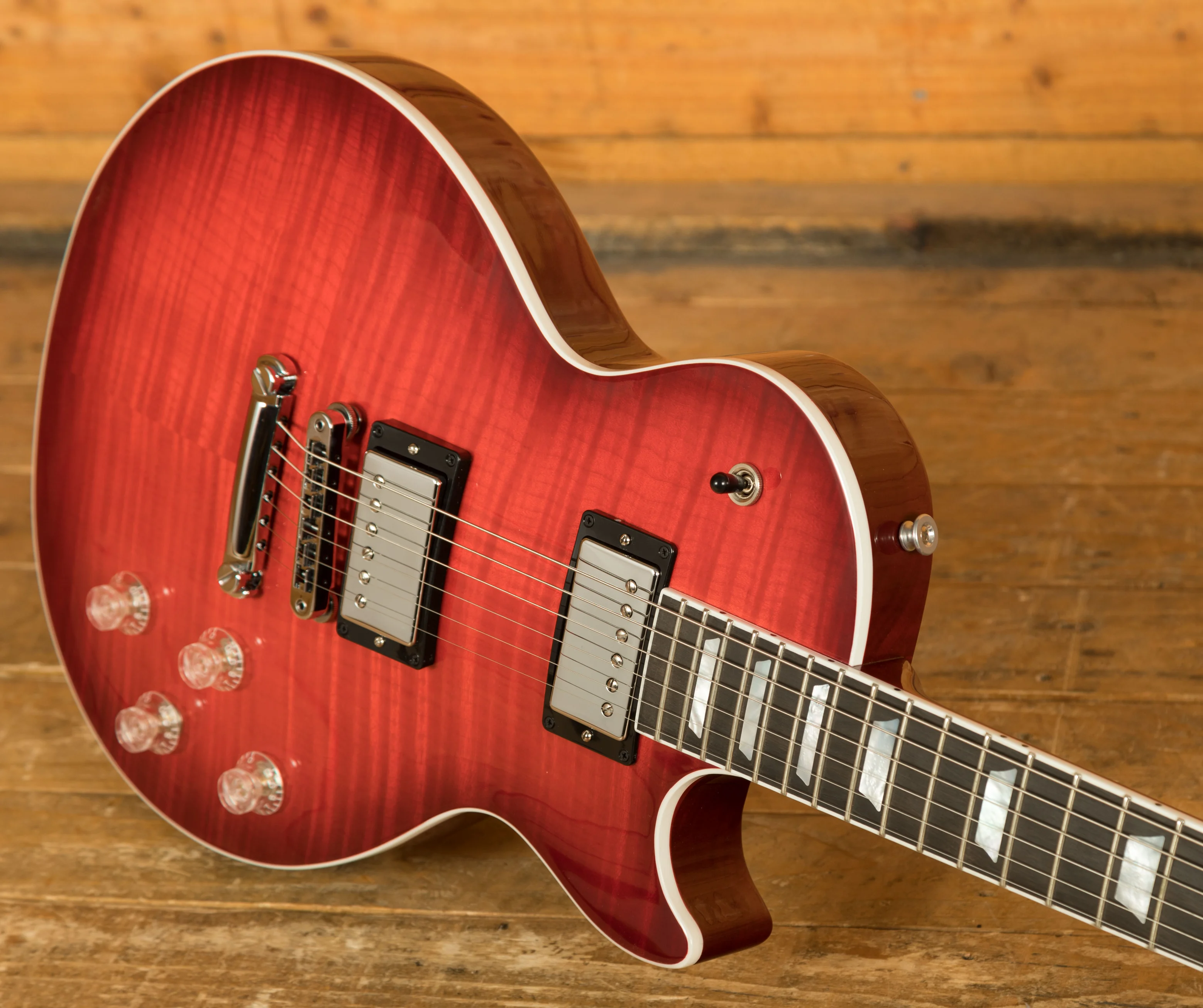 With an Ultra-Modern weight relief Mahogany body, this Les Paul benefits from a stunning 3A Figured Maple top for the ultimate tonewood partnership. Rich and super resonant it offers premium tone and timeless aesthetics, while the Cherry Burst finish looks a million dollars and really allows the wood to breathe and the natural tone to sing through.