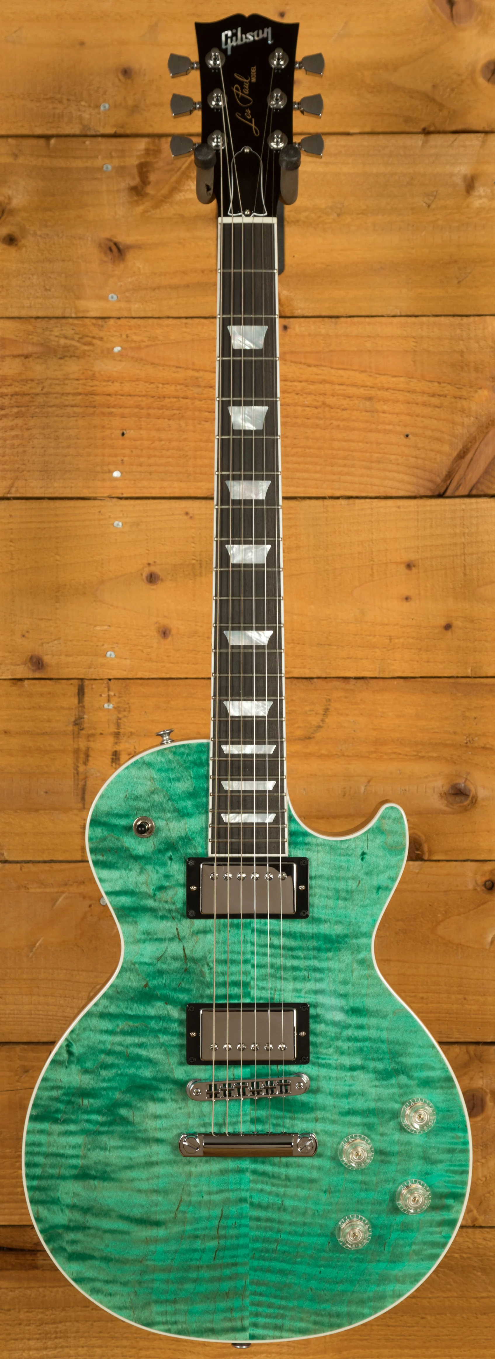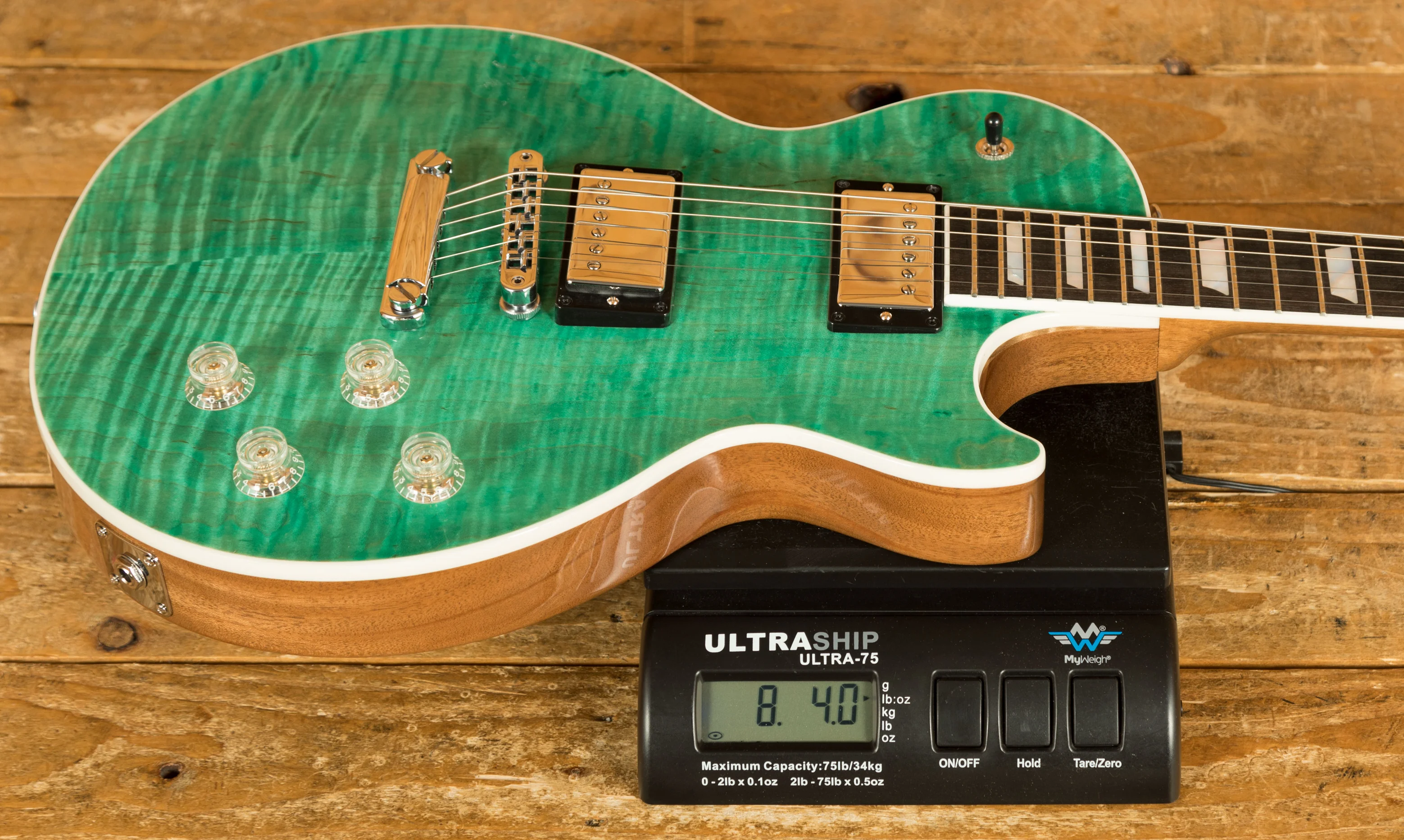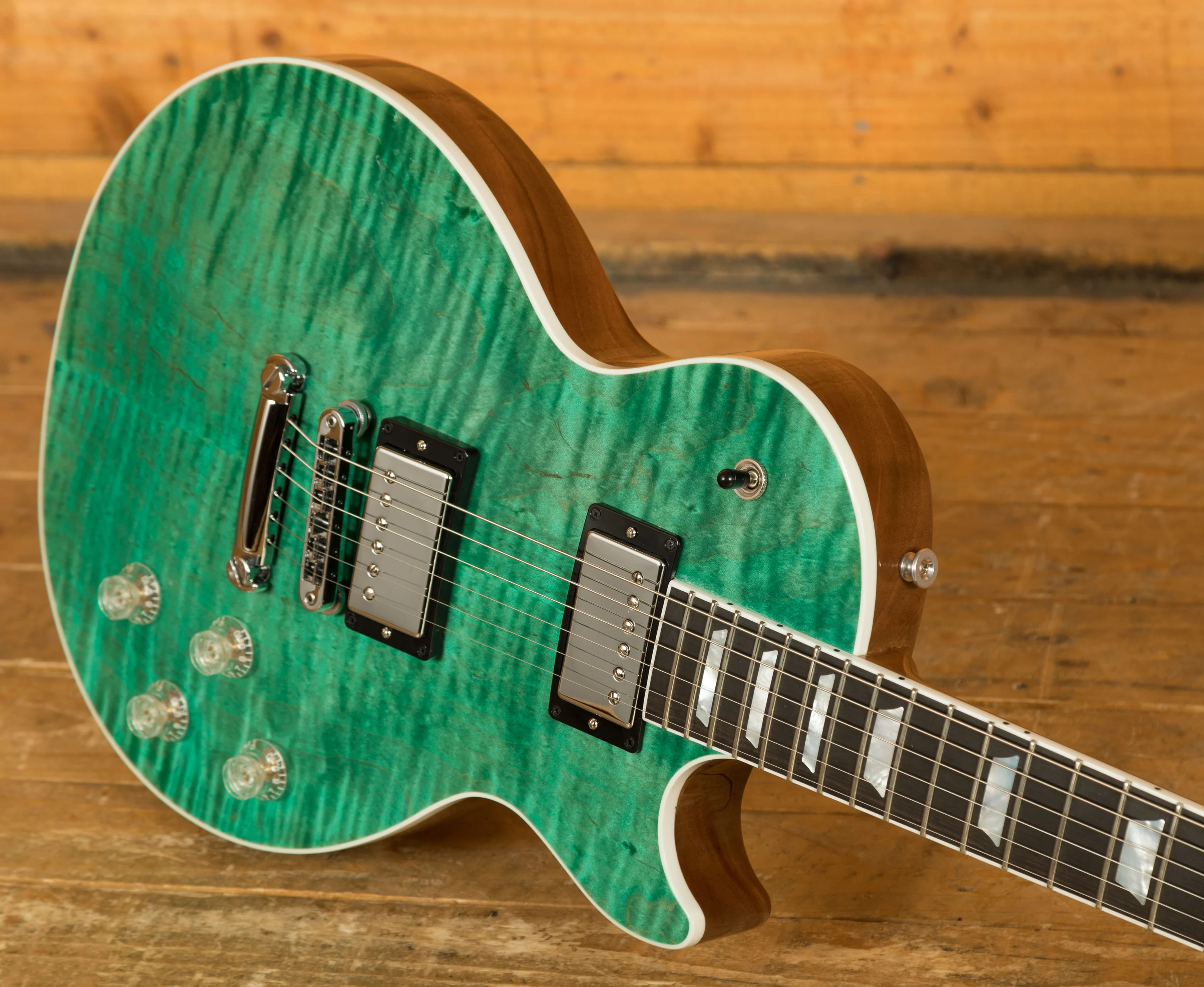 With an Ultra-Modern weight relief Mahogany body, this Les Paul benefits from a stunning 3A Figured Maple top for the ultimate tonewood partnership. Rich and super resonant it offers premium tone and timeless aesthetics, while the Sea Foam Green finish looks a million dollars and really allows the wood to breathe and the natural tone to sing through.