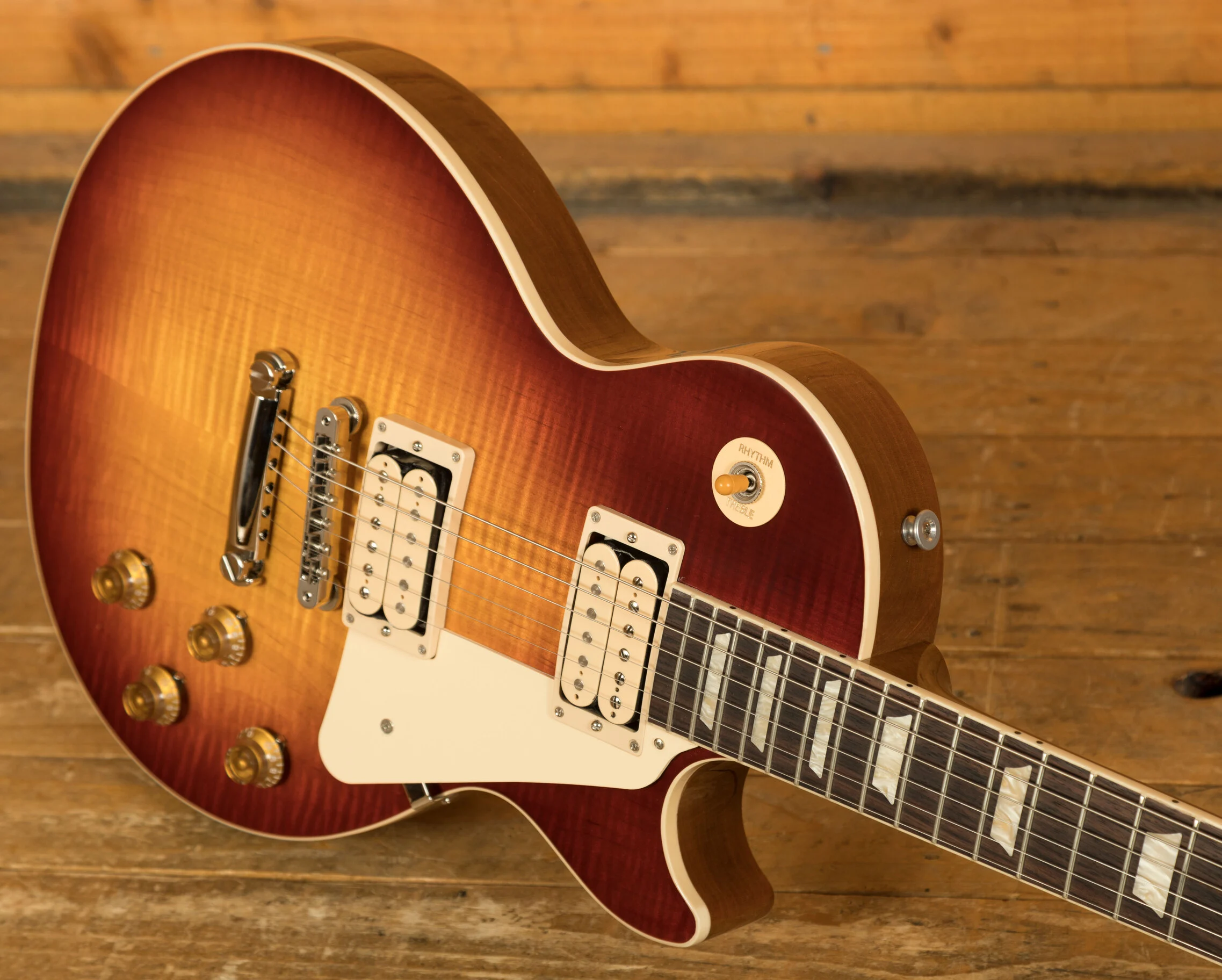 The Mahogany neck is topped with a crisp Rosewood fingerboard with classic Gibson Trapezoid inlays, this guitar looks every bit the real deal. With a 24.75" scale length and a 50s Vintage profile, it retains that classic Les Paul feel. The ABR1 Tune-0-Matic bridge and light weight tailpiece offer an authentic vintage vibe.