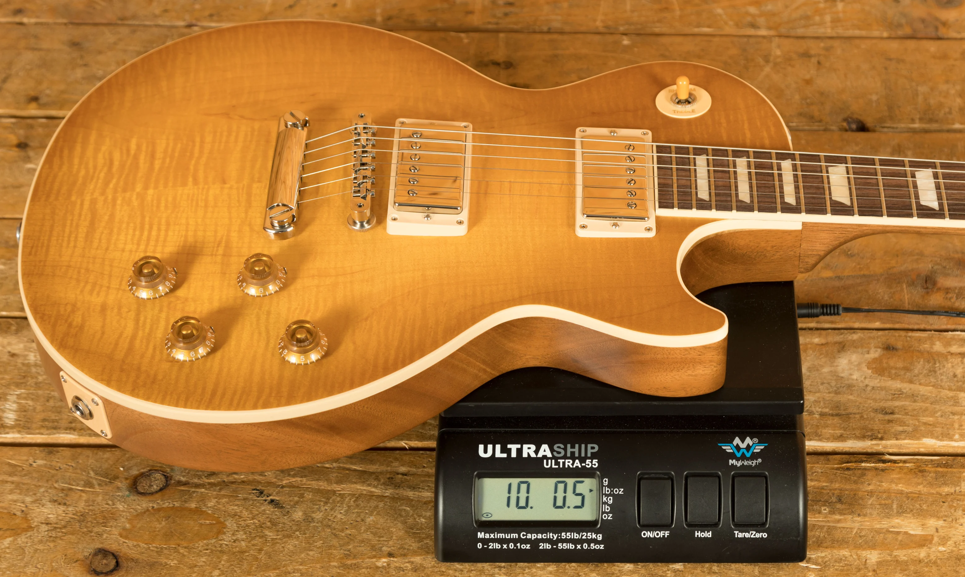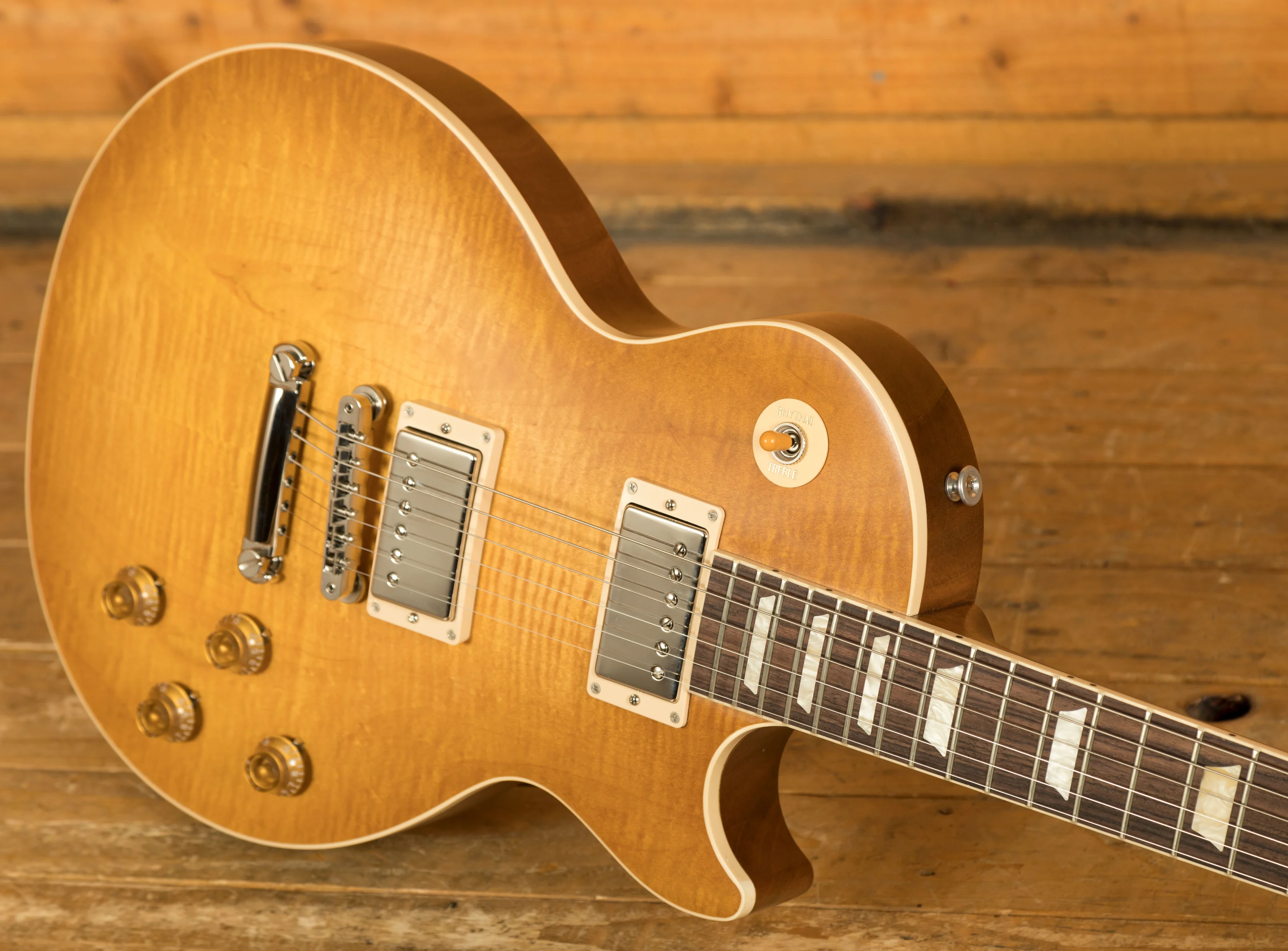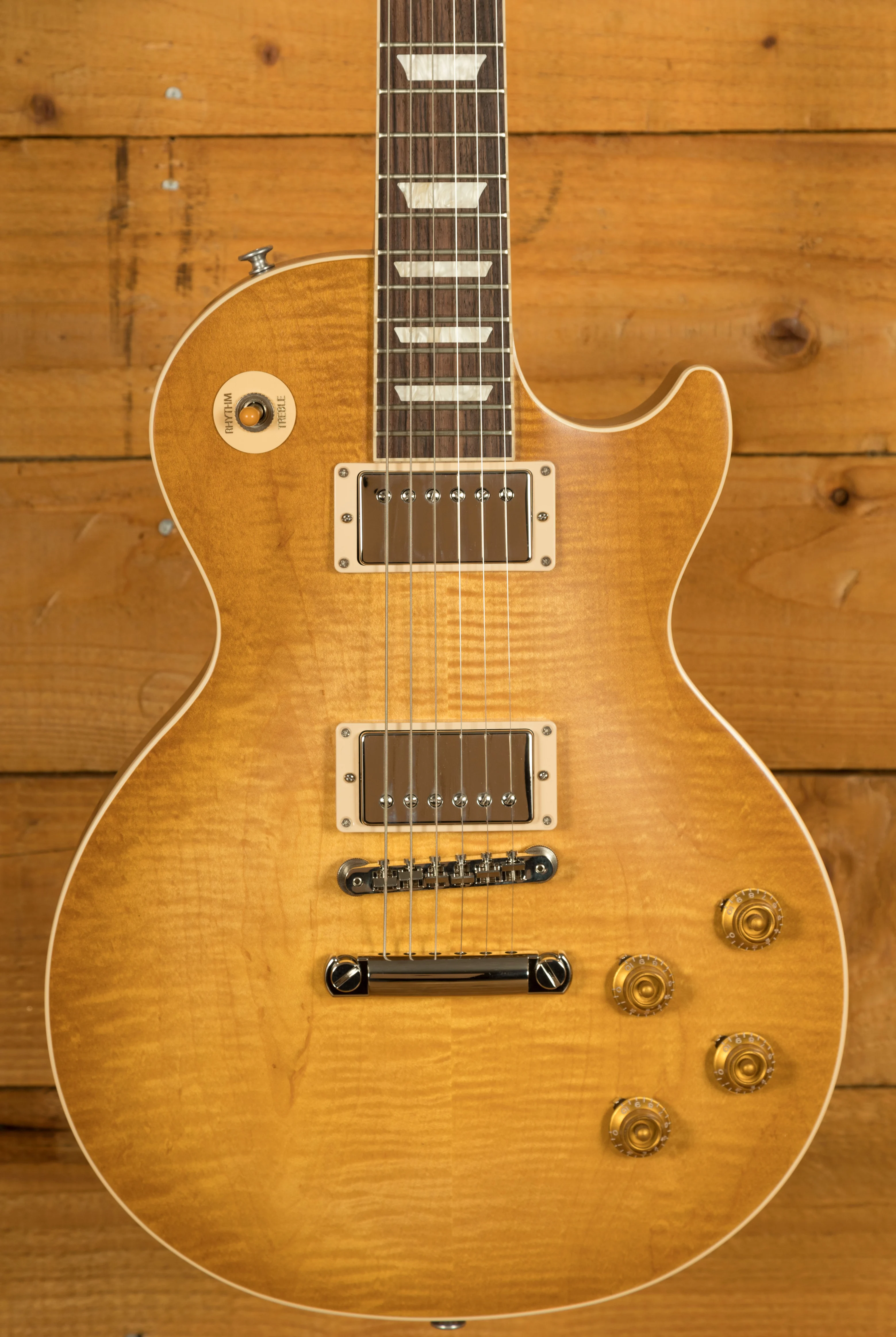 The Mahogany neck is topped with a crisp Rosewood fingerboard with classic Gibson Trapezoid inlays, this guitar looks every bit the real deal. With a 24.75" scale length and a 50s Vintage profile, it retains that classic Les Paul feel. The ABR1 Tune-O-Matic bridge and light weight tailpiece offer an authentic vintage vibe.