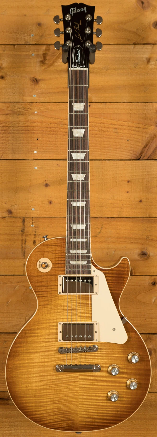 The Gibson USA Les Paul Standards 60s model is typically adorned with a AA figured top and available in classic finishes like Iced Tea, Bourbon Burst and Unburst. However, we present an exclusive offering featuring an exquisite AAA top and a selection of two distinctive colours not commonly found in this range: Dirty Lemon Burst and Fireburst, both meticulously finished in gloss nitrocellulose lacquer.