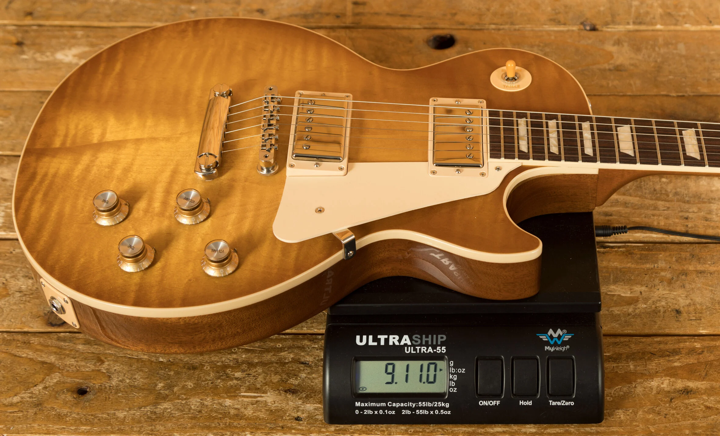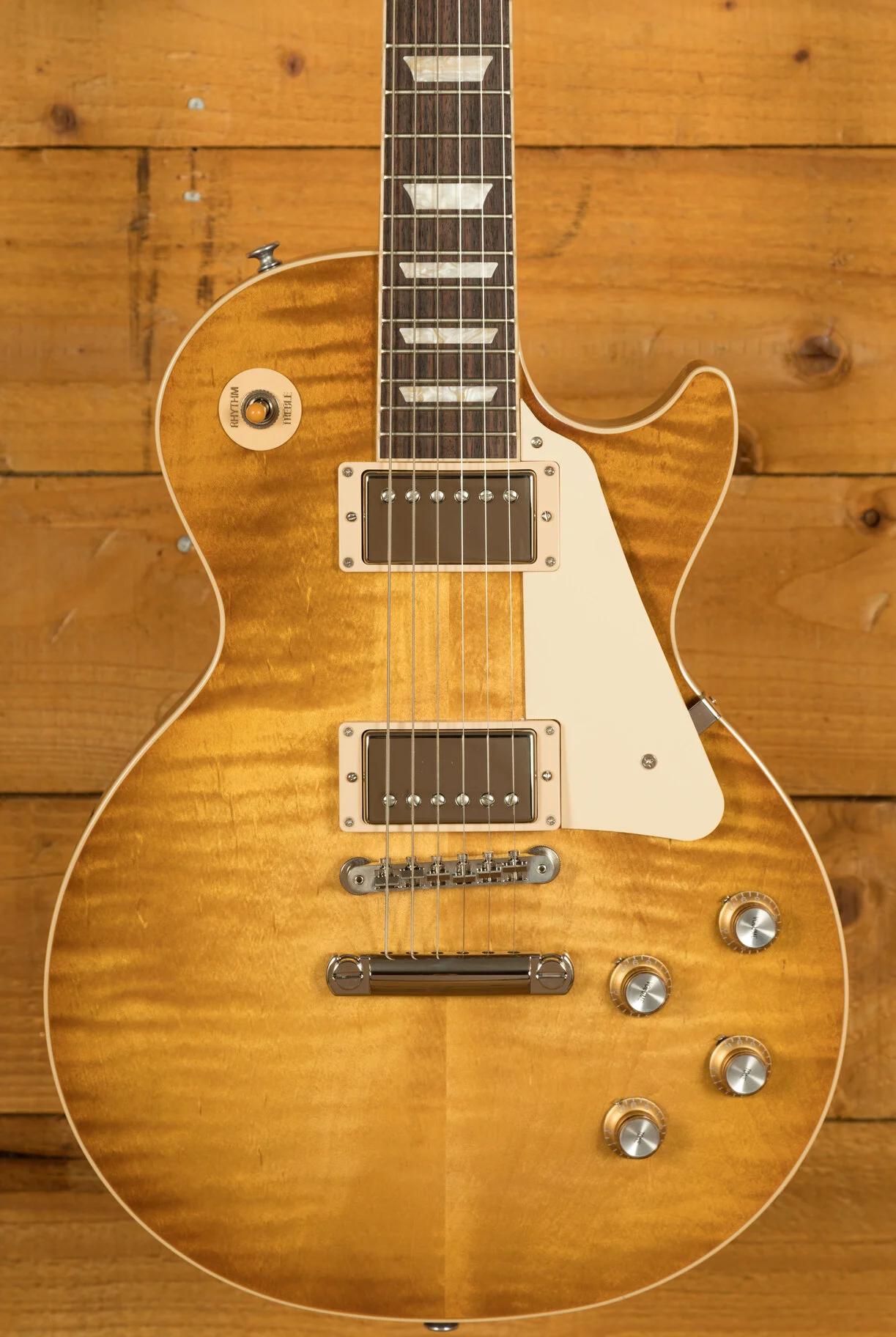 Built to meet your expectations, this guitar boasts a solid mahogany body and a SlimTaper 60s-style mahogany neck complemented by a rosewood fingerboard adorned with trapezoid inlays. Equipped with a classic ABR-1 Tune-O-Matic bridge, aluminium Stop Bar tailpiece, Grover Rotomatic "Kidney" tuners, and gold Top Hat knobs featuring silver reflectors, every detail exudes classic Les Paul craftsmanship.