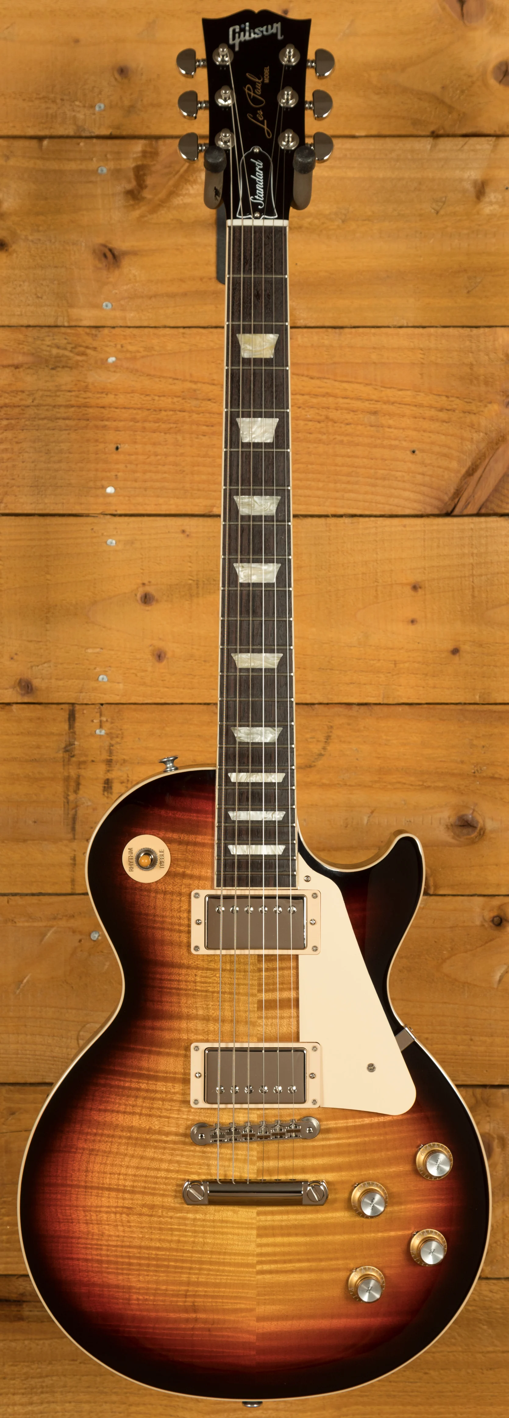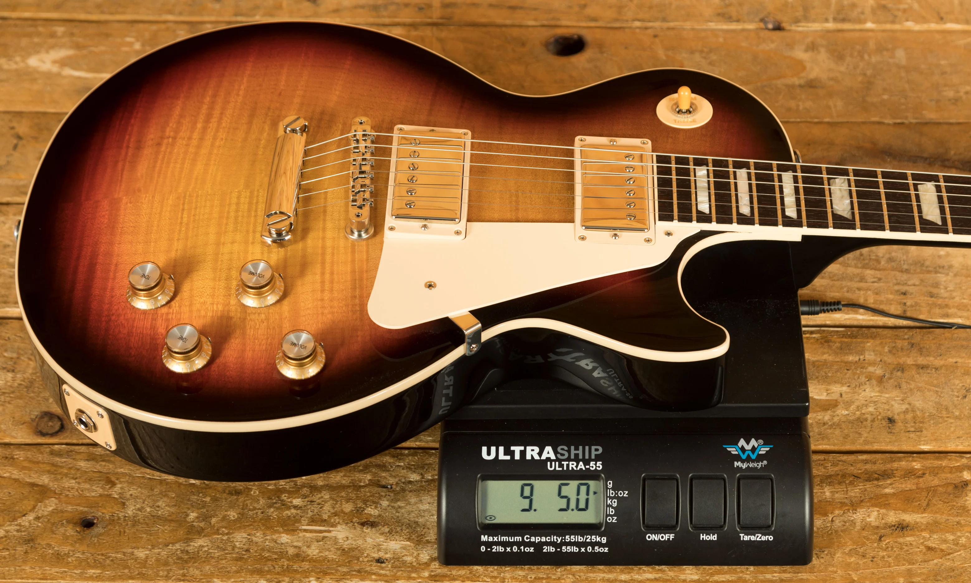 Built to meet your expectations, this guitar boasts a solid mahogany body and a SlimTaper 60s-style mahogany neck complemented by a rosewood fingerboard adorned with trapezoid inlays. Equipped with a classic ABR-1 Tune-O-Matic bridge, aluminium Stop Bar tailpiece, Grover Rotomatic "Kidney" tuners, and gold Top Hat knobs featuring silver reflectors, every detail exudes classic Les Paul craftsmanship.