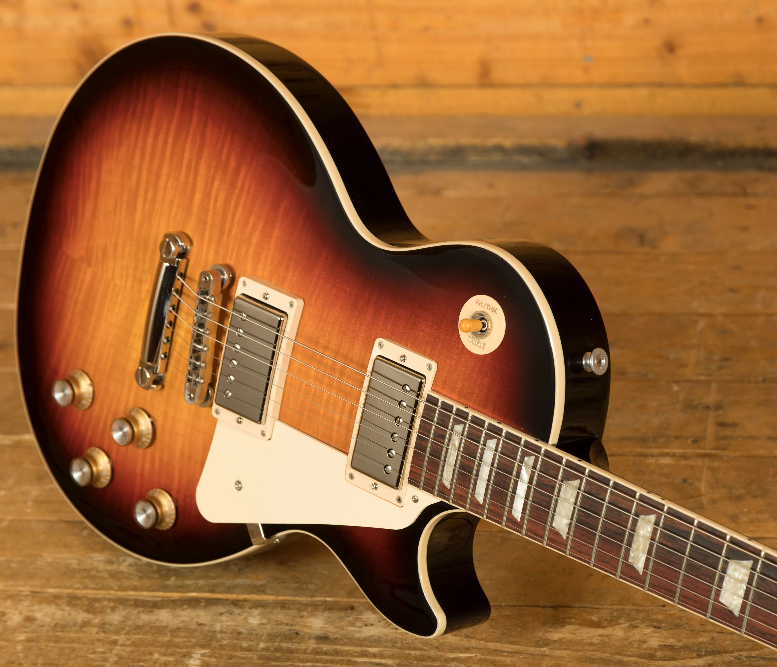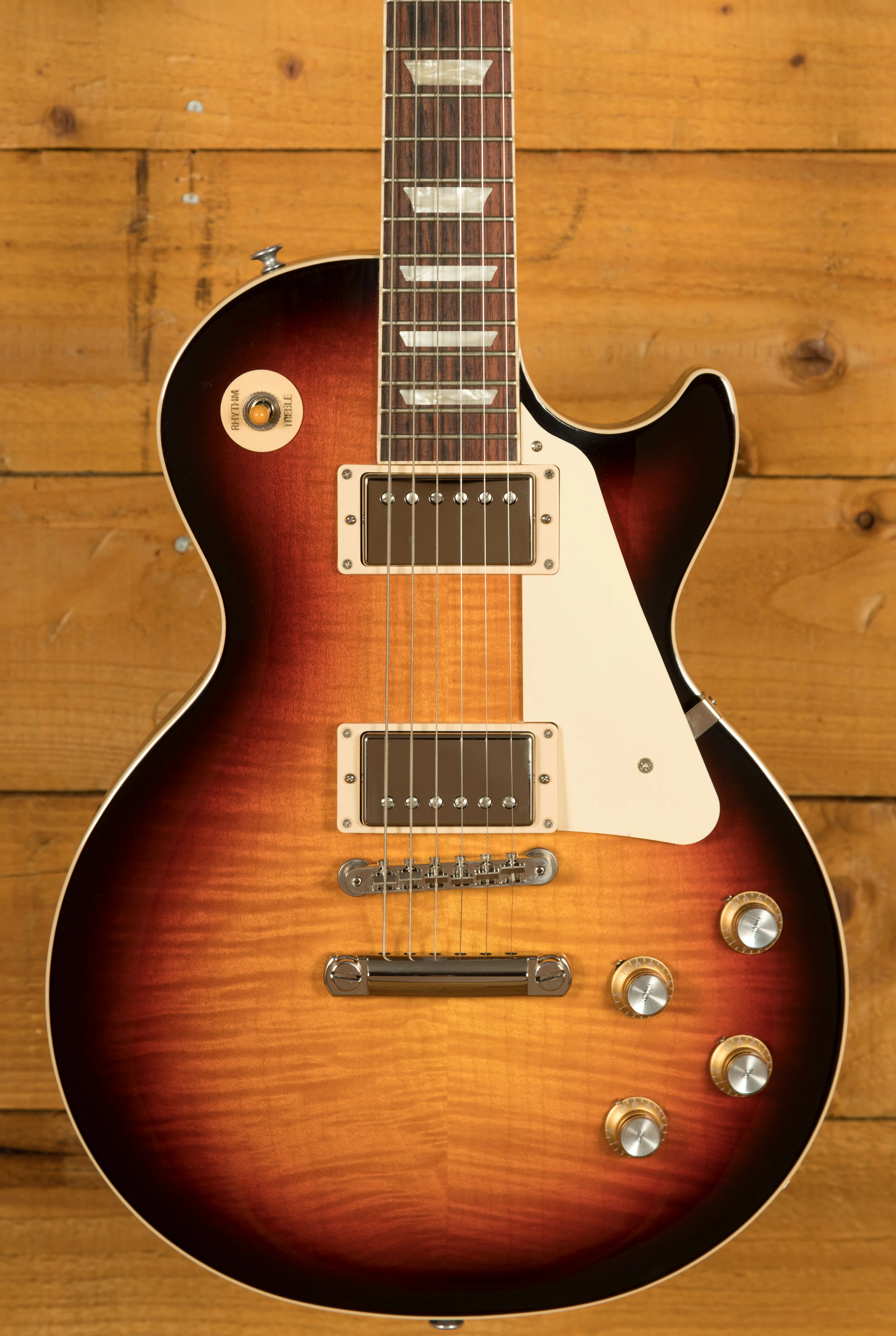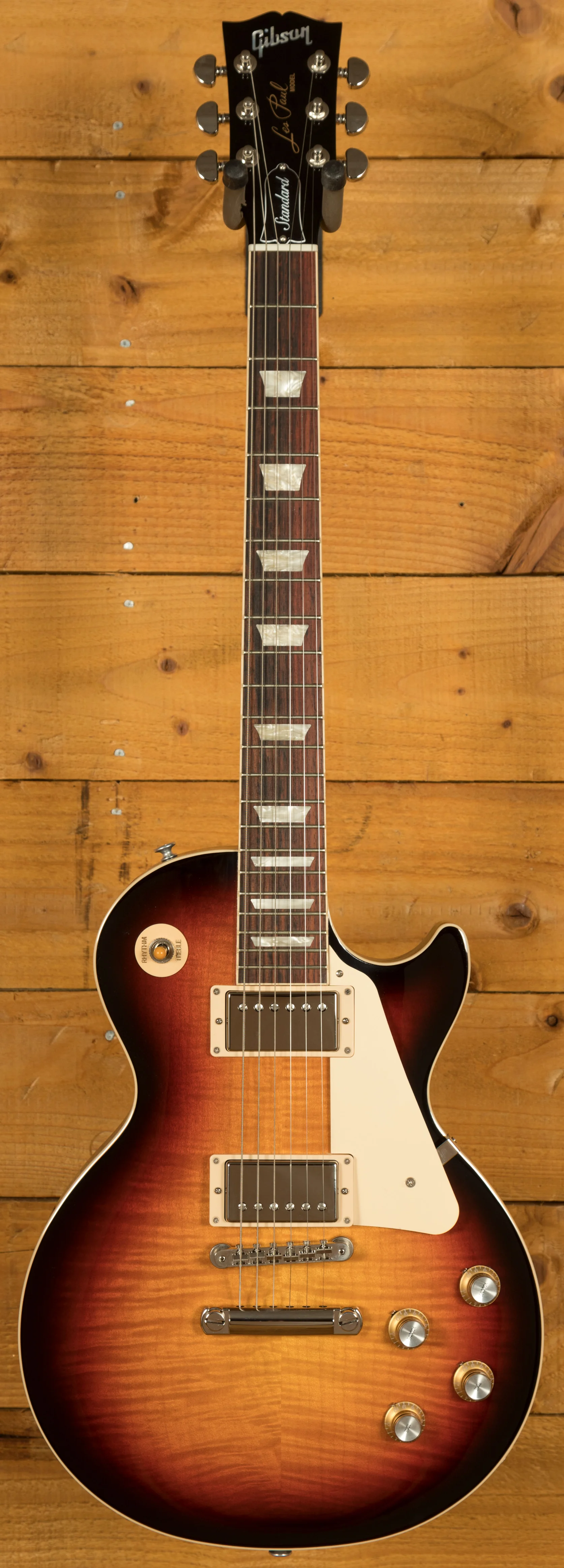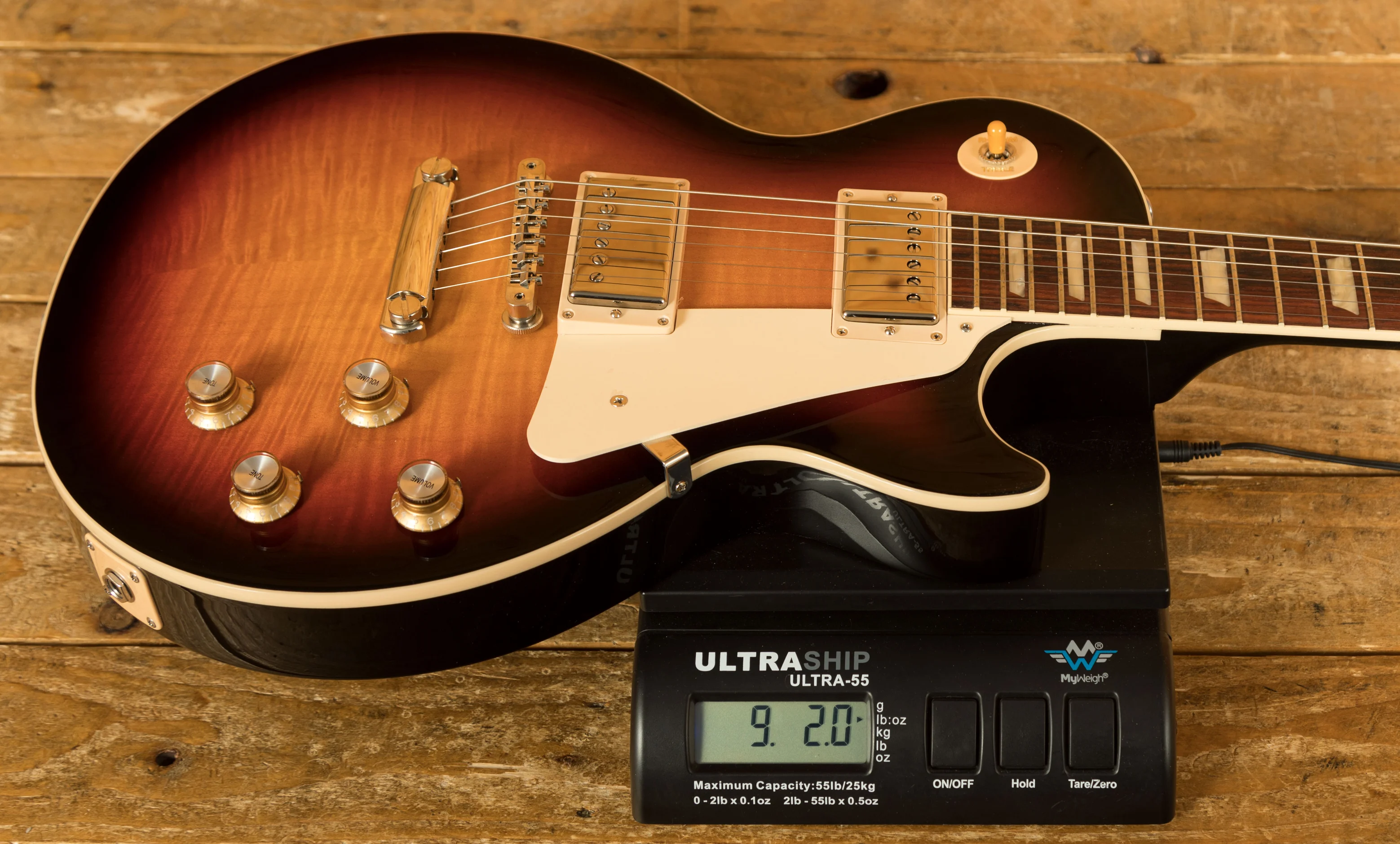 Built to meet your expectations, this guitar boasts a solid mahogany body and a SlimTaper 60s-style mahogany neck complemented by a rosewood fingerboard adorned with trapezoid inlays. Equipped with a classic ABR-1 Tune-O-Matic bridge, aluminium Stop Bar tailpiece, Grover Rotomatic "Kidney" tuners, and gold Top Hat knobs featuring silver reflectors, every detail exudes classic Les Paul craftsmanship.