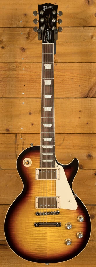 Built to meet your expectations, this guitar boasts a solid mahogany body and a SlimTaper 60s-style mahogany neck complemented by a rosewood fingerboard adorned with trapezoid inlays. Equipped with a classic ABR-1 Tune-O-Matic bridge, aluminium Stop Bar tailpiece, Grover Rotomatic "Kidney" tuners, and gold Top Hat knobs featuring silver reflectors, every detail exudes classic Les Paul craftsmanship.