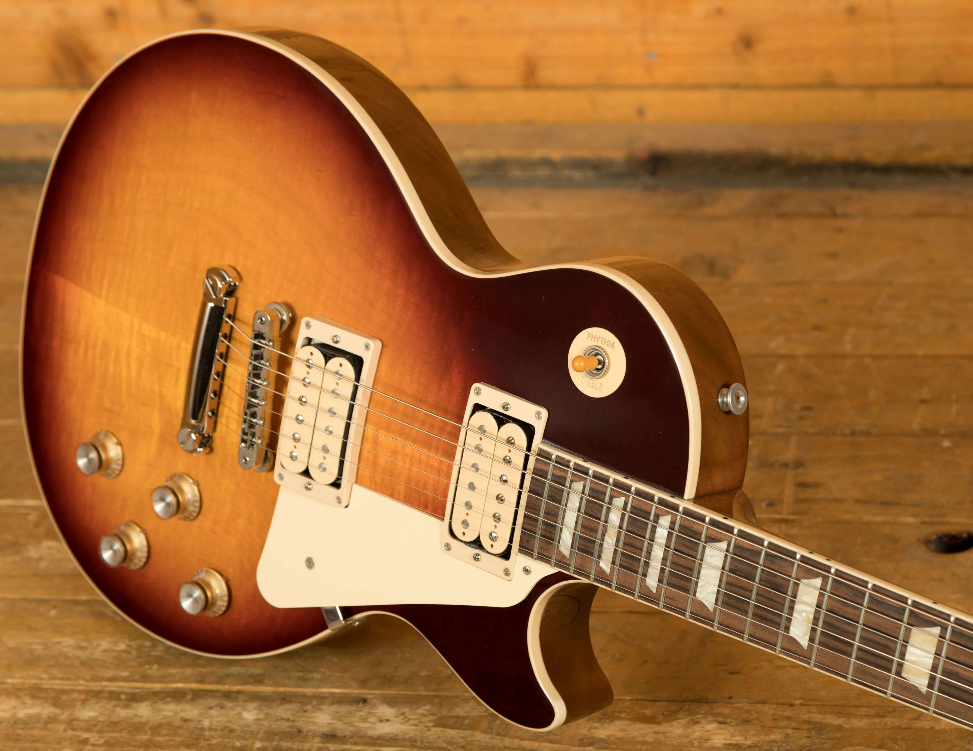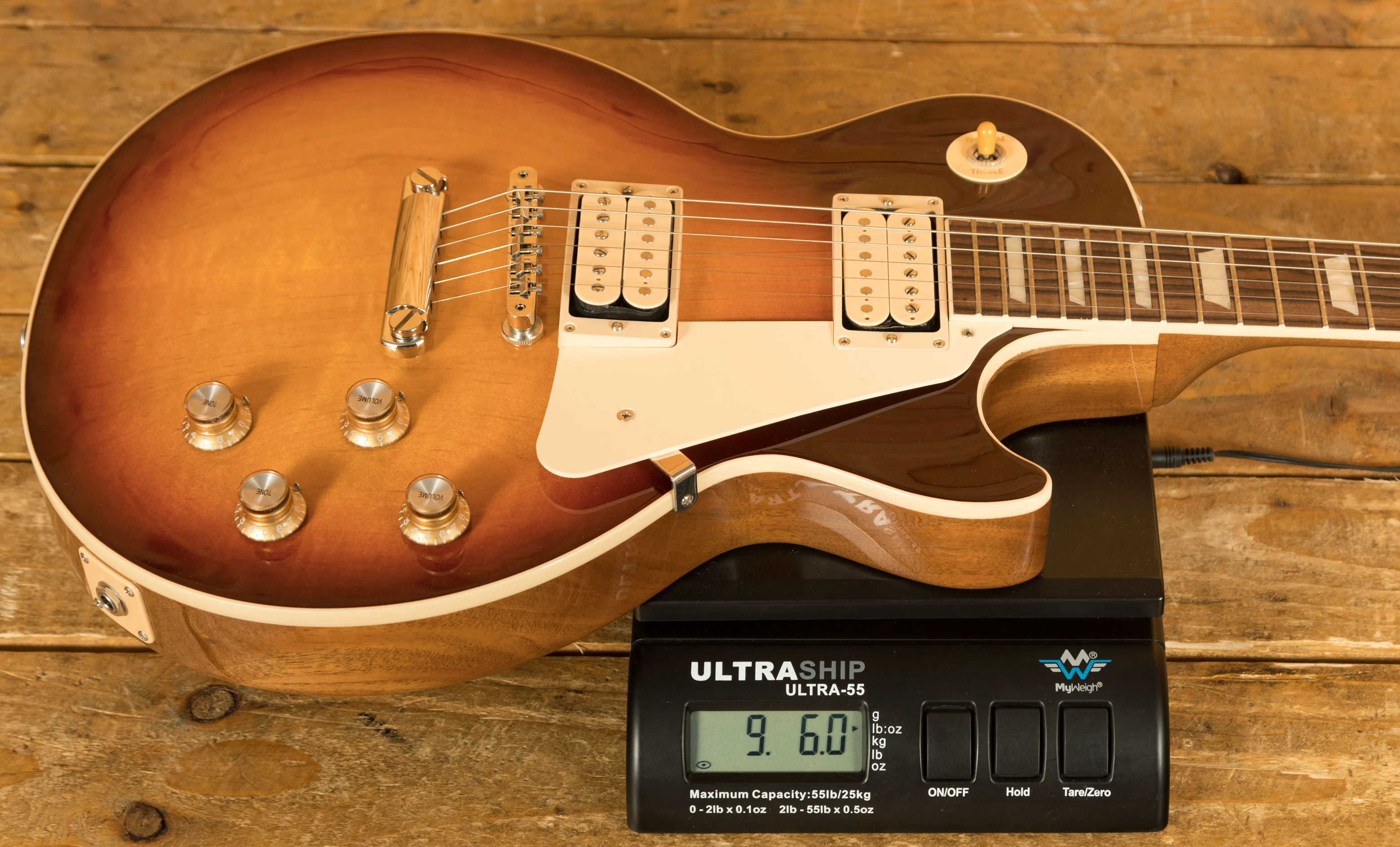The Mahogany neck is topped with a crisp Rosewood fingerboard with classic Gibson Trapezoid inlays, this guitar looks every bit the real deal. With a 24.75" scale length and a SlimTaper profile, it retains that classic Les Paul feel. The ABR1 Tune-0-Matic bridge and light weight tailpiece offer an authentic vintage vibe.