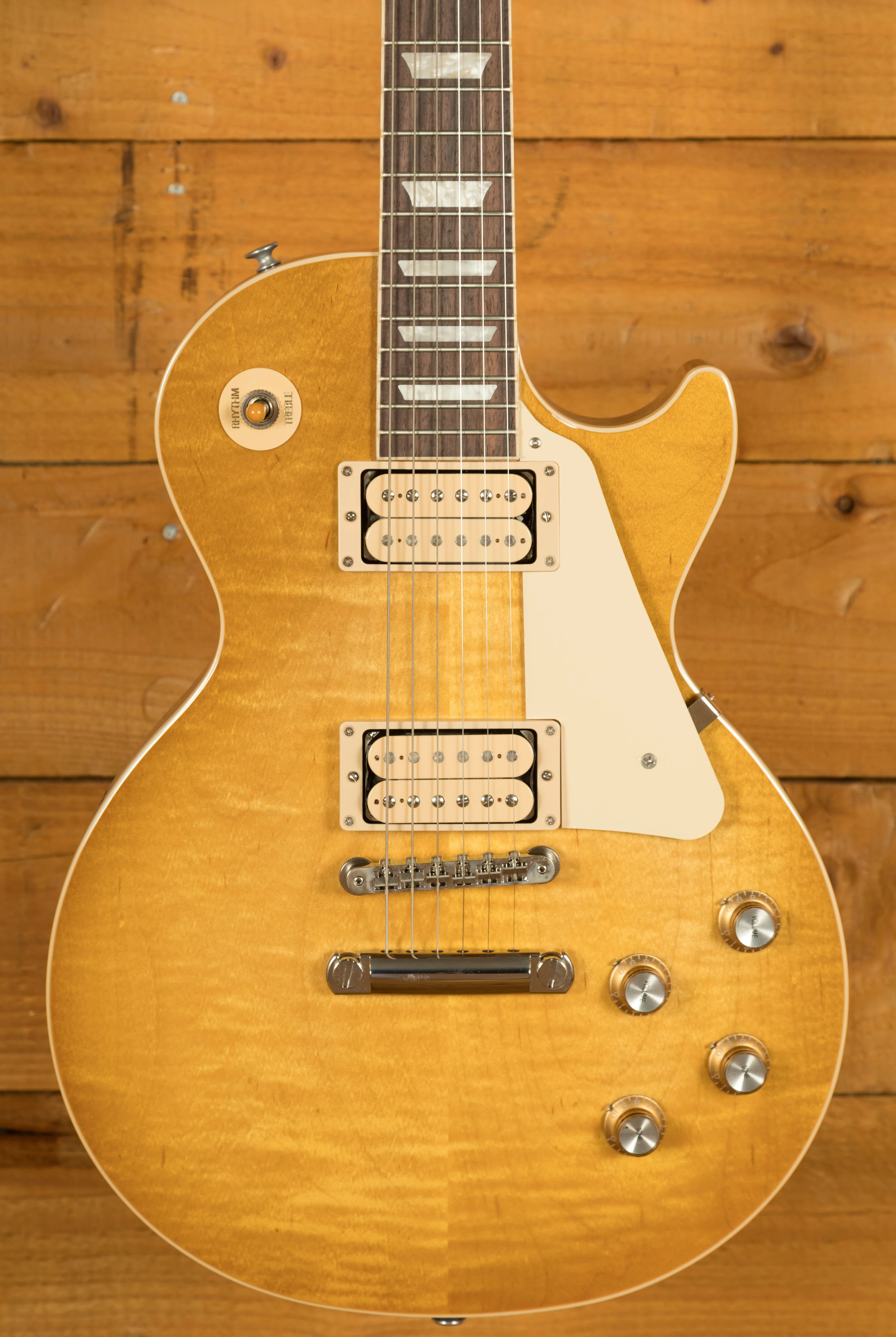 With a Mahogany body, this Les Paul benefits from a Maple top for the ultimate tonewood partnership. Rich and super resonant it offers premium tone and timeless aesthetics! One of the most exciting features of the Double Trouble Les Paul is the unique finish. This guitar features a “vintage” variation of Gibson’s iconic Honey Burst nitrocellulose finish, which is slightly more faded when compared to the standard version. As each burst pattern is sprayed by hand, you’ll see there is some great variation in each guitars colour.