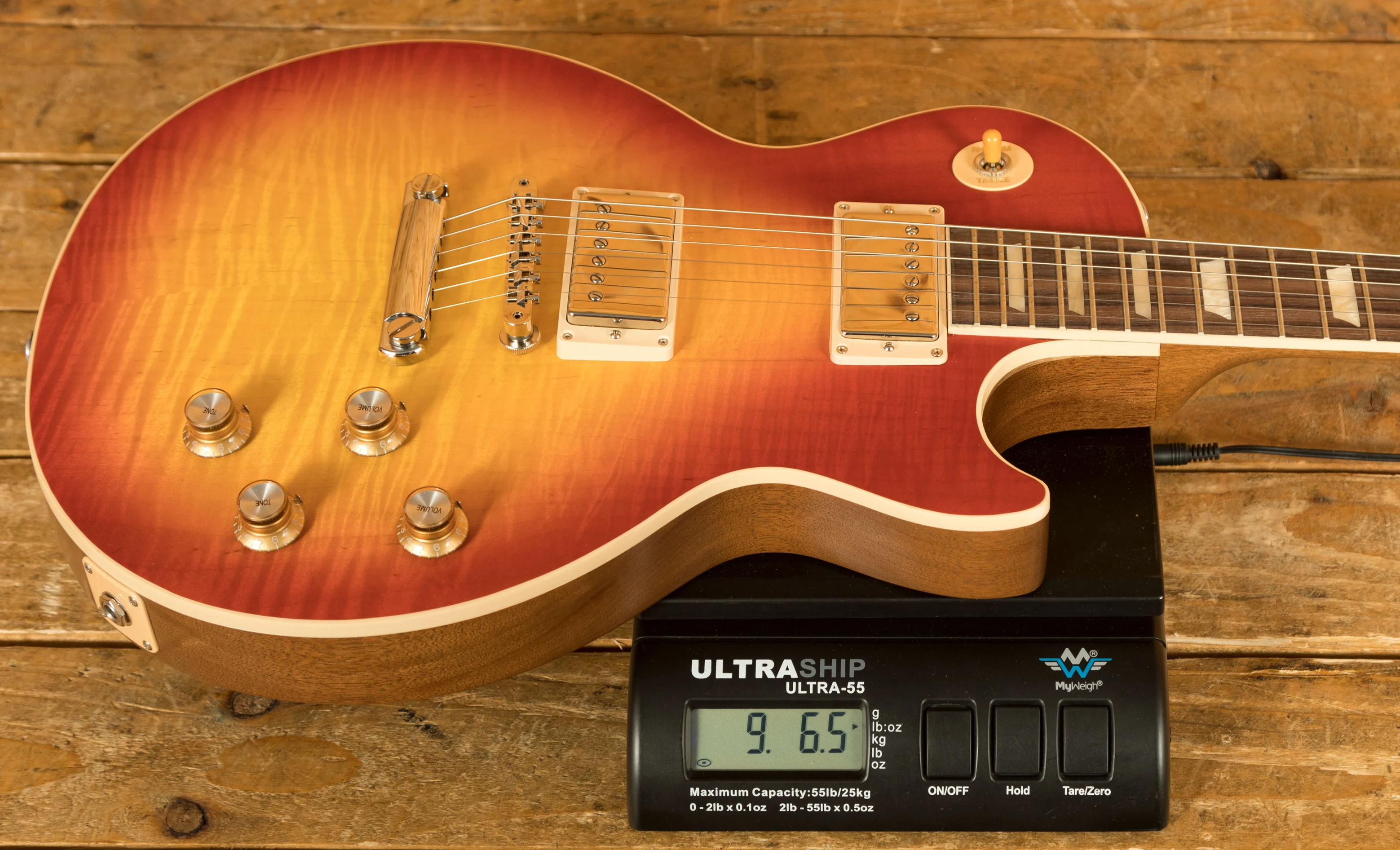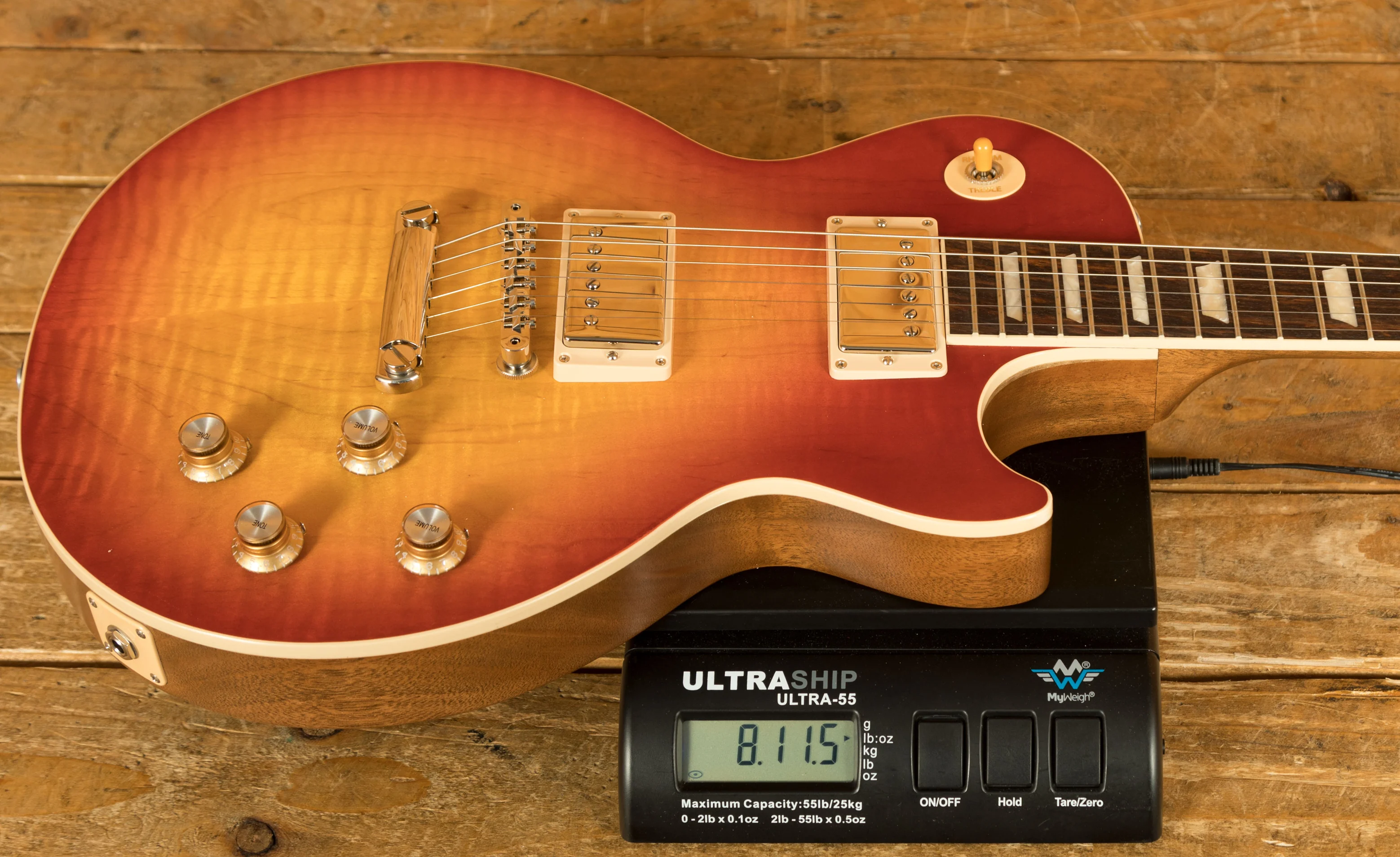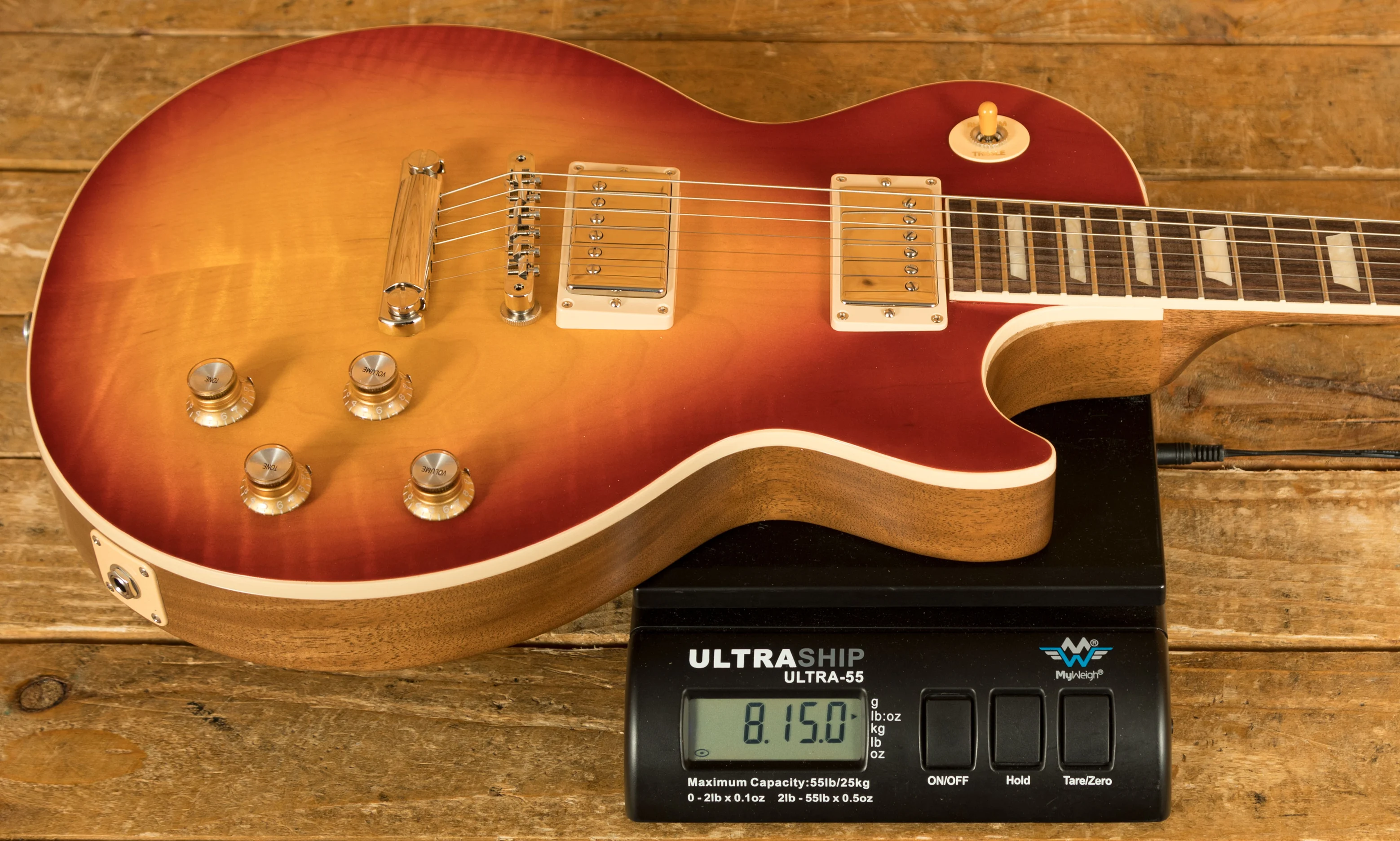 The Mahogany neck is topped with a crisp Rosewood fingerboard with classic Gibson Trapezoid inlays, this guitar looks every bit the real deal. With a 24.75" scale length and a Slim Taper profile, it retains that classic Les Paul feel. The ABR1 Tune-O-Matic bridge and light weight tailpiece offer an authentic vintage vibe and solid tuning stability along with the Grover Rotomatic tuners.
