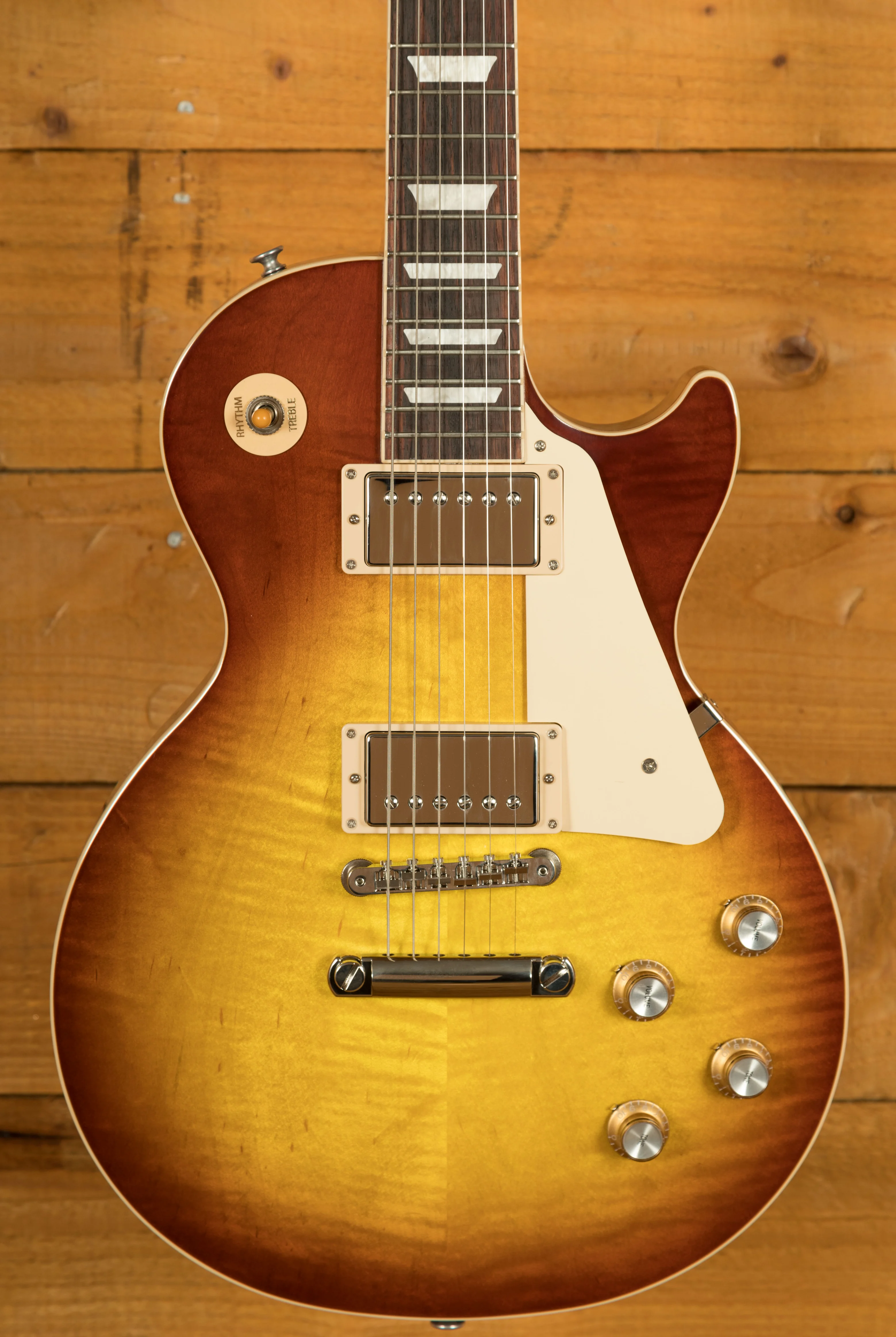With a Mahogany body, this Les Paul benefits from a AA grade Maple top for the ultimate tonewood partnership. Rich and super resonant it offers premium tone and timeless aesthetics, while the Iced Tea finish looks a million dollars and really allows the wood to breathe and the natural tone to sing through.