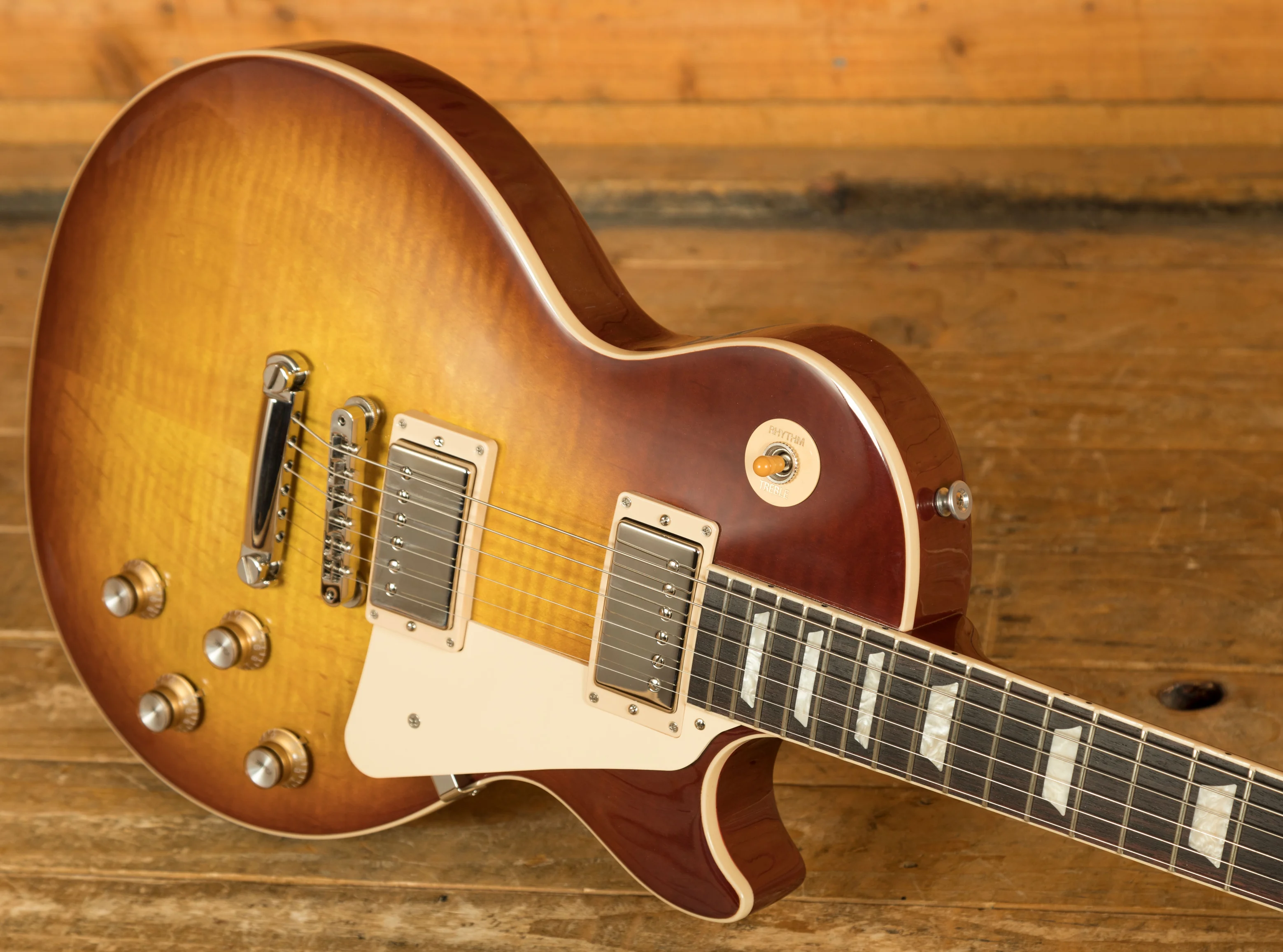 With a Mahogany body, this Les Paul benefits from a AA grade Maple top for the ultimate tonewood partnership. Rich and super resonant it offers premium tone and timeless aesthetics, while the Iced Tea finish looks a million dollars and really allows the wood to breathe and the natural tone to sing through.