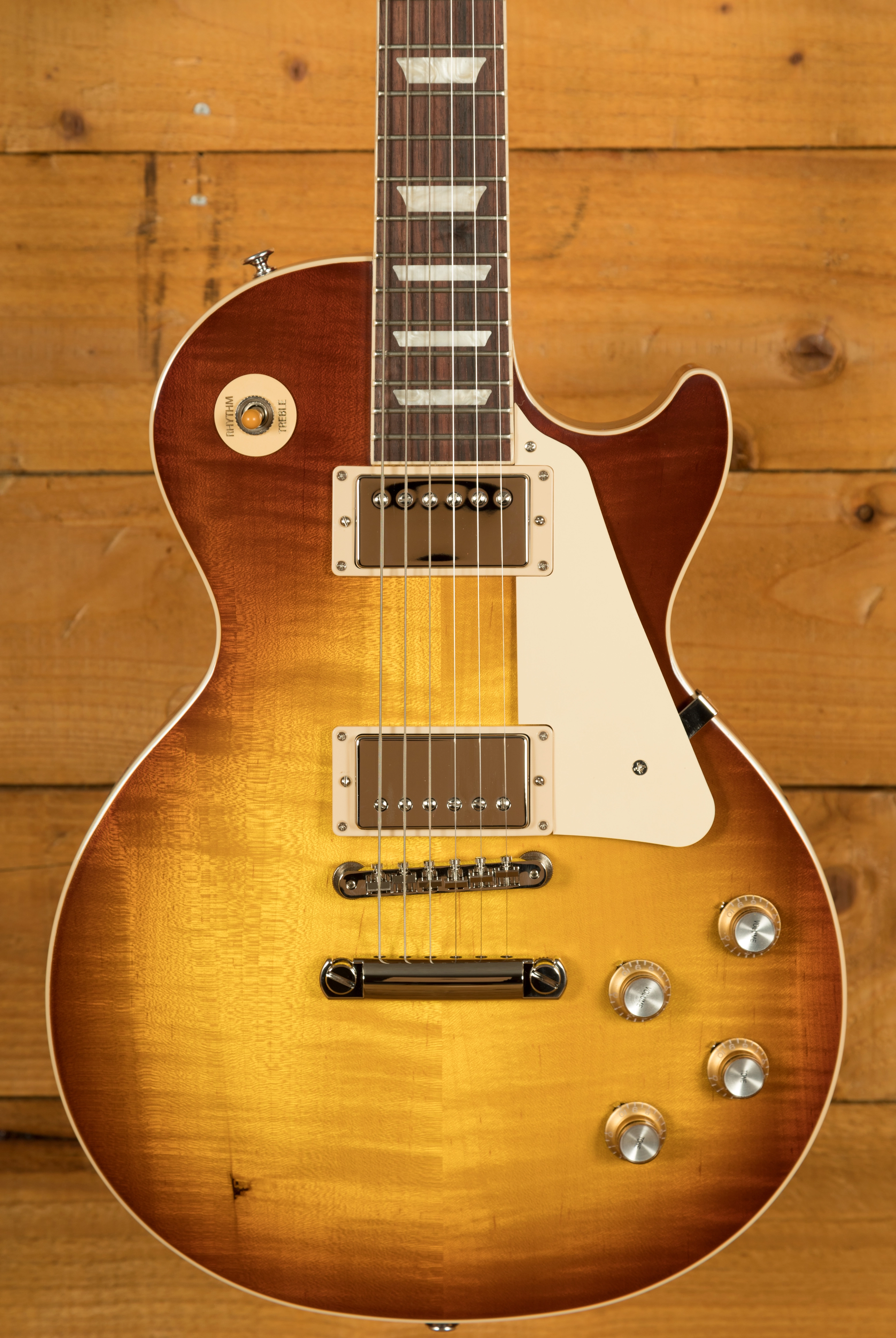 With a Mahogany body, this Les Paul benefits from a AA grade Maple top for the ultimate tonewood partnership. Rich and super resonant it offers premium tone and timeless aesthetics, while the Iced Tea finish looks a million dollars and really allows the wood to breathe and the natural tone to sing through.