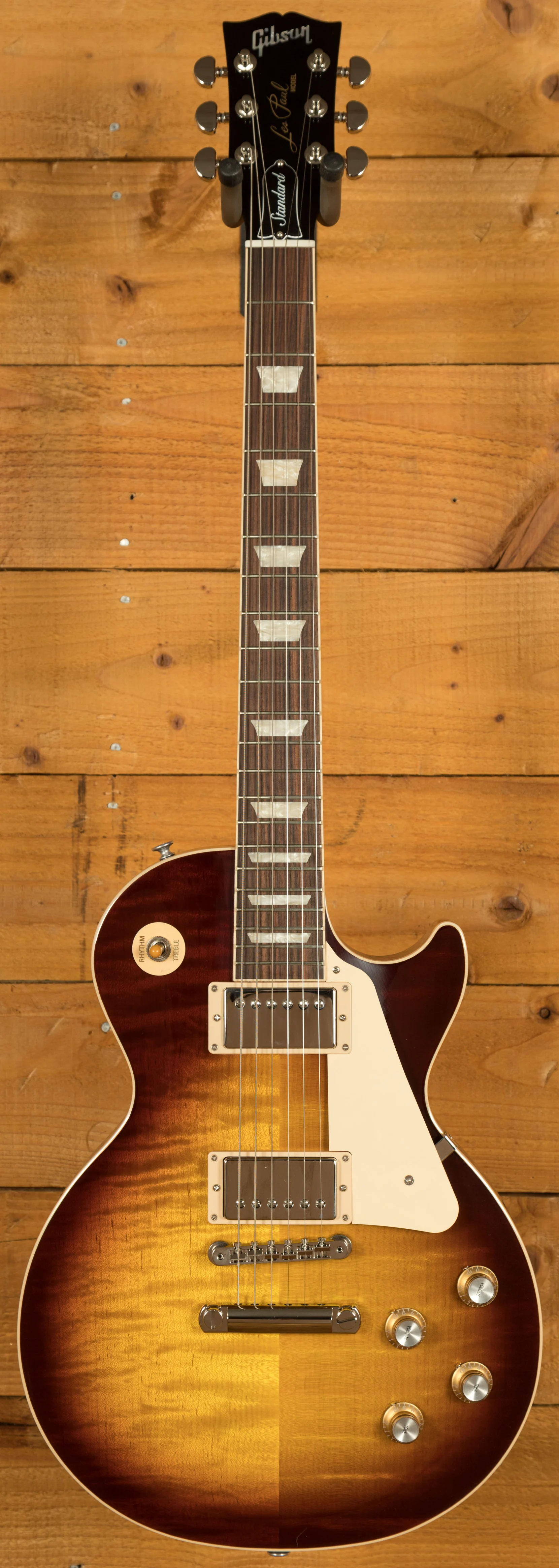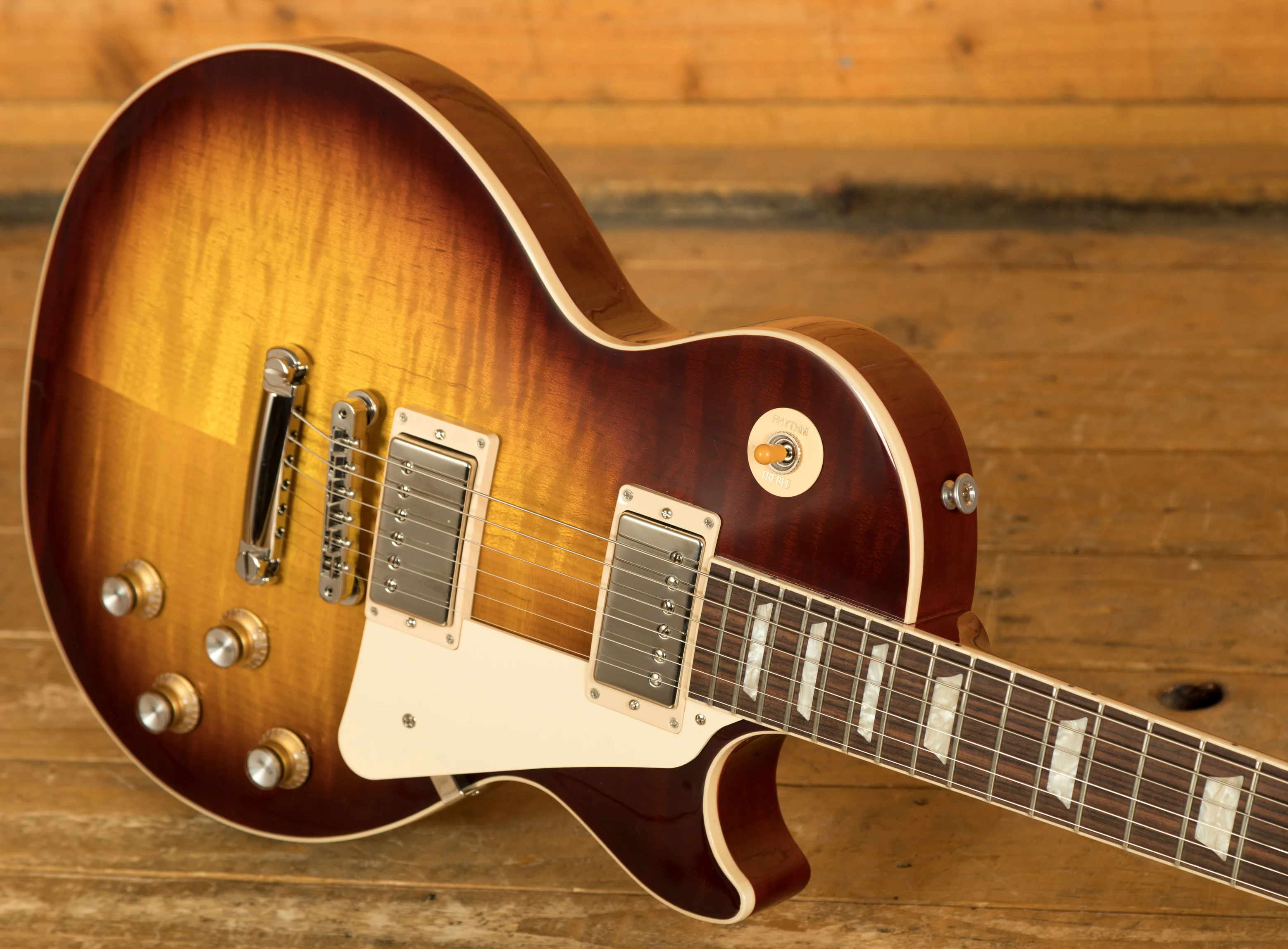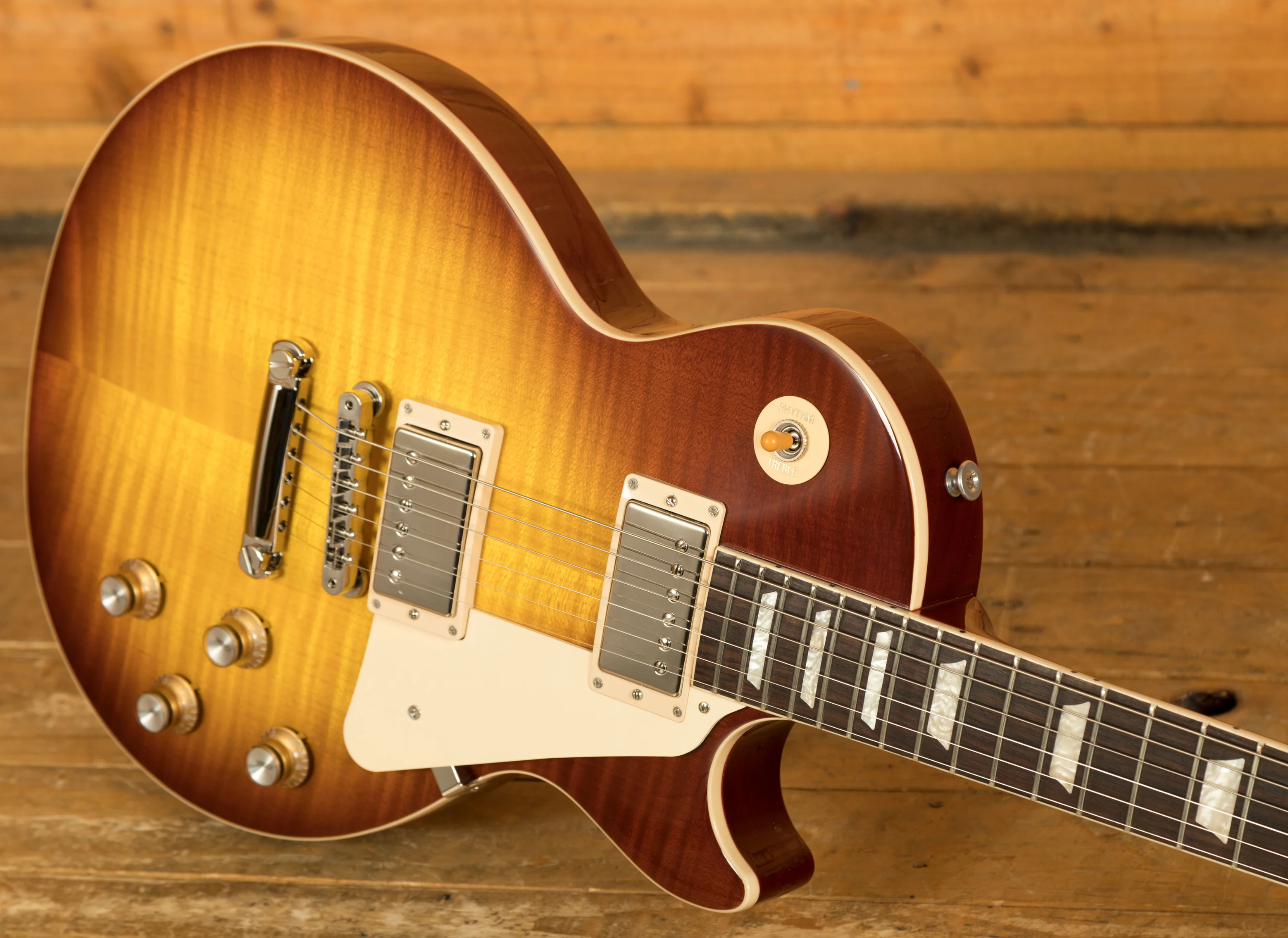With a Mahogany body, this Les Paul benefits from a AA grade Maple top for the ultimate tonewood partnership. Rich and super resonant it offers premium tone and timeless aesthetics, while the Iced Tea finish looks a million dollars and really allows the wood to breathe and the natural tone to sing through.