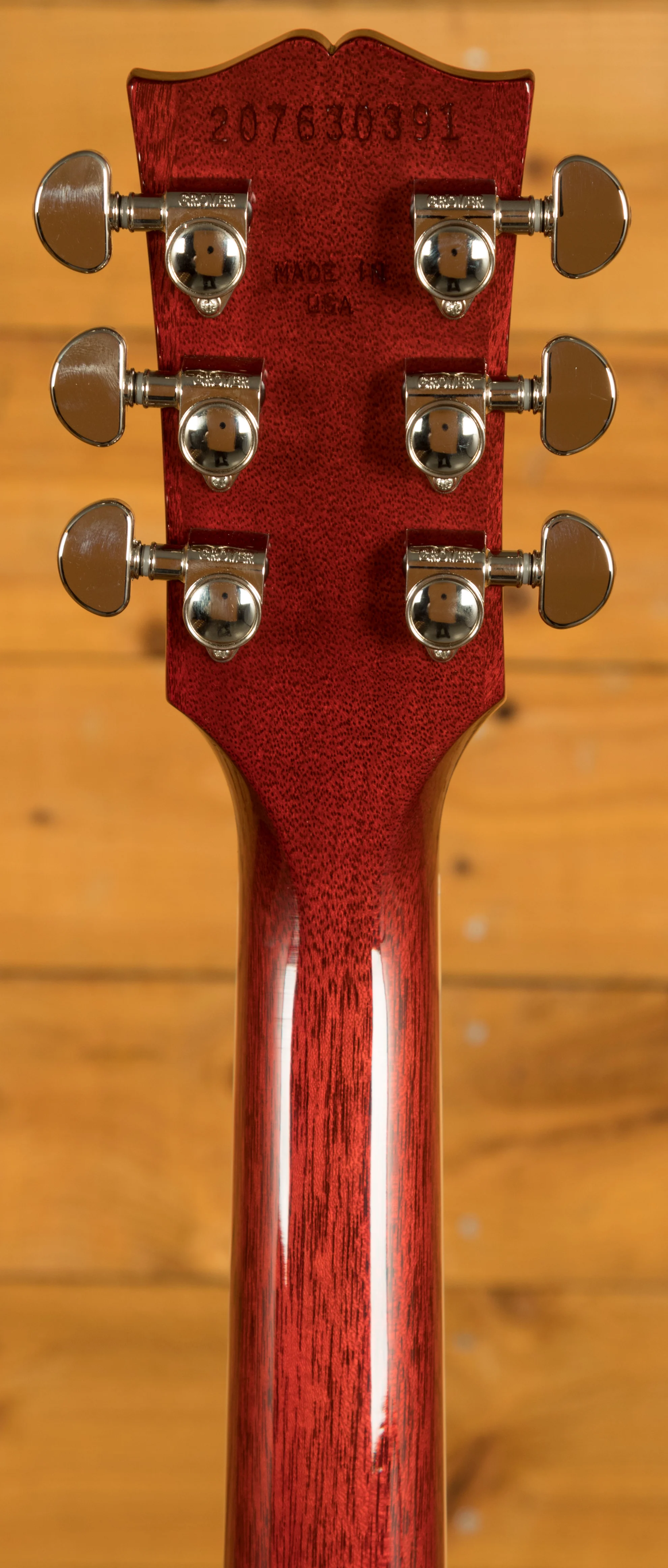 The Mahogany neck is topped with a crisp Rosewood fingerboard with classic Gibson Trapezoid inlays, this guitar looks every bit the real deal. With a 24.75" scale length and a Slim Taper profile, it retains that classic Les Paul feel. The ABR1 Tune-O-Matic bridge and light weight tailpiece offer an authentic vintage vibe.