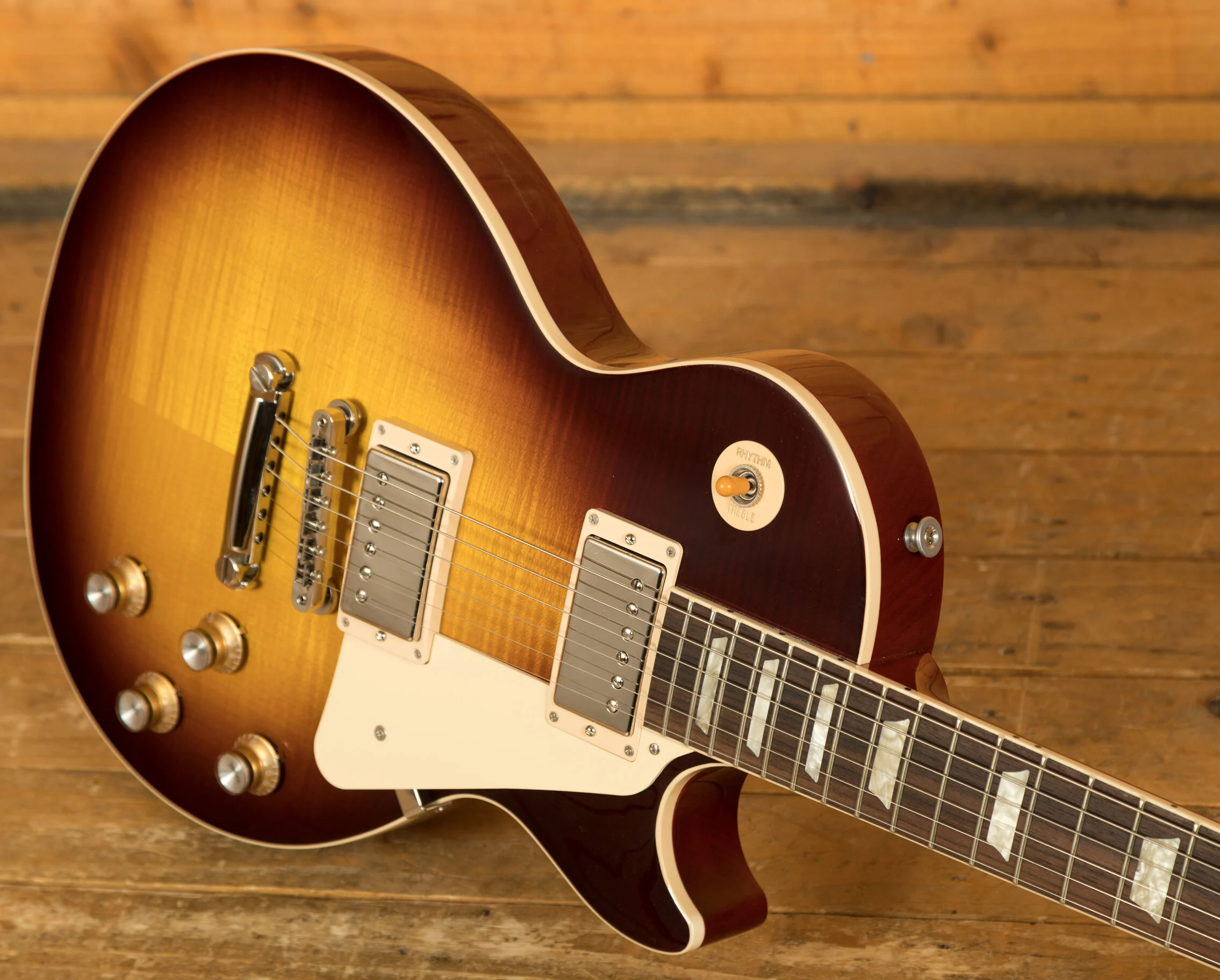 With a Mahogany body, this Les Paul benefits from a AA grade Maple top for the ultimate tonewood partnership. Rich and super resonant it offers premium tone and timeless aesthetics, while the Iced Tea finish looks a million dollars and really allows the wood to breathe and the natural tone to sing through.