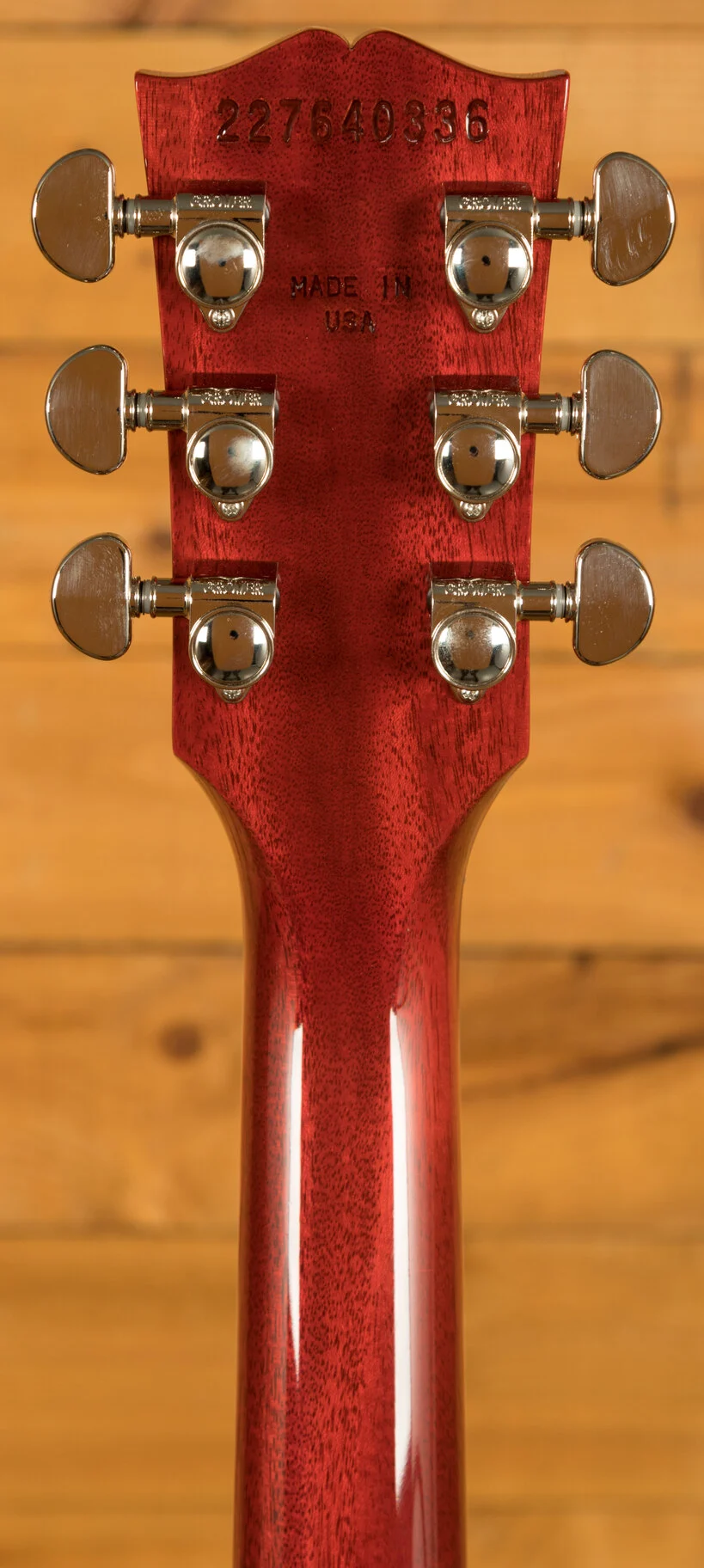The Mahogany neck is topped with a crisp Rosewood fingerboard with classic Gibson Trapezoid inlays, this guitar looks every bit the real deal. With a 24.75" scale length and a Slim Taper profile, it retains that classic Les Paul feel. The ABR1 Tune-O-Matic bridge and light weight tailpiece offer an authentic vintage vibe.