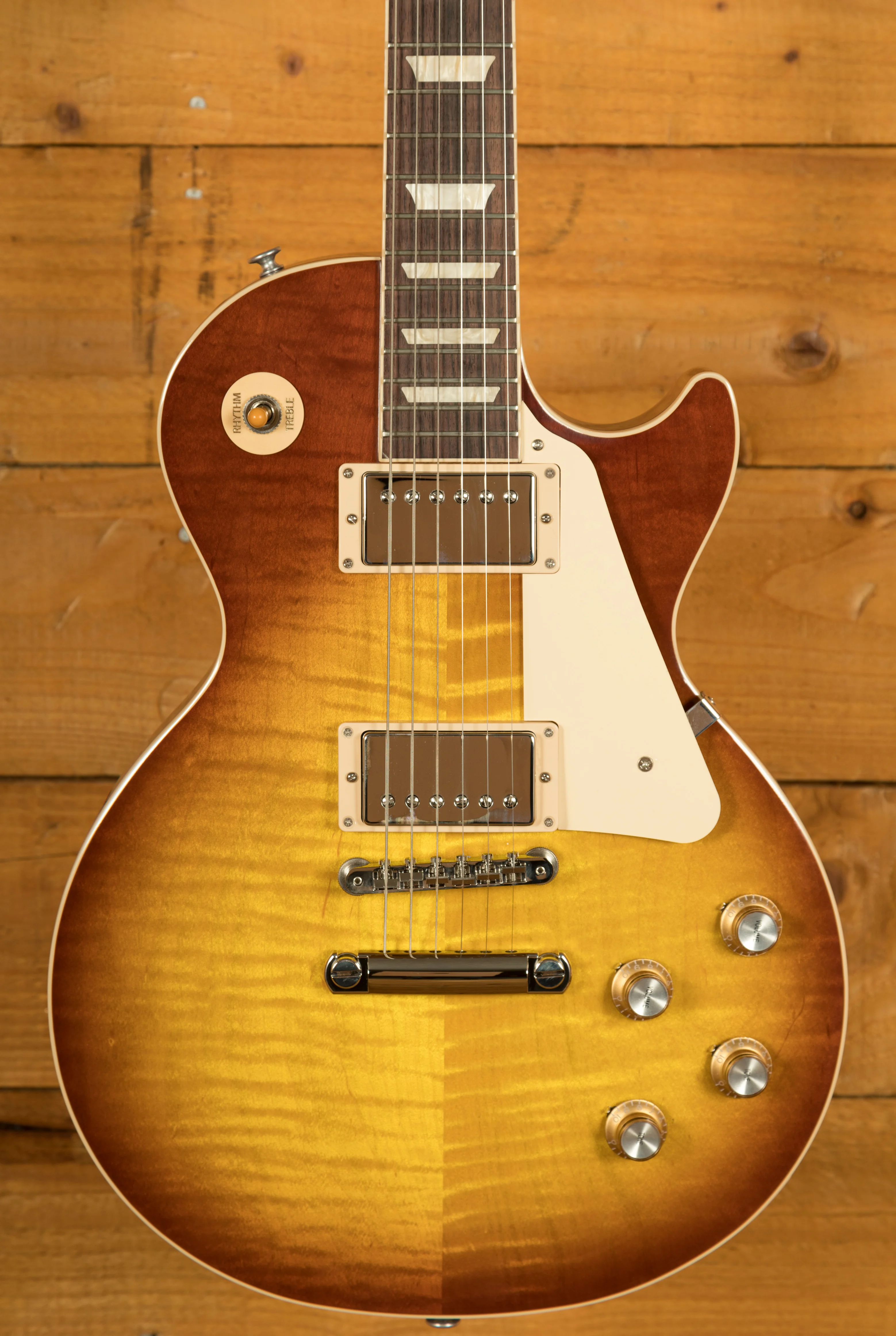 With a Mahogany body, this Les Paul benefits from a AA grade Maple top for the ultimate tonewood partnership. Rich and super resonant it offers premium tone and timeless aesthetics, while the Iced Tea finish looks a million dollars and really allows the wood to breathe and the natural tone to sing through.
