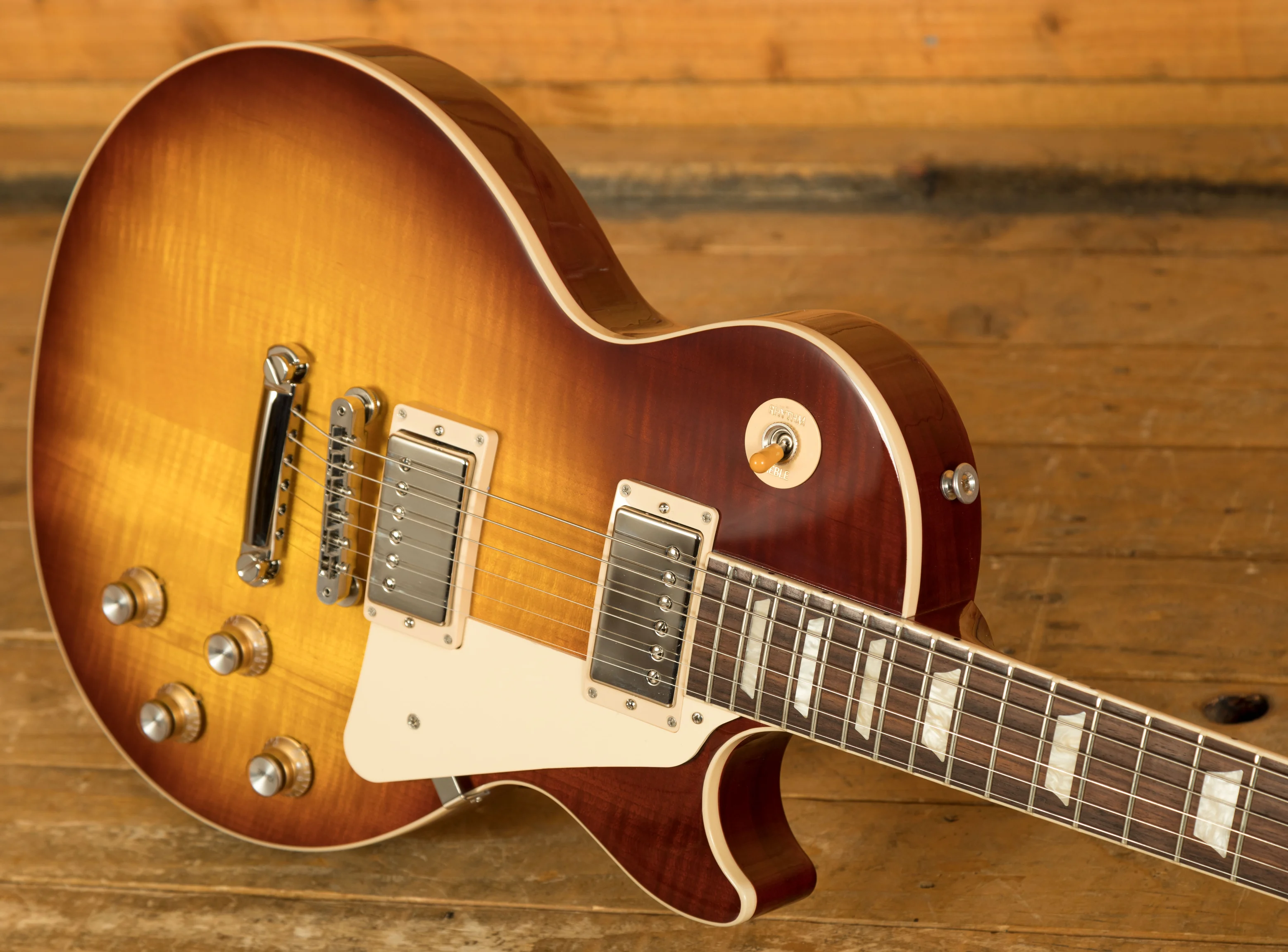 With a Mahogany body, this Les Paul benefits from a AA grade Maple top for the ultimate tonewood partnership. Rich and super resonant it offers premium tone and timeless aesthetics, while the Iced Tea finish looks a million dollars and really allows the wood to breathe and the natural tone to sing through.