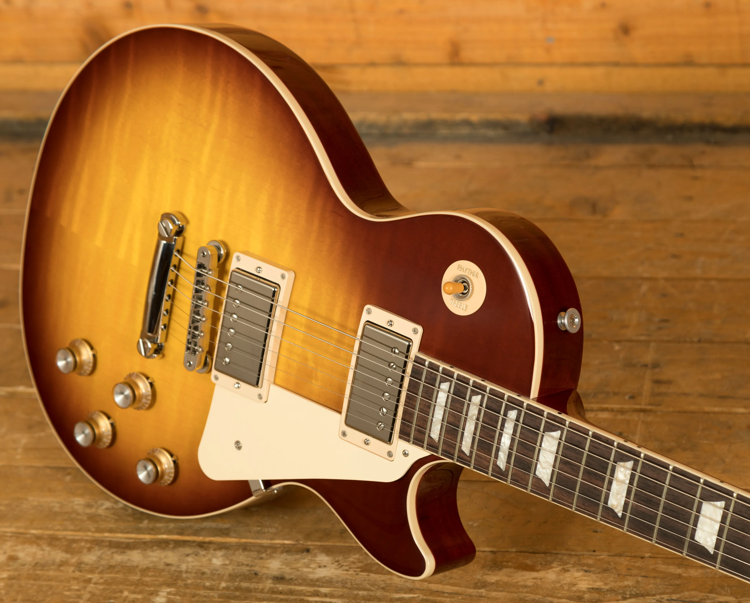 With a Mahogany body, this Les Paul benefits from a AA grade Maple top for the ultimate tonewood partnership. Rich and super resonant it offers premium tone and timeless aesthetics, while the Iced Tea finish looks a million dollars and really allows the wood to breathe and the natural tone to sing through.