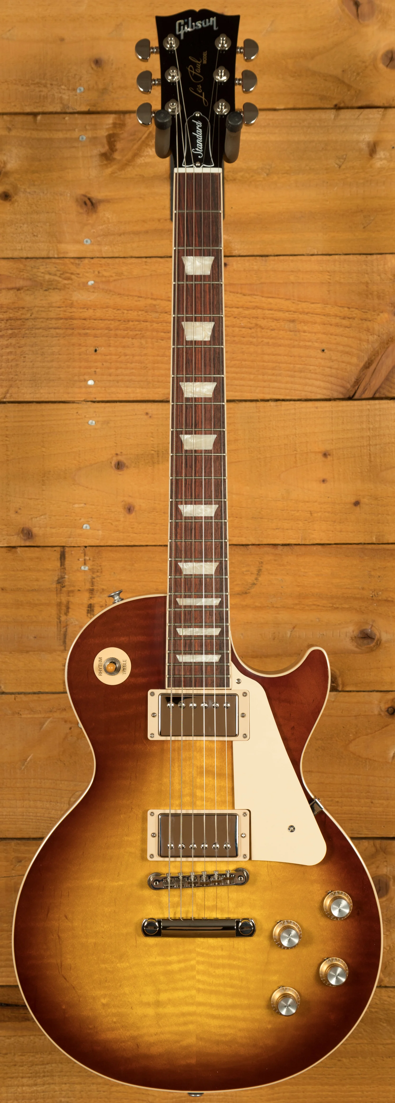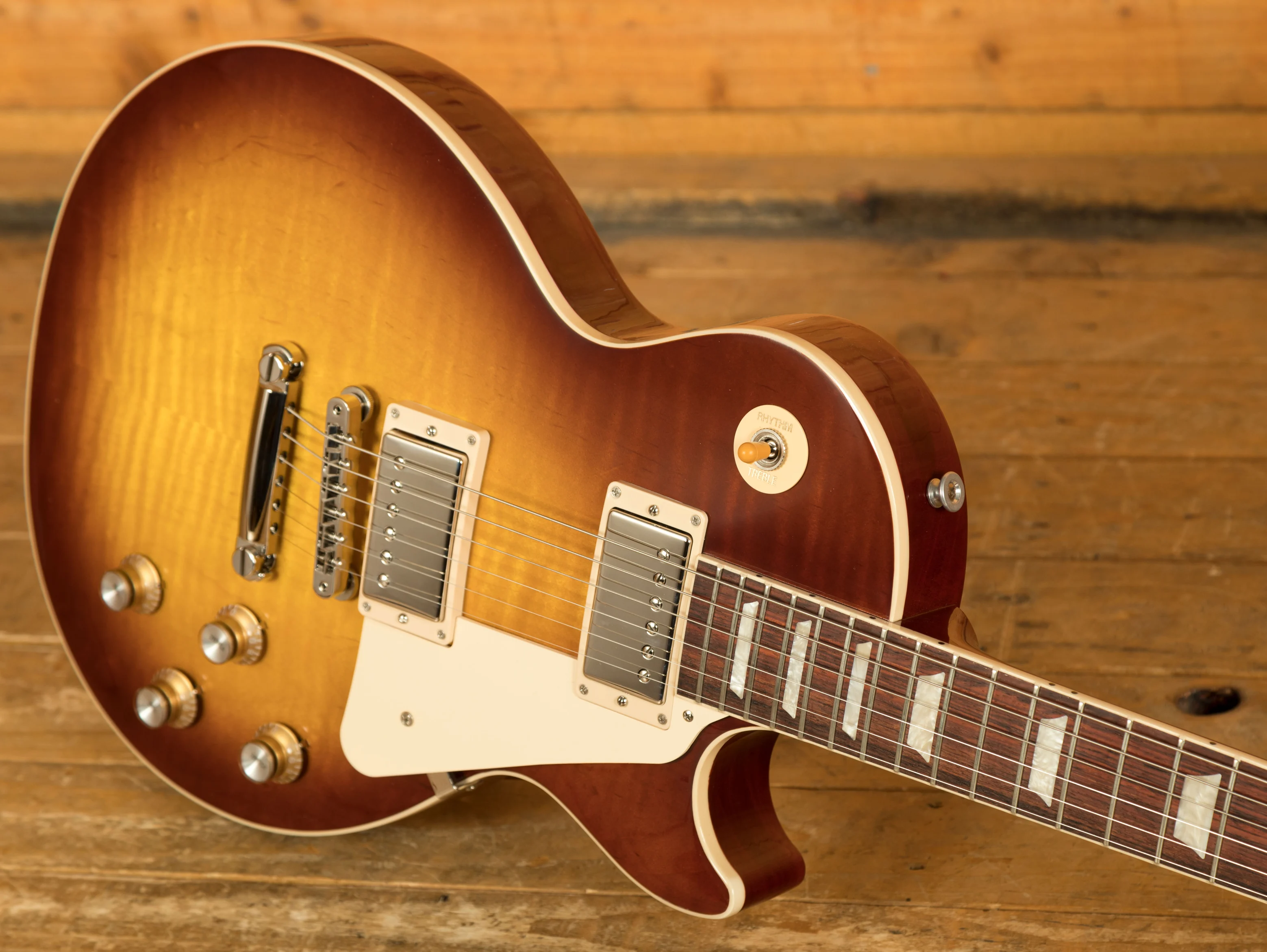 With a Mahogany body, this Les Paul benefits from a AA grade Maple top for the ultimate tonewood partnership. Rich and super resonant it offers premium tone and timeless aesthetics, while the Iced Tea finish looks a million dollars and really allows the wood to breathe and the natural tone to sing through.