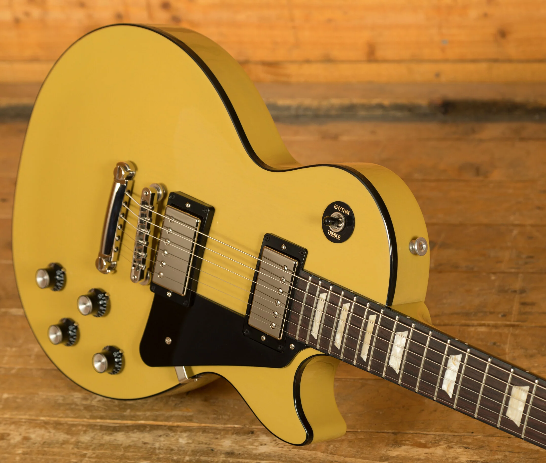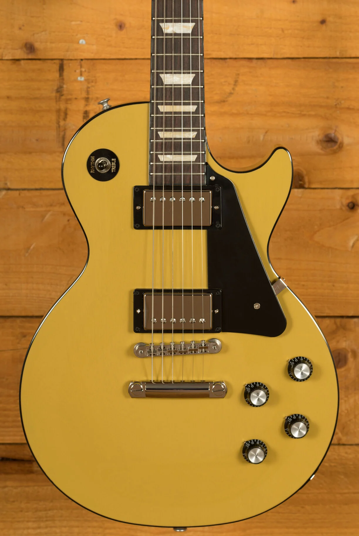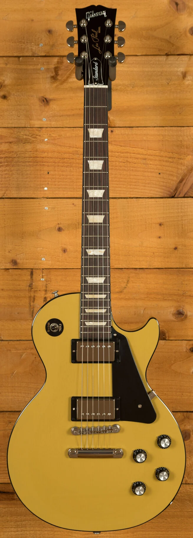 With an all-Mahogany body, this Les Paul features slightly warmer tone alongside a more focused mid-range when compared to a traditional Les Paul. The classic Gibson TV Yellow finish complete with black binding is the perfect choice for this range. It perfectly complements the guitars stripped back and looks super slick!Its Rich and super resonant, it offers premium tone and timeless aesthetics, whilst the nitro finish really allows the wood to breathe and the natural tone to sing through.