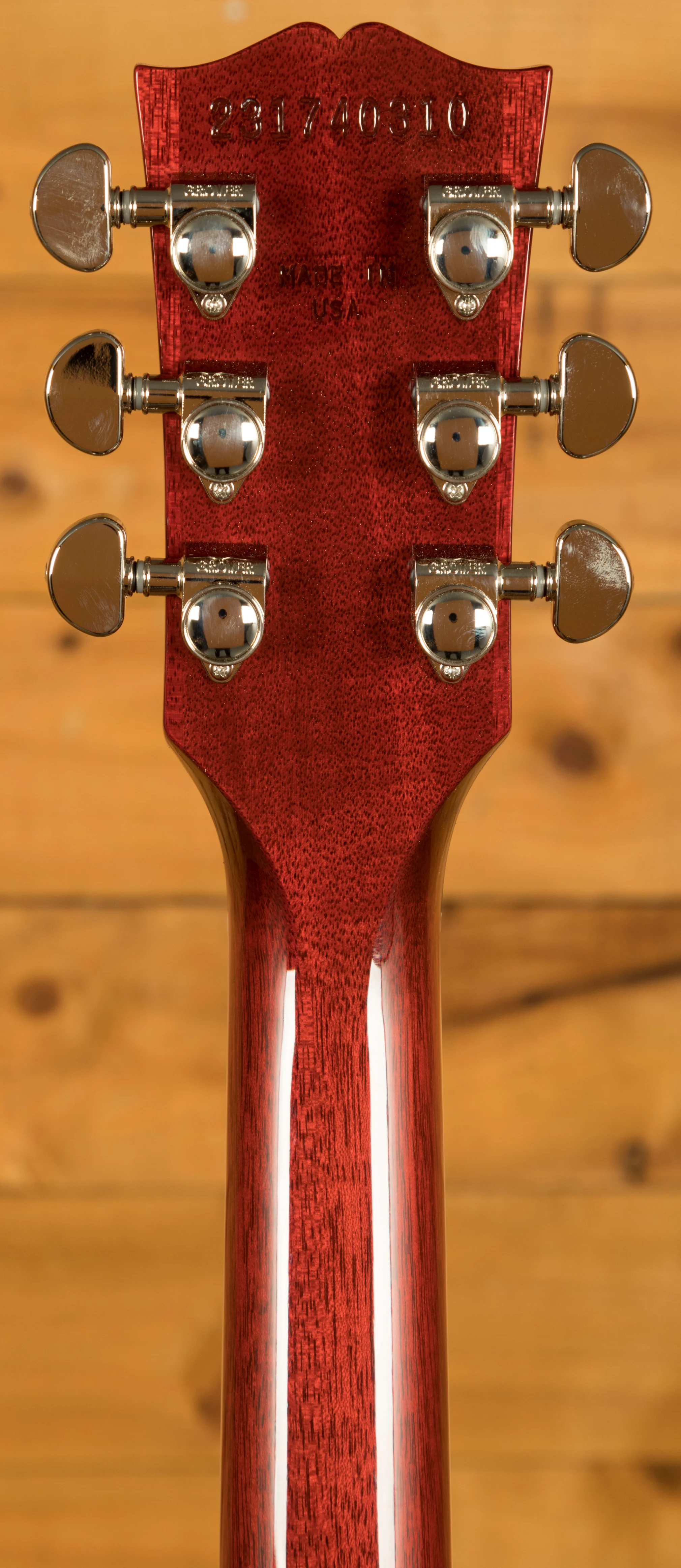 The Mahogany neck is topped with a crisp Rosewood fingerboard with classic Gibson Trapezoid inlays, this guitar looks every bit the real deal. With a 24.75" scale length and a Slim Taper profile, it retains that classic Les Paul feel. The ABR1 Tune-0-Matic bridge and light weight tailpiece offer an authentic vintage vibe.