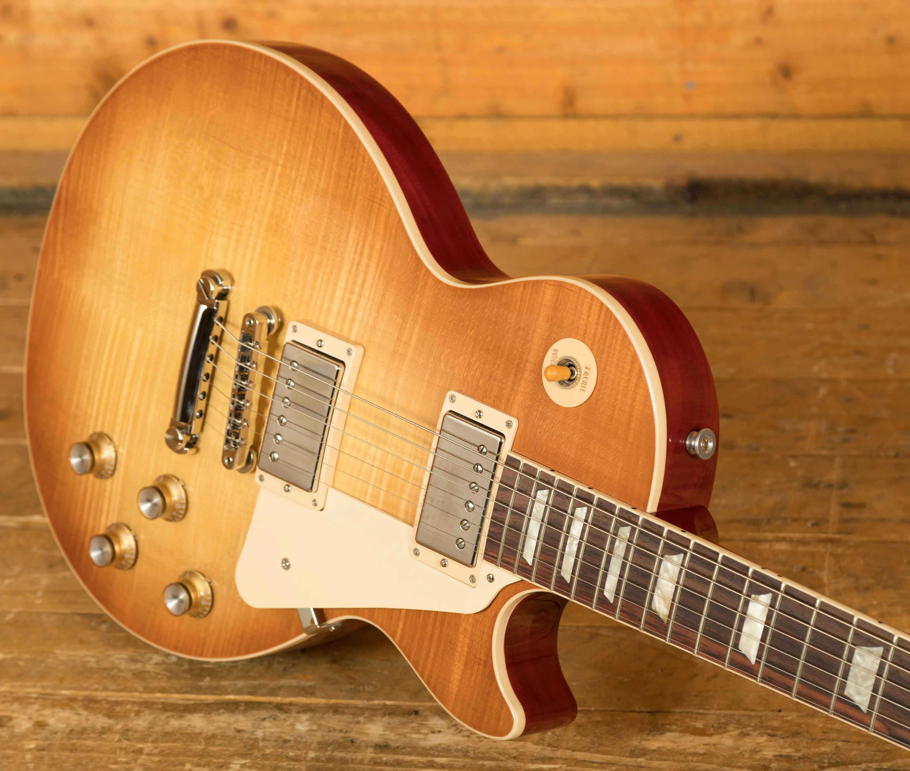 With a Mahogany body, this Les Paul benefits from a AA grade Maple top for the ultimate tonewood partnership. Rich and super resonant it offers premium tone and timeless aesthetics, while the Unburst finish looks a million dollars and really allows the wood to breathe and the natural tone to sing through.