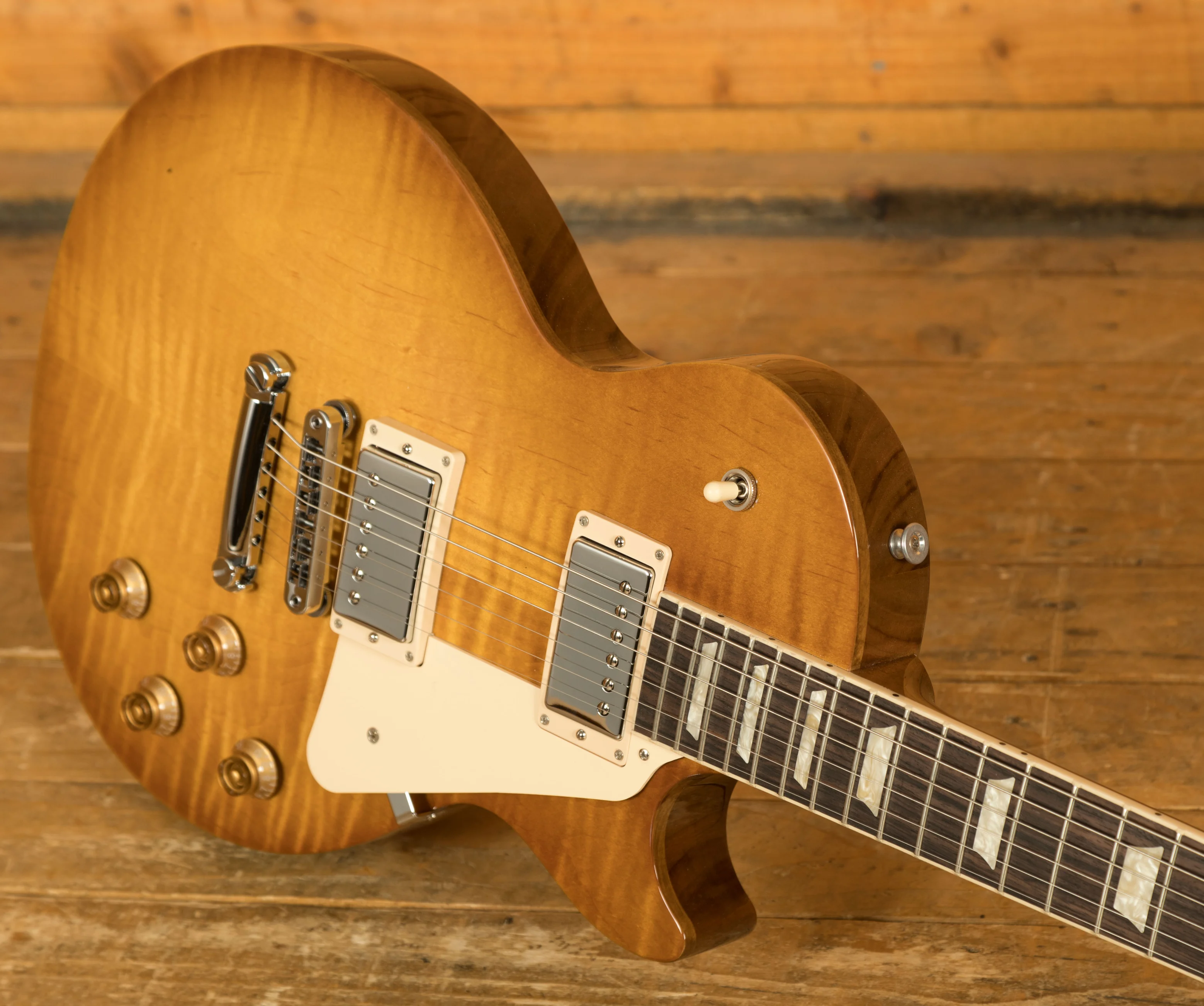 The Les Paul Studio Figured begins with an Ultra Modern weight-relieved Mahogany body, making it lighter and more comfortable to play, no matter how long the gig or jam session runs. The carved, AA figured maple cap adds brightness and definition to the overall tone and combines perfectly with the warmth and midrange punch from the mahogany body for that legendary Les Paul sound - whilst giving that classic Les Paul look.