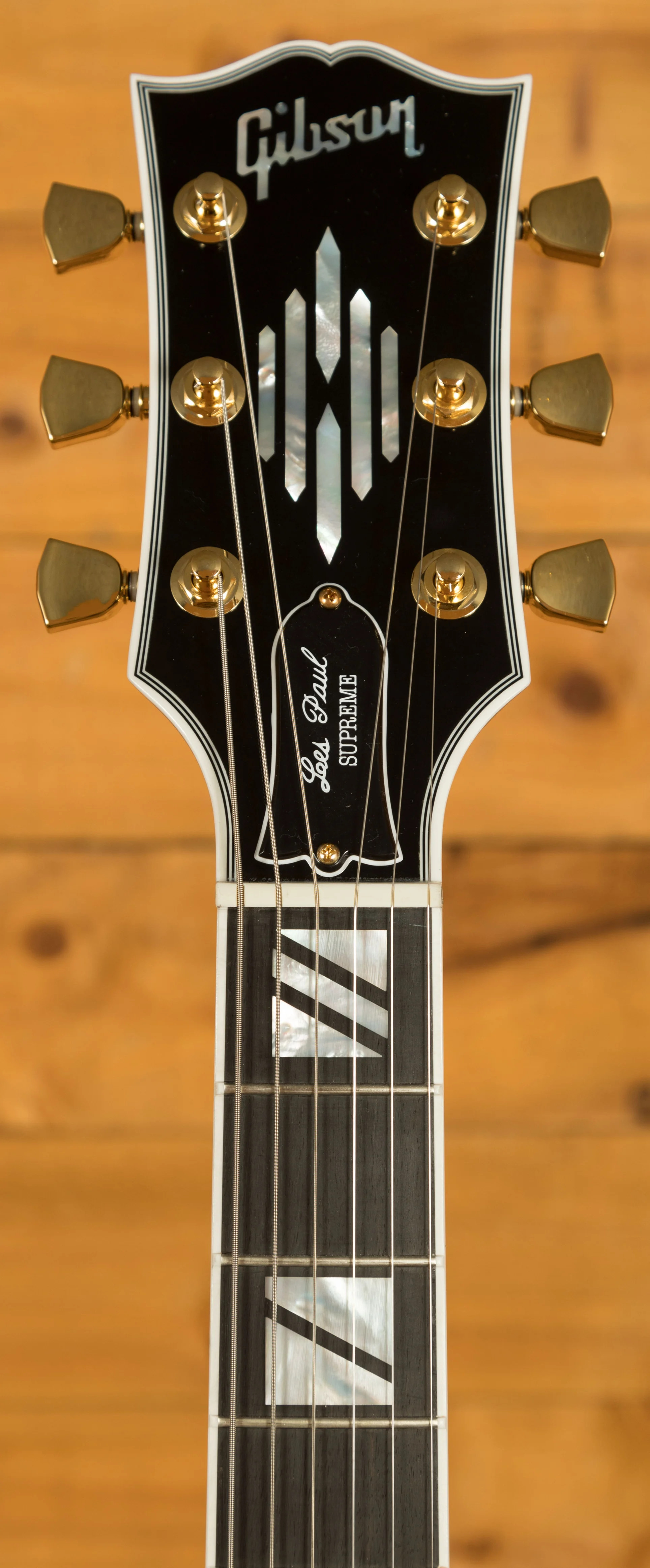 Classic Gibson tones come courtesy of Burstbucker Pro and Burstbucker Pro + humbuckers which provide a clear yet powerful tone. These pickups are paired with push/pull Volume and Tone pots for flexible coil tap, phase and pure bypass switching. Finished off with a Tune-o-Matic bridge and locking Grover tuners this Les Paul Supreme offers flawless tuning stability. It's an elegant powerhouse well deserving of the Les Paul name.