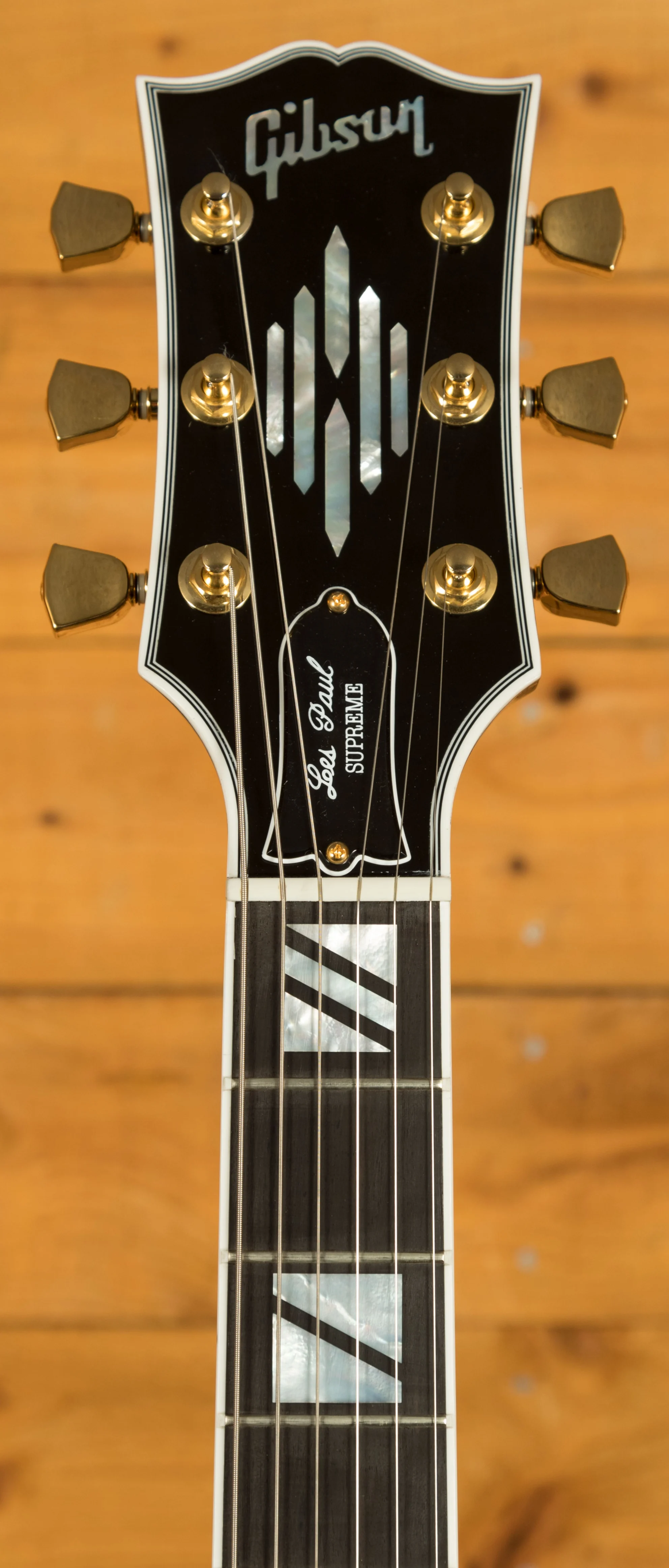 Classic Gibson tones come courtesy of Burstbucker Pro and Burstbucker Pro + humbuckers which provide a clear yet powerful tone. These pickups are paired with push/pull Volume and Tone pots for flexible coil tap, phase and pure bypass switching. Finished off with a Tune-o-Matic bridge and locking Grover tuners this Les Paul Supreme offers flawless tuning stability. It's an elegant powerhouse well deserving of the Les Paul name.