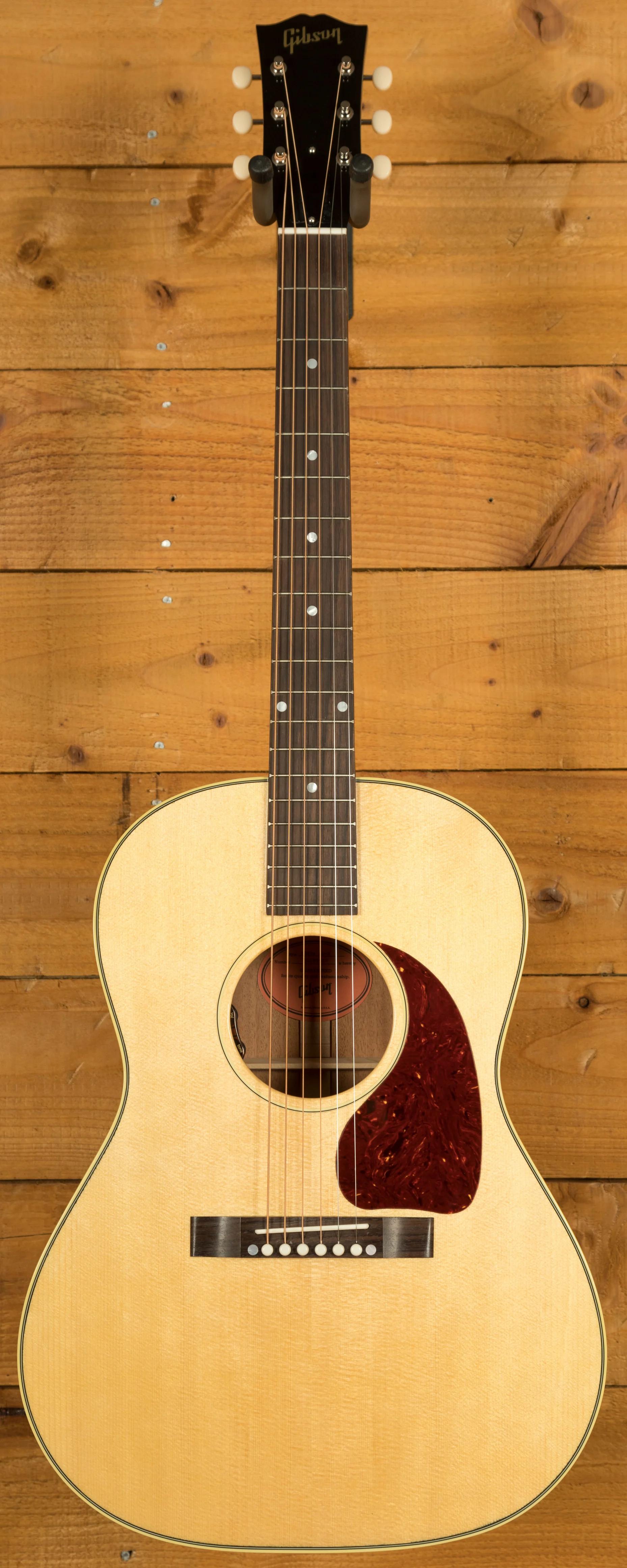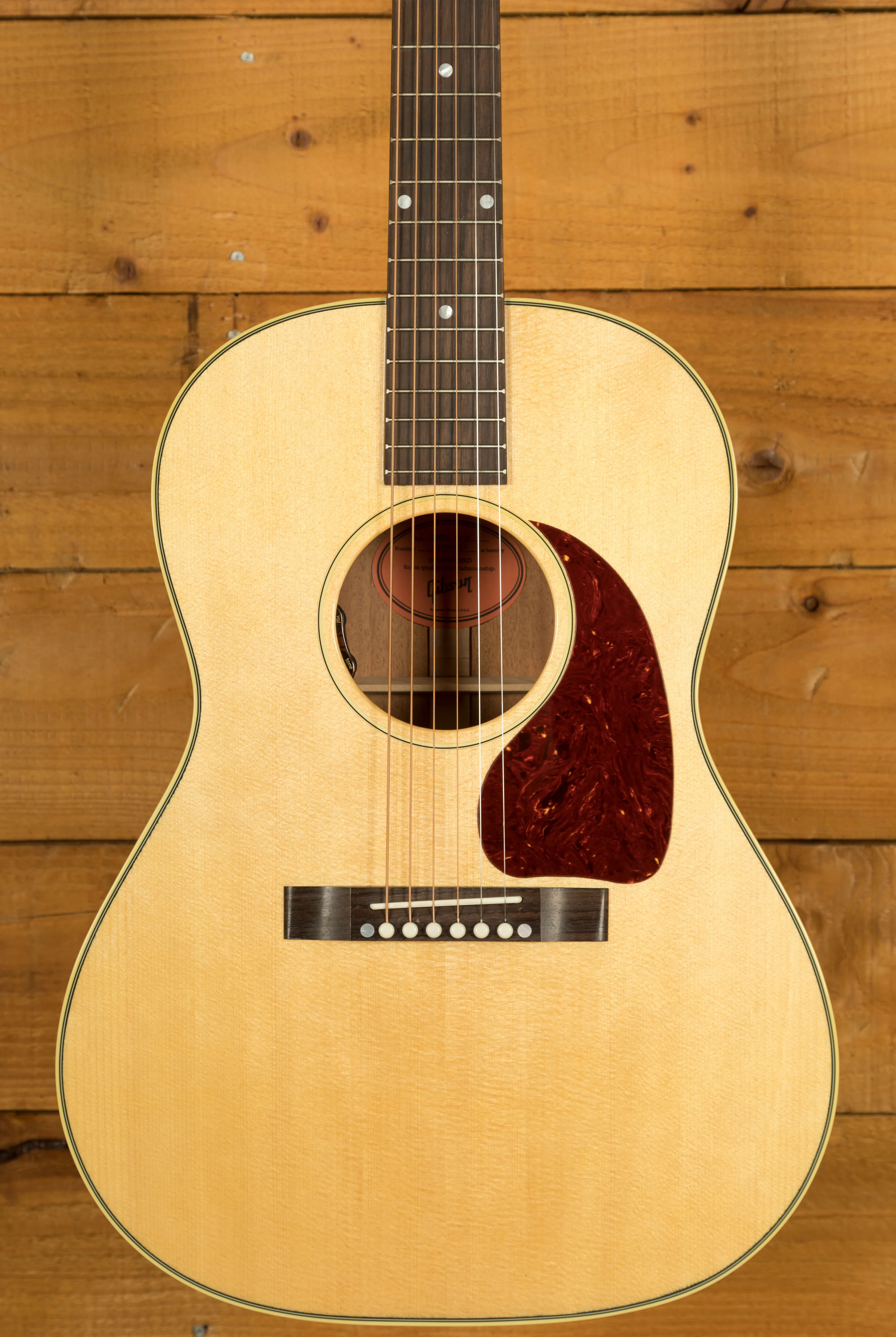 To suit modern performance needs, the LG 2 50s Original is fitted with an L.R. Baggs VTC pickup system with discreet volume and tone controls mounted inside the soundhole. This makes the guitar ready for both stage and studio straight out of its included Gibson hard case, without compromising its classic vintage look and feel.