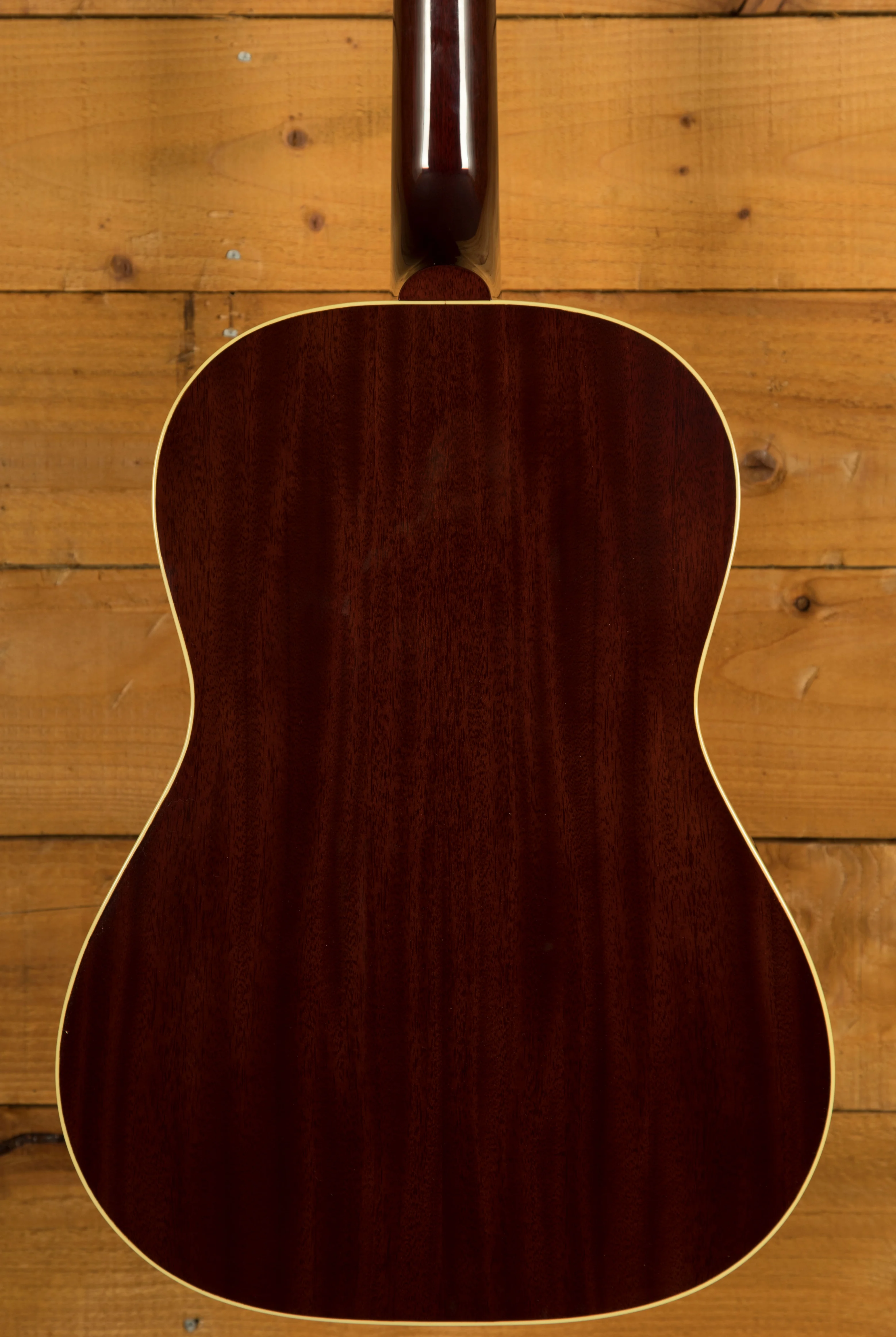 This LG 2 features a solid Sitka spruce top supported by traditional scalloped X bracing, paired with solid mahogany back and sides. This classic tonewood combination delivers a warm, rich, and resonant sound with plenty of clarity and balance across the frequency range. The spruce top provides brightness and articulation, while the mahogany adds depth, and a strong midrange. The body is accented with 3-ply top and 1-ply back binding, which really helps to add to the vintage look.