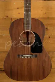 The LG-2 All-Mahogany Faded features a sloped rectangular rosewood bridge with a closed-slot design and a bone saddle for optimal tone and sustain. The bridge pins are made from TUSQ, ensuring consistent performance and clarity. Grover strap tuners with white buttons provide reliable tuning stability, while the teardrop pickguard completes the look with a touch of vintage character.