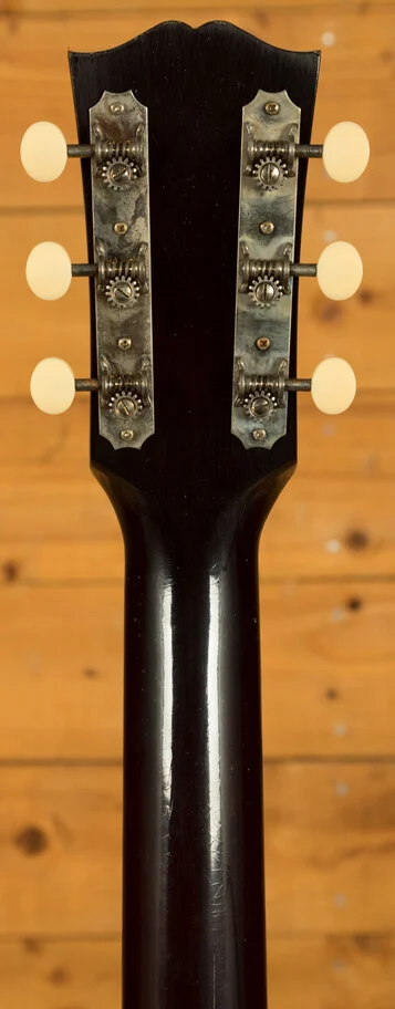 The nut and saddle are both made from bone, which is a traditional material known for its contribution to clear and sustained tone. The nut width is 1.724 inches. The bridge is made of rosewood with a rectangular open slot design. The tuning machines are strap-style open-back with aged cream buttons. The guitar also features a tear drop tortoise pickguard with an aged appearance. The finish is a Murphy Lab Light Aged nitrocellulose lacquer, applied by the skilled artisans at the Murphy Lab. This ageing process simulates decades of light play wear and gives the guitar the look and feel of a well-preserved vintage instrument. The hardware is also lightly aged to complement the finish.