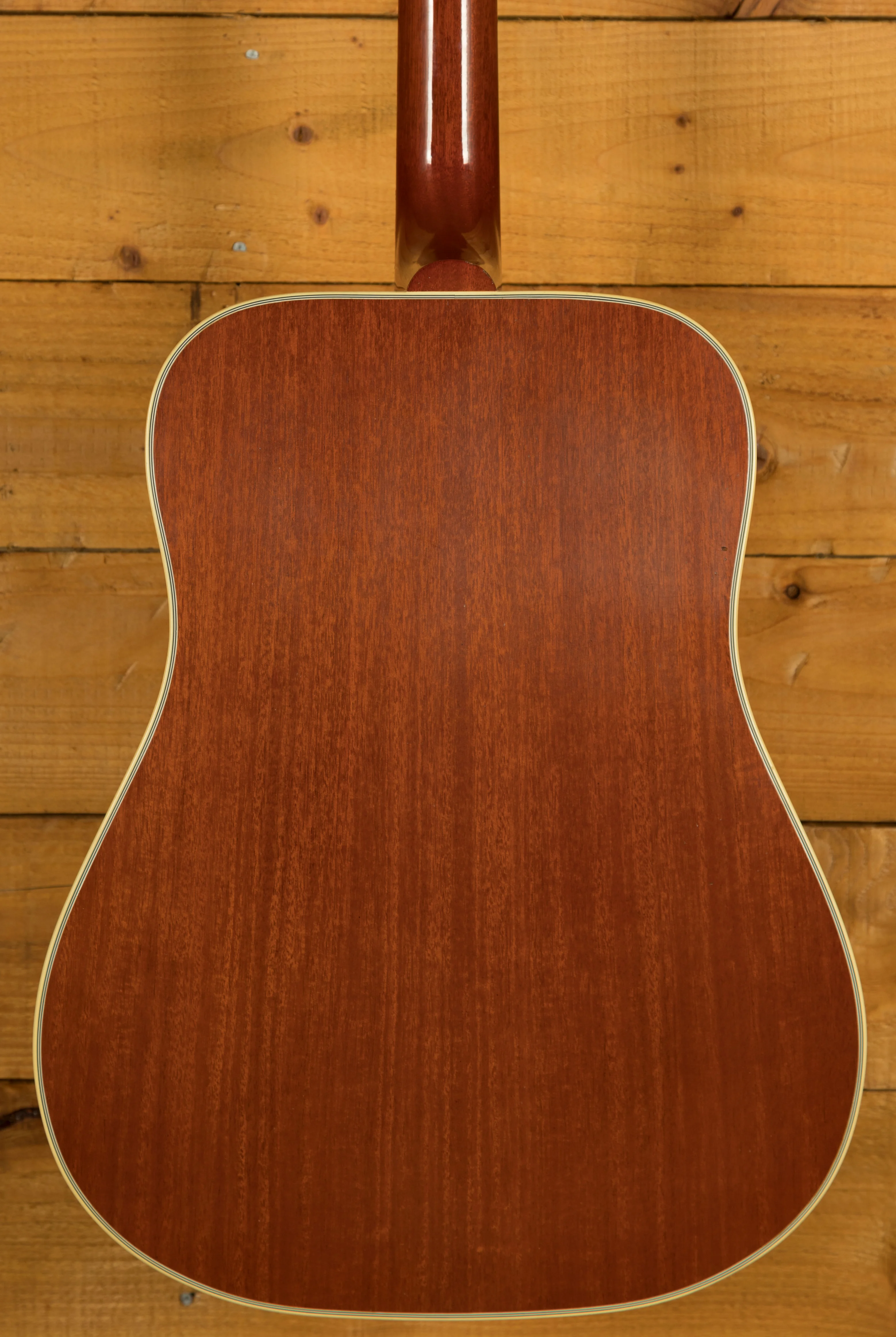 The Gibson Hummingbird is probably one of the most iconic acoustic guitars ever produced, with its rich tone and versatile nature it's a real players favourite. This Murphy Lab Hummingbird pays homage to the 1960’s edition of this legendary instrument. The larger Dreadnought body is beautifully crafted from super resonant Mahogany and boasts a thermally aged Sitka Spruce top. The aged Heritage Cherry finish is super vibrant and really does look the real deal, it perfectly complements what is possibly the most unique pickguard around!