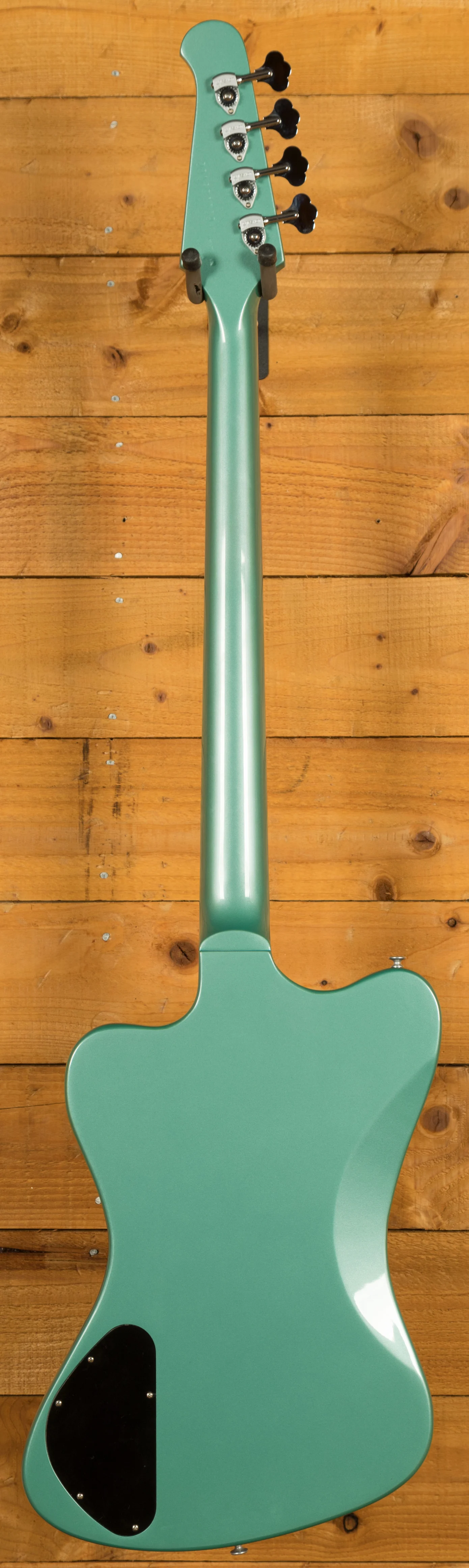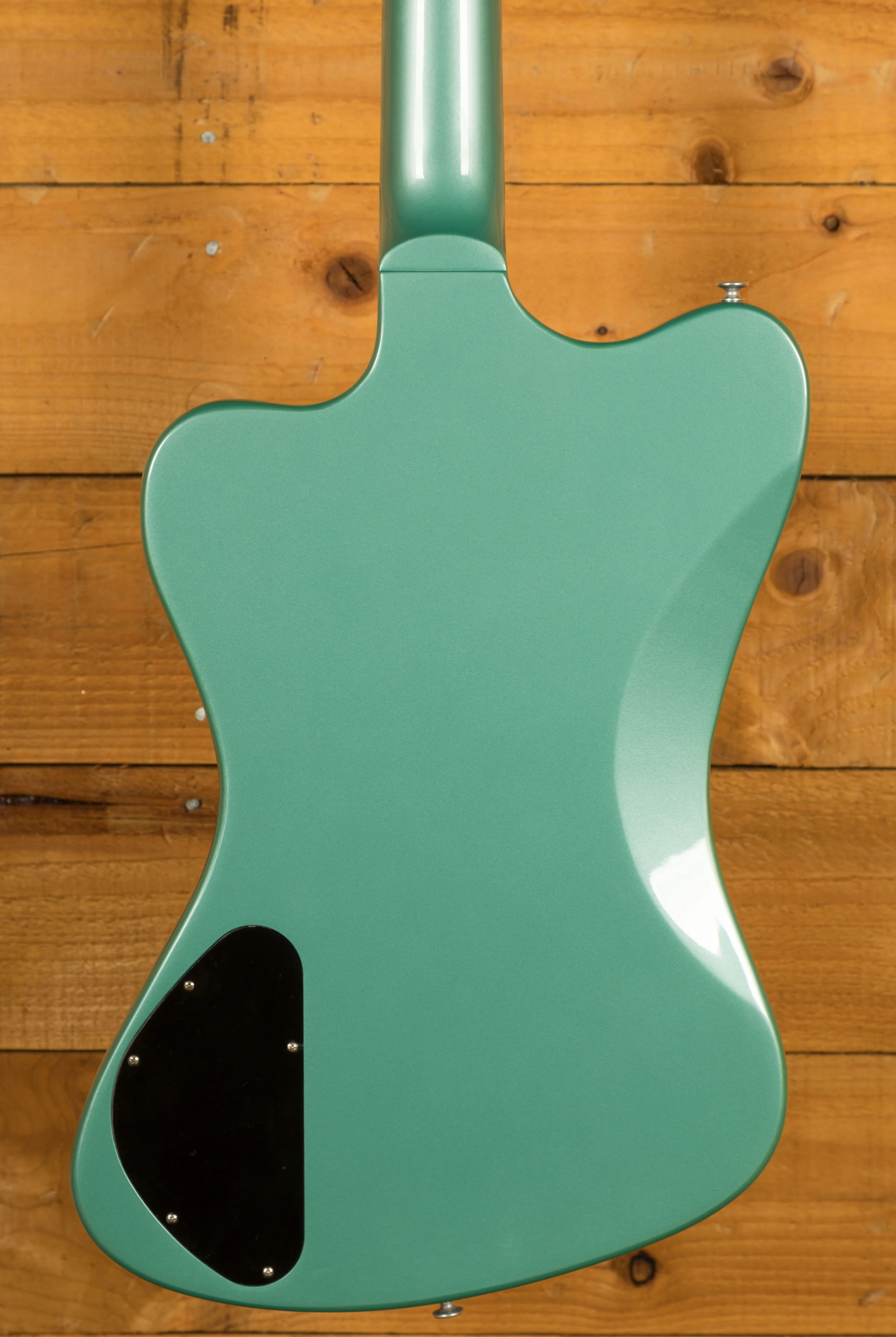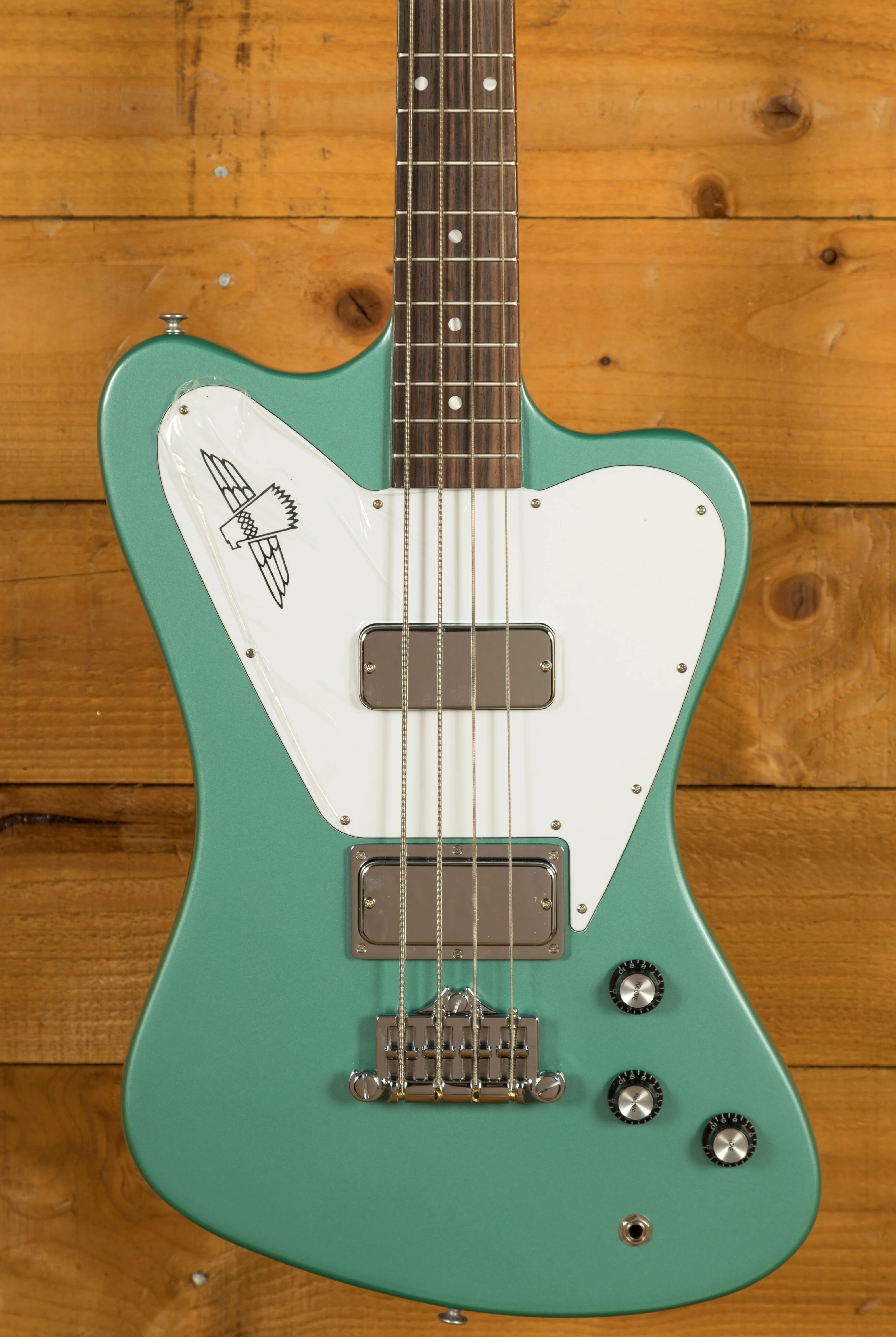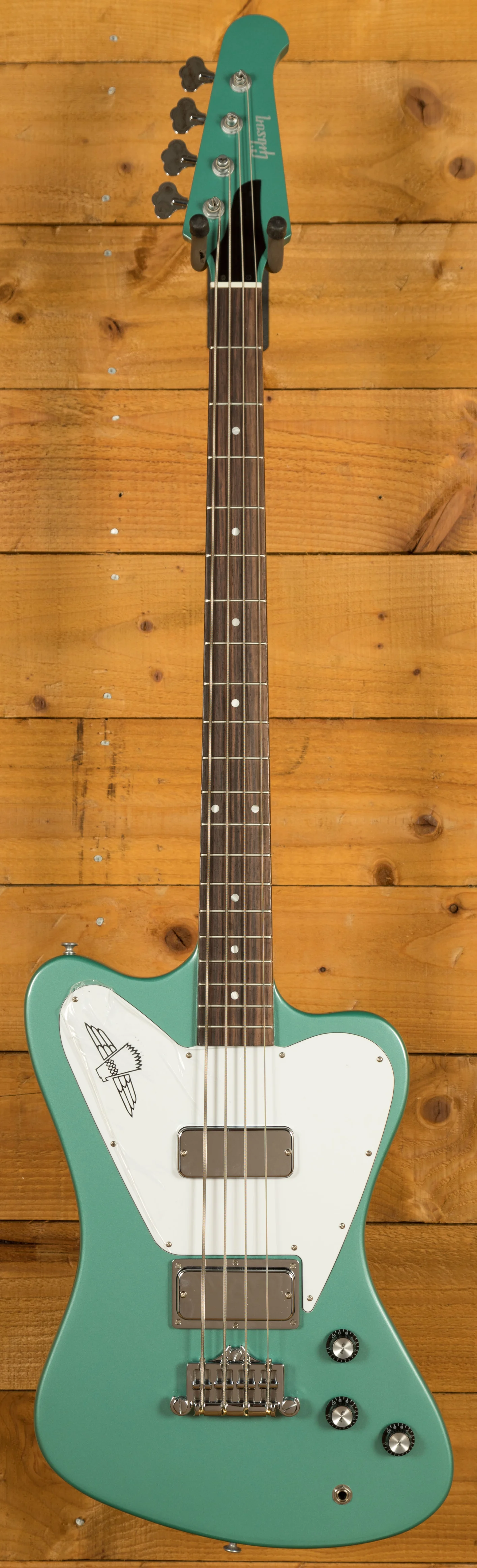 Crafted with a Non-Reverse mahogany body and a mahogany neck featuring a rosewood fretboard and 20 medium jumbo frets, this bass delivers a robust and resonant tone. With a comfortable 34" scale length and a 12" fingerboard radius paired with a 1.6" nut width, playing this bass feels effortless and natural. The stunning Inverness Green finish and the iconic Thunderbird graphic on the three-ply white pickguard add a touch of visual flair to this instrument.