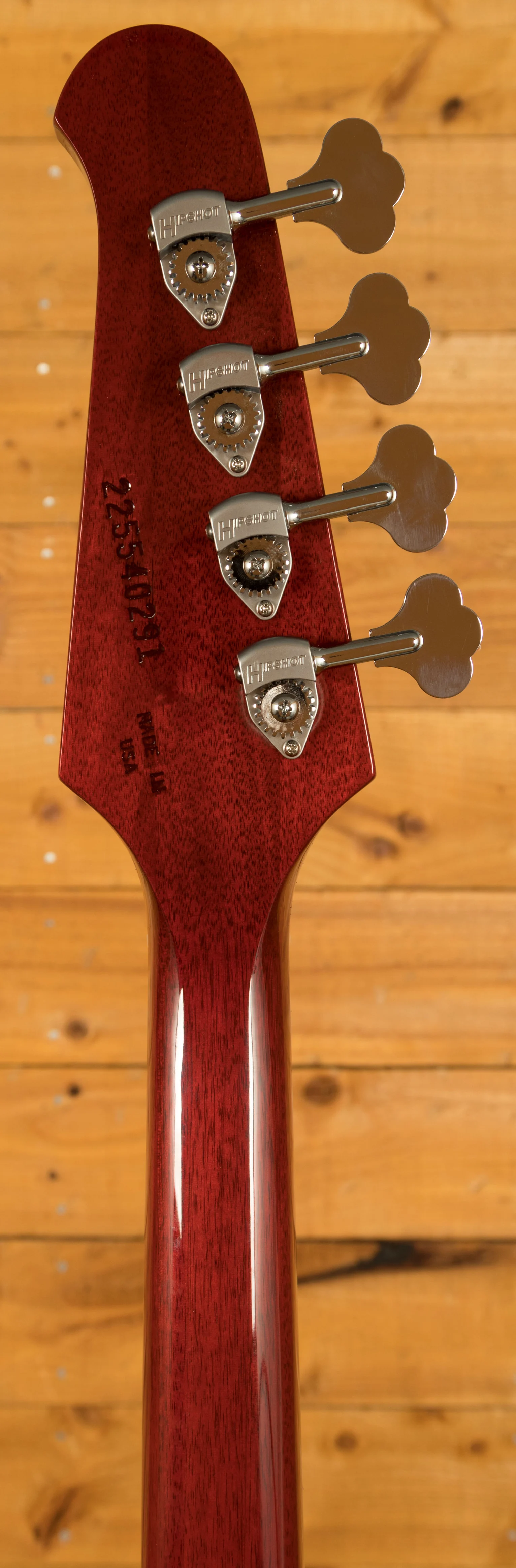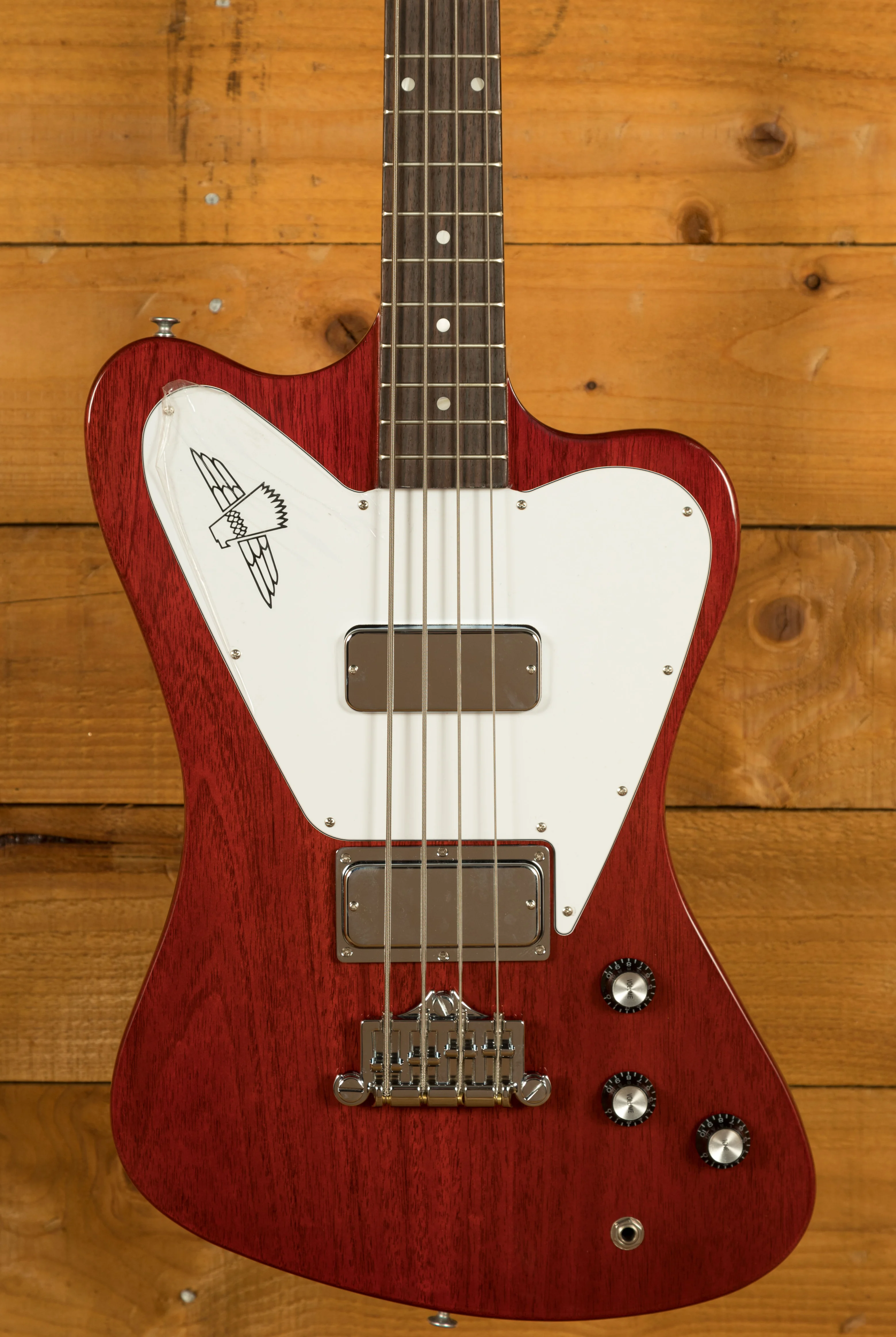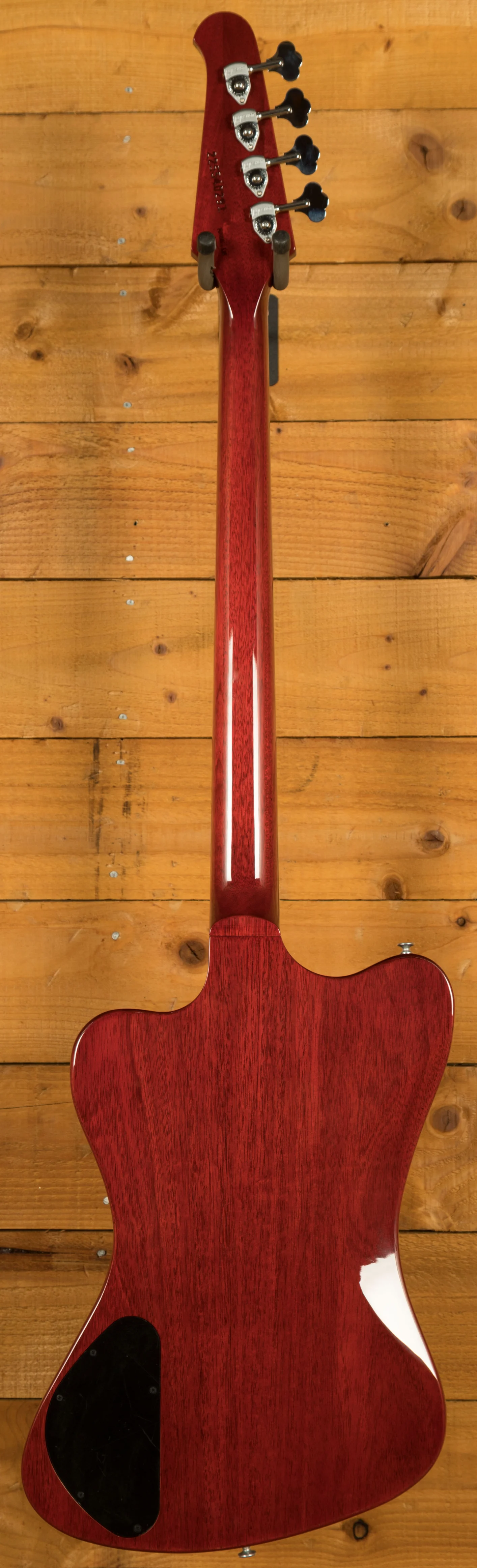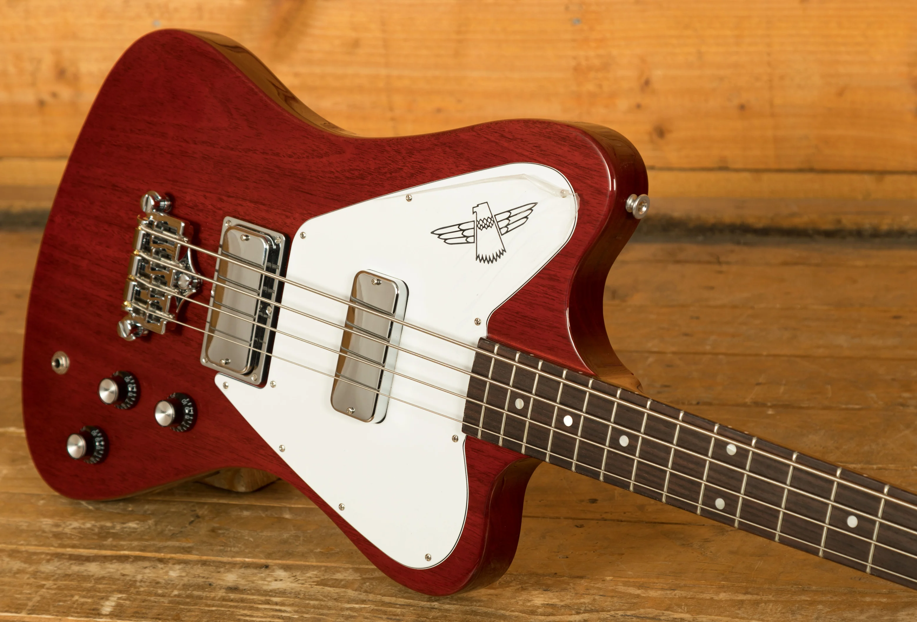 Crafted with a Non-Reverse mahogany body and a mahogany neck featuring a rosewood fretboard and 20 medium jumbo frets, this bass delivers a robust and resonant tone. With a comfortable 34" scale length and a 12" fingerboard radius paired with a 1.6" nut width, playing this bass feels effortless and natural. The stunning Vintage Cherry finish and the iconic Thunderbird graphic on the three-ply white pickguard add a touch of visual flair to this instrument.