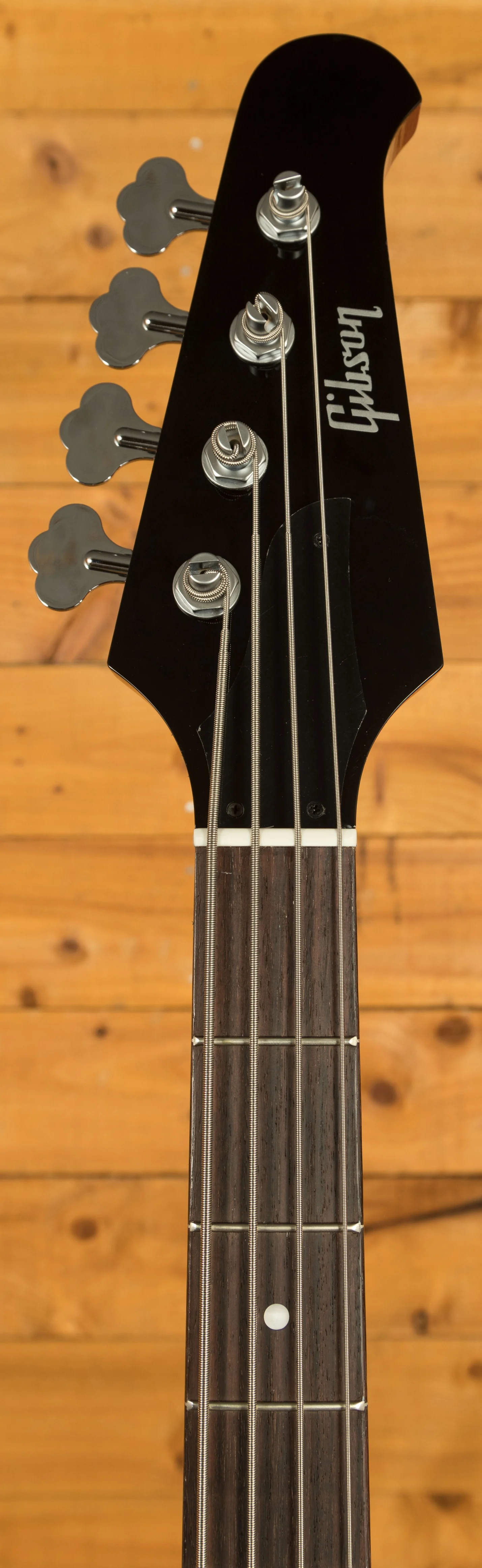 Equipped with a Graph Tech nut and a 3-point adjustable bridge, the Non-Reverse Thunderbird ensures optimal action and intonation adjustment for a customized playing experience. The Hipshot Ultralite tuning machines not only offer precise and stable tuning but also contribute to improved balance by keeping headstock weight to a minimum. Experience the timeless appeal and exceptional performance of the Gibson Non-Reverse Thunderbird Bass for yourself.