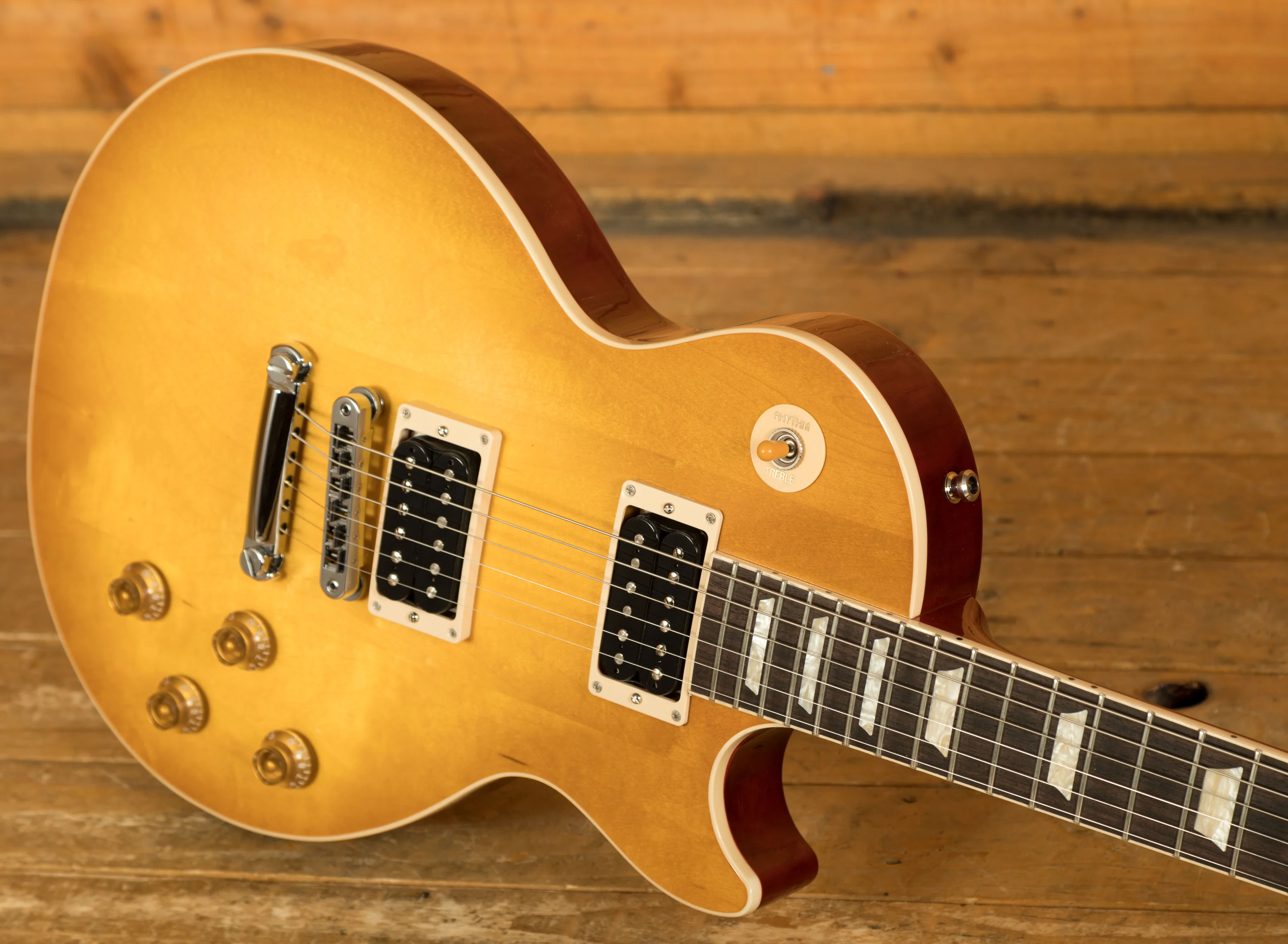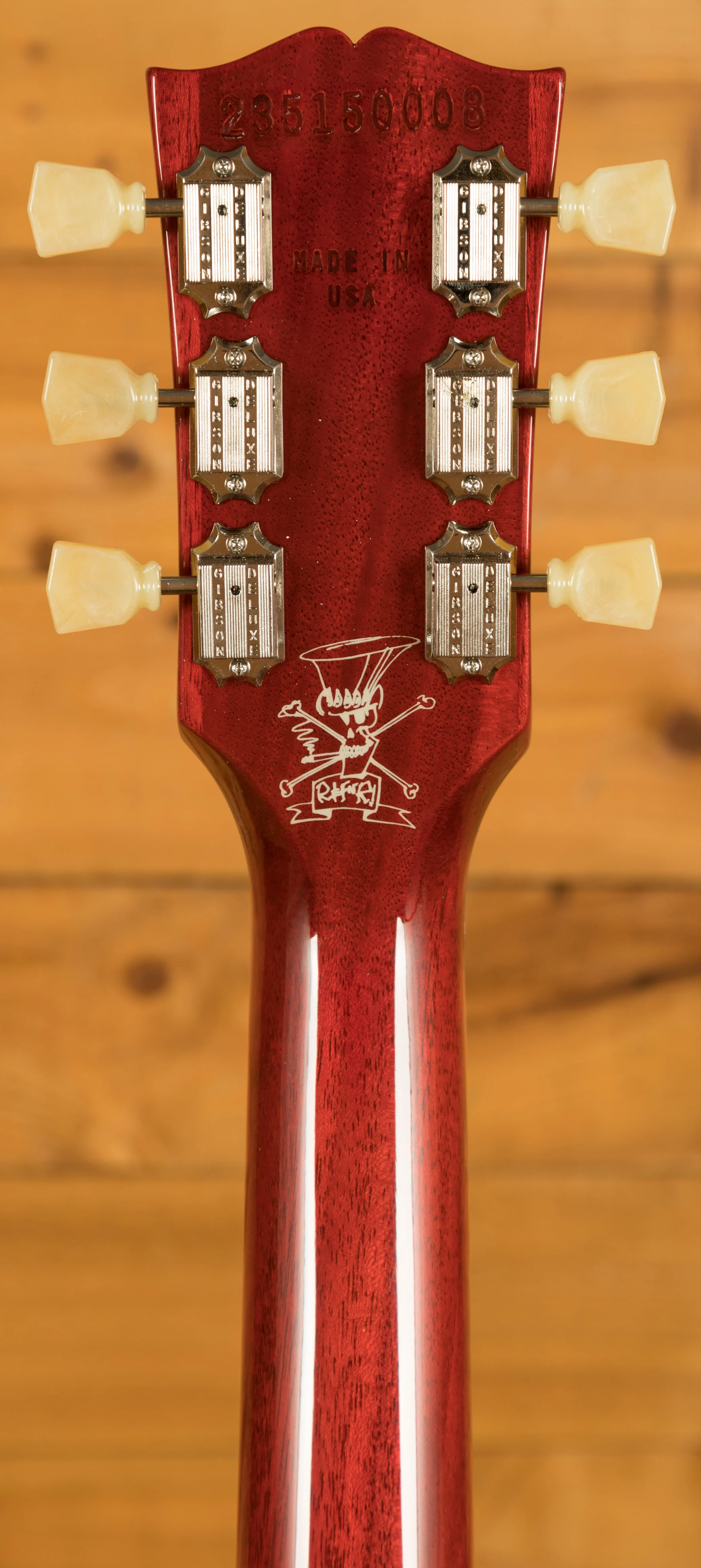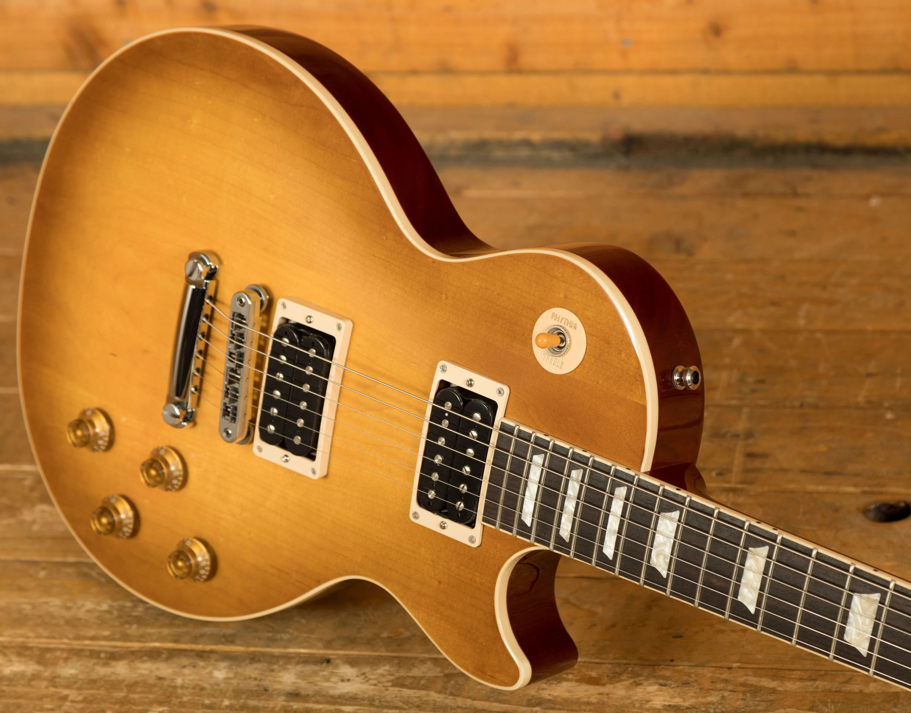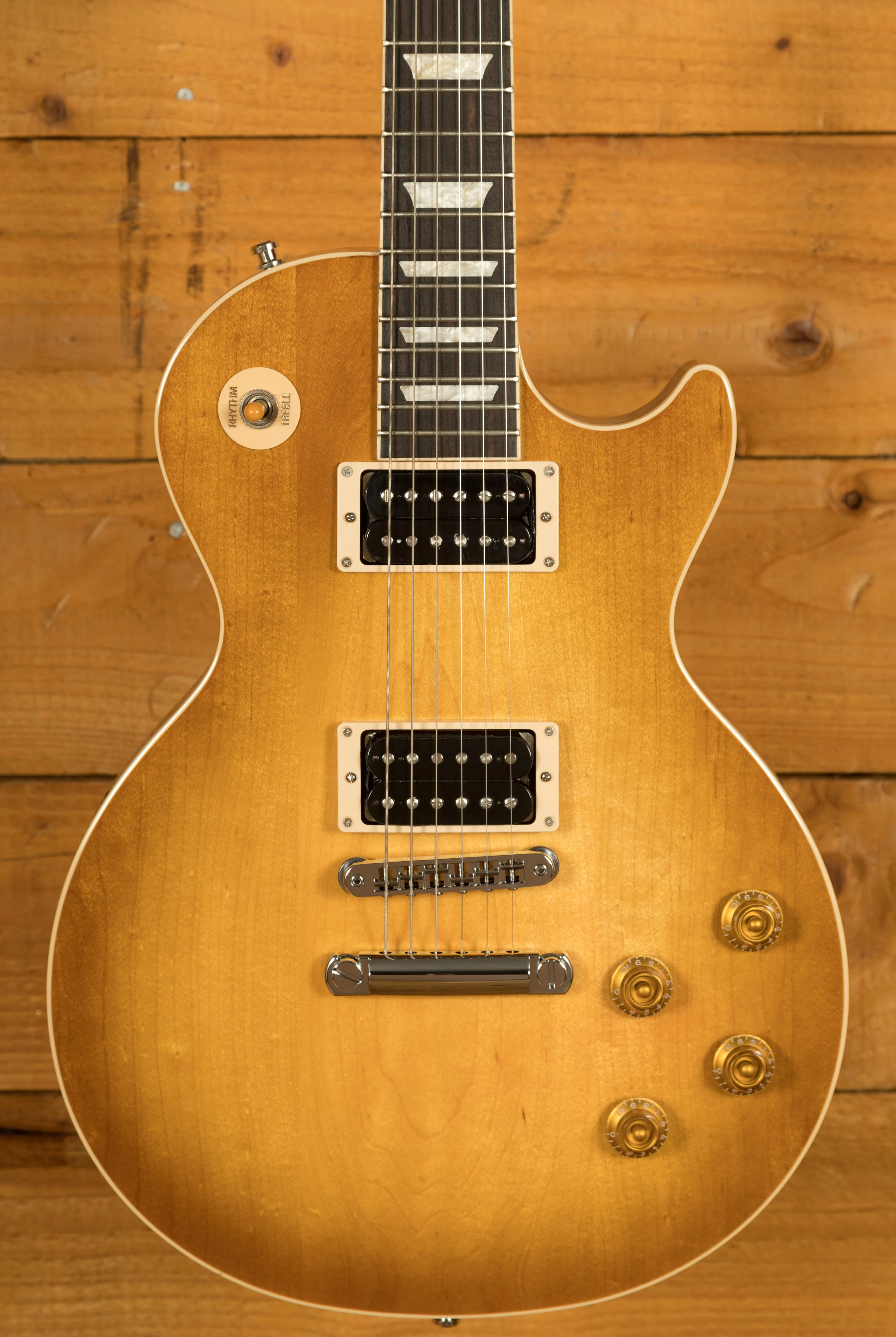 With a Solid Mahogany body it rocks a Maple top for that all time ultimate tonewood combination. One of Jessica's unique features is an of centre 3-piece Maple top, these USA guitars stay true to this feature. The Gloss Nitro Honey Burst finish is iconic, bold, vivid and the perfect look for a player as standout as Slash.