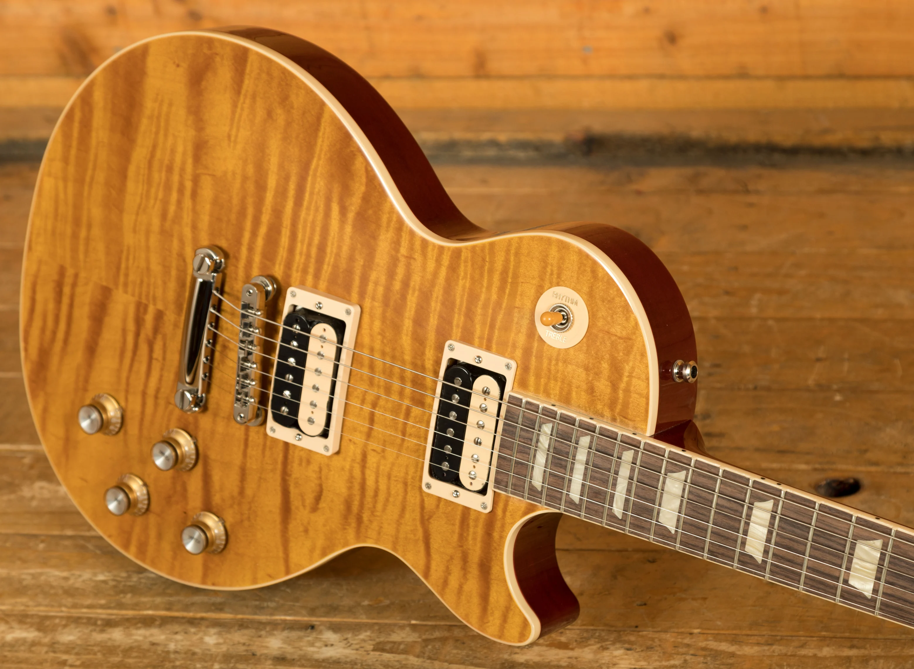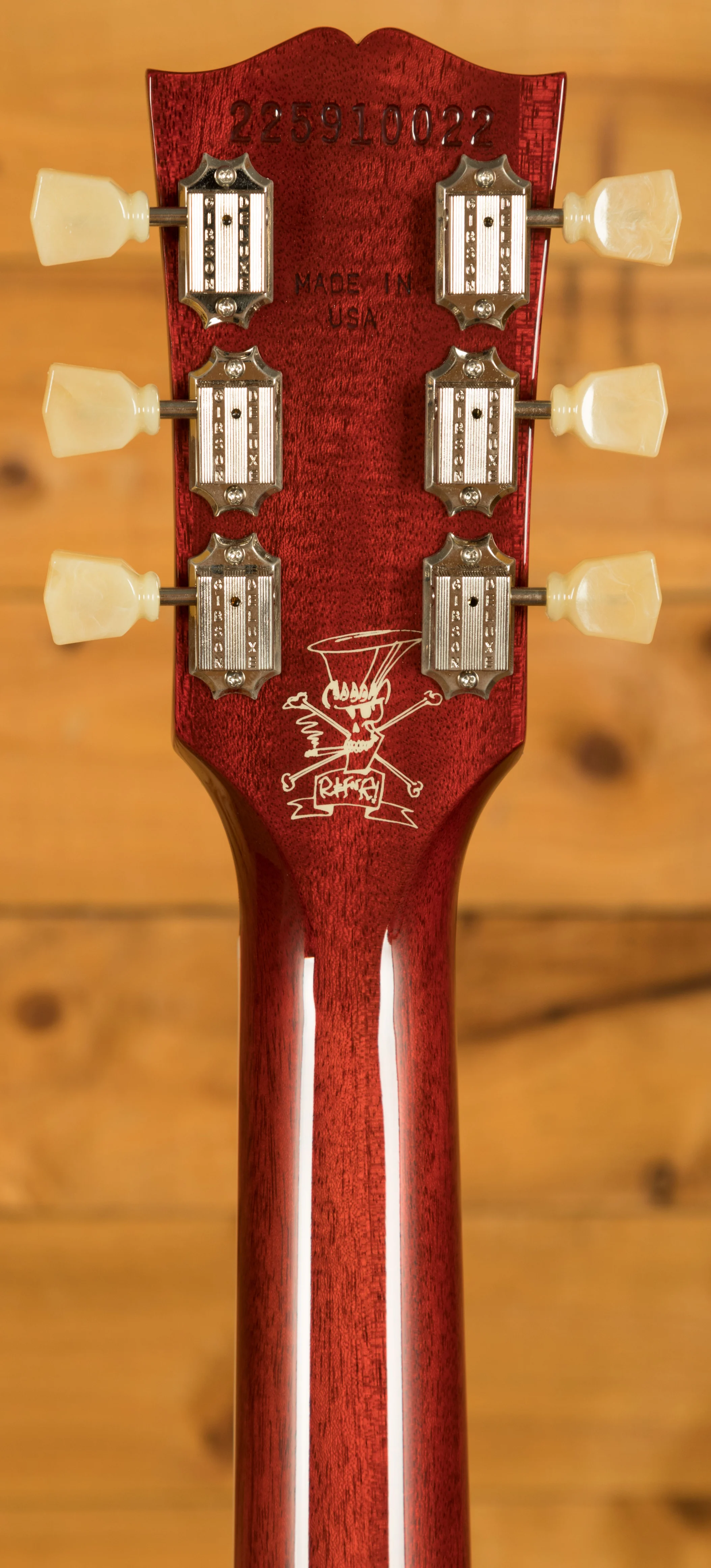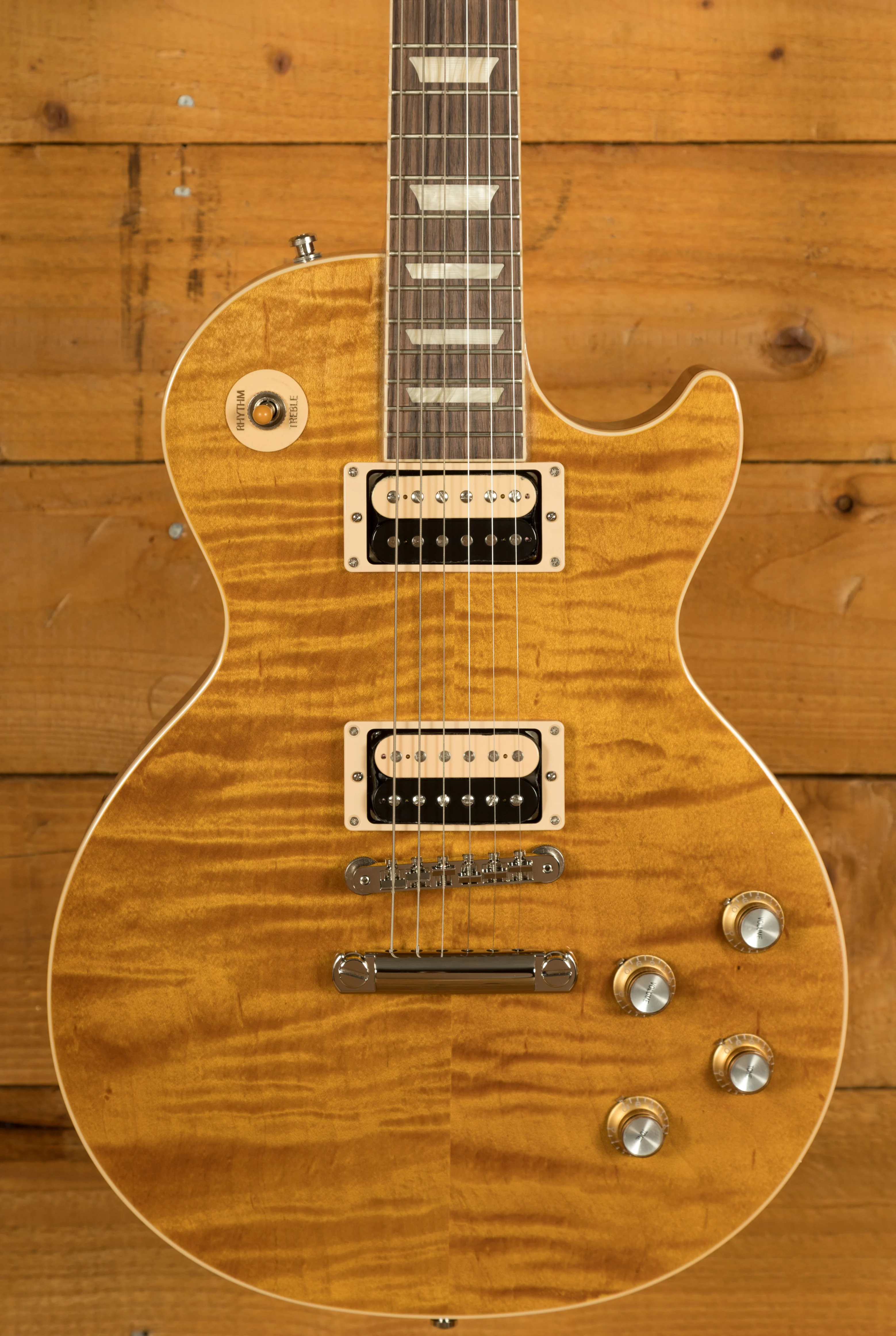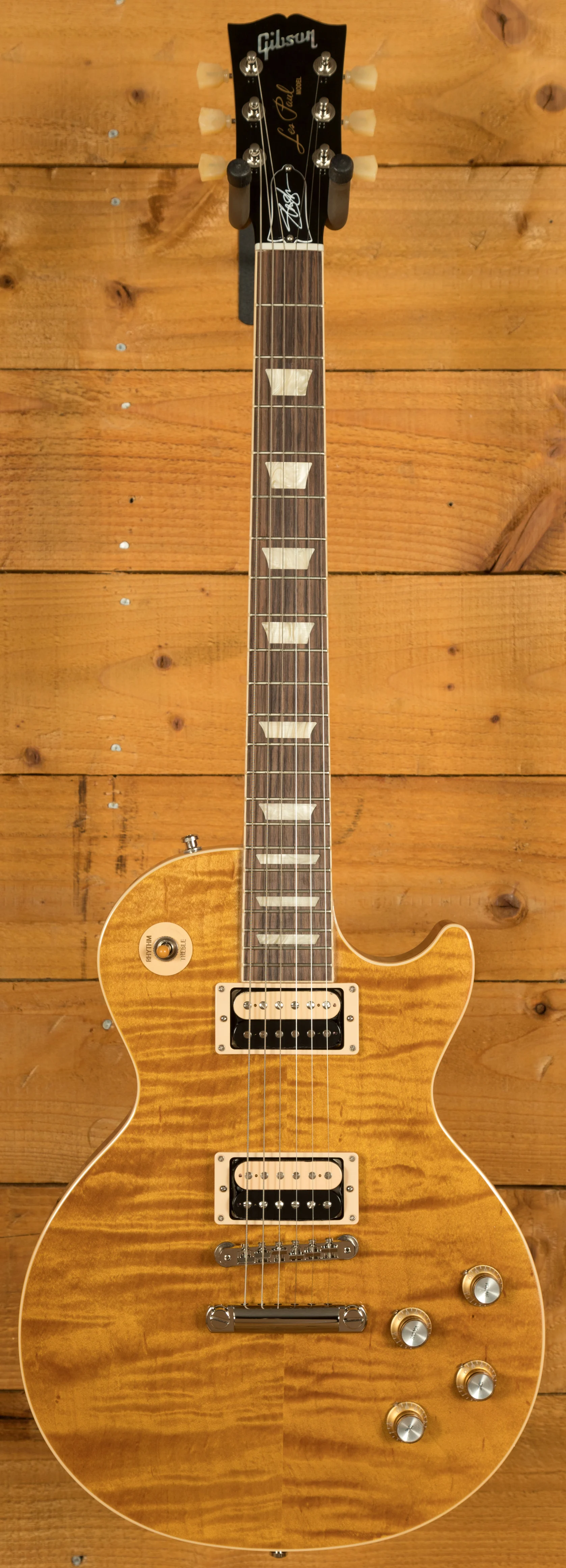 With a Solid Mahogany body it rocks a AAA Flame Maple top for that all time ultimate tonewood combination. The prominent Appetite Burst finish is bold, vivid and the perfect look for a standout player like Slash.